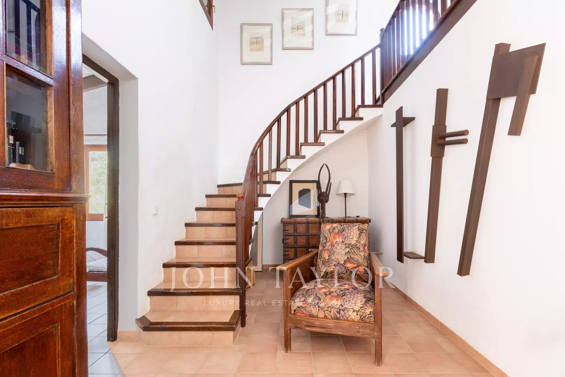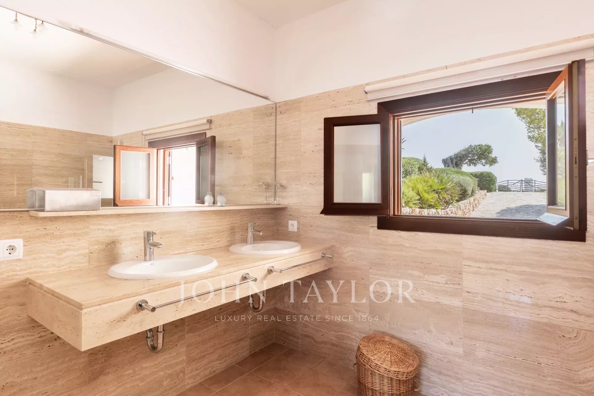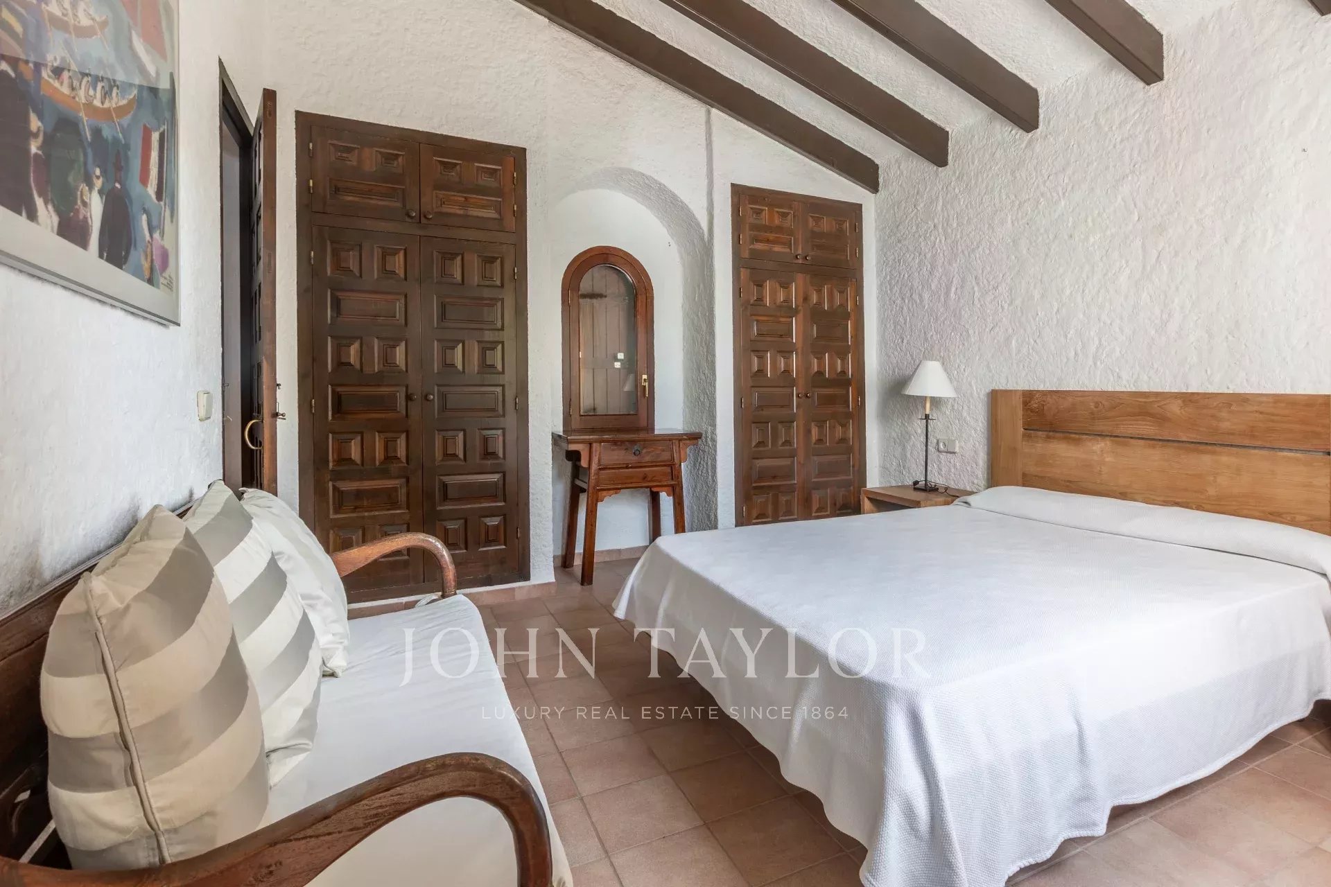 La maison principale dispose d'un hall d'entrée spacieux menant à la salle à manger et au salon qui jouissent d'une magnifique vue sur la mer. La grande cuisine fonctionnelle mène à une buanderie et à une terrasse couverte. Trois chambres meublées de qualité avec salles de bains attenantes complètent cet étage. À l'étage, la chambre principale d'environ 60 m2 dispose d'une salle de bains avec jacuzzi et douche à l'italienne, d'un grand dressing, de deux terrasses avec une vue imprenable et d'un accès au toit-terrasse avec une vue à 360 degrés.