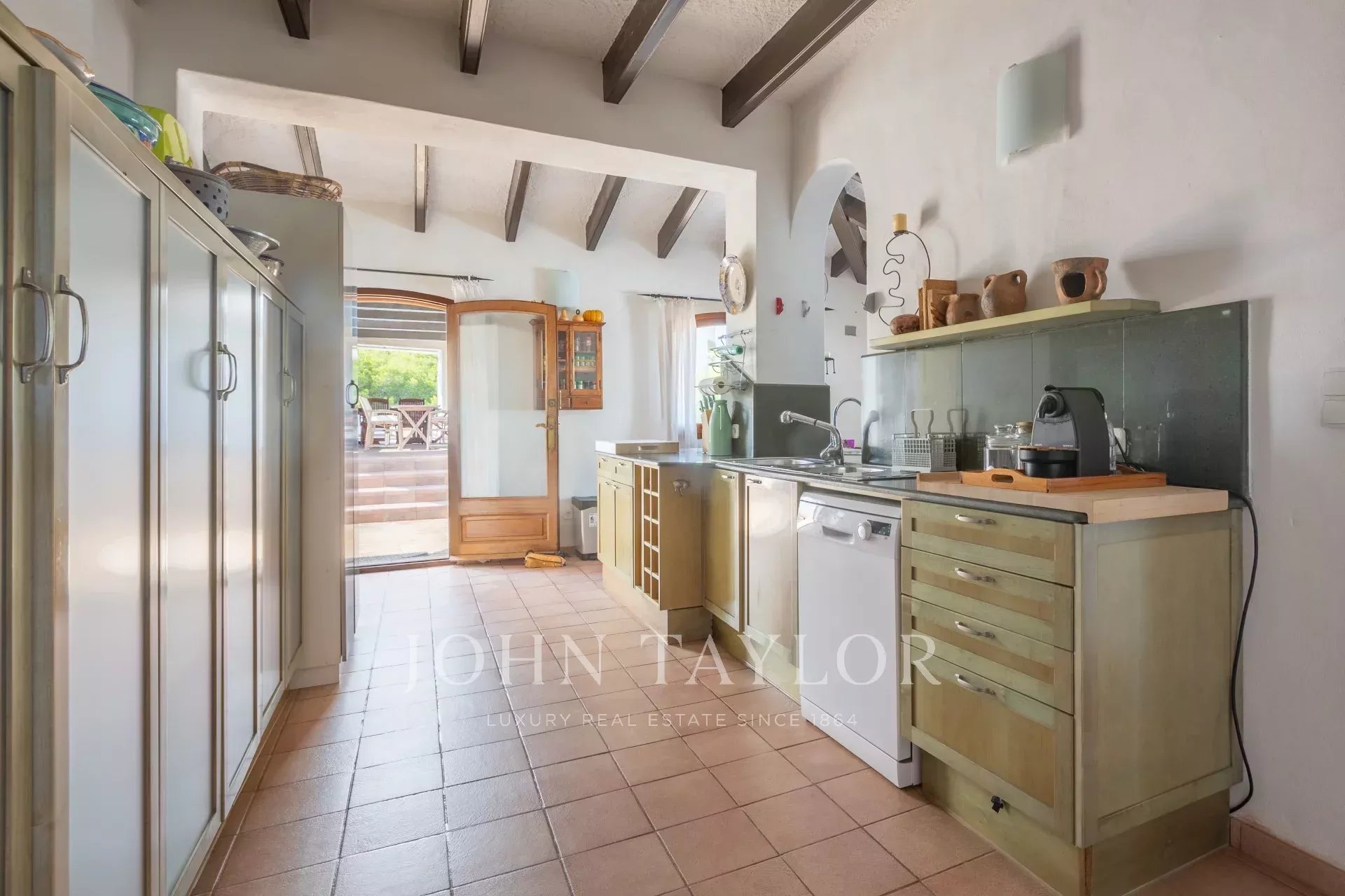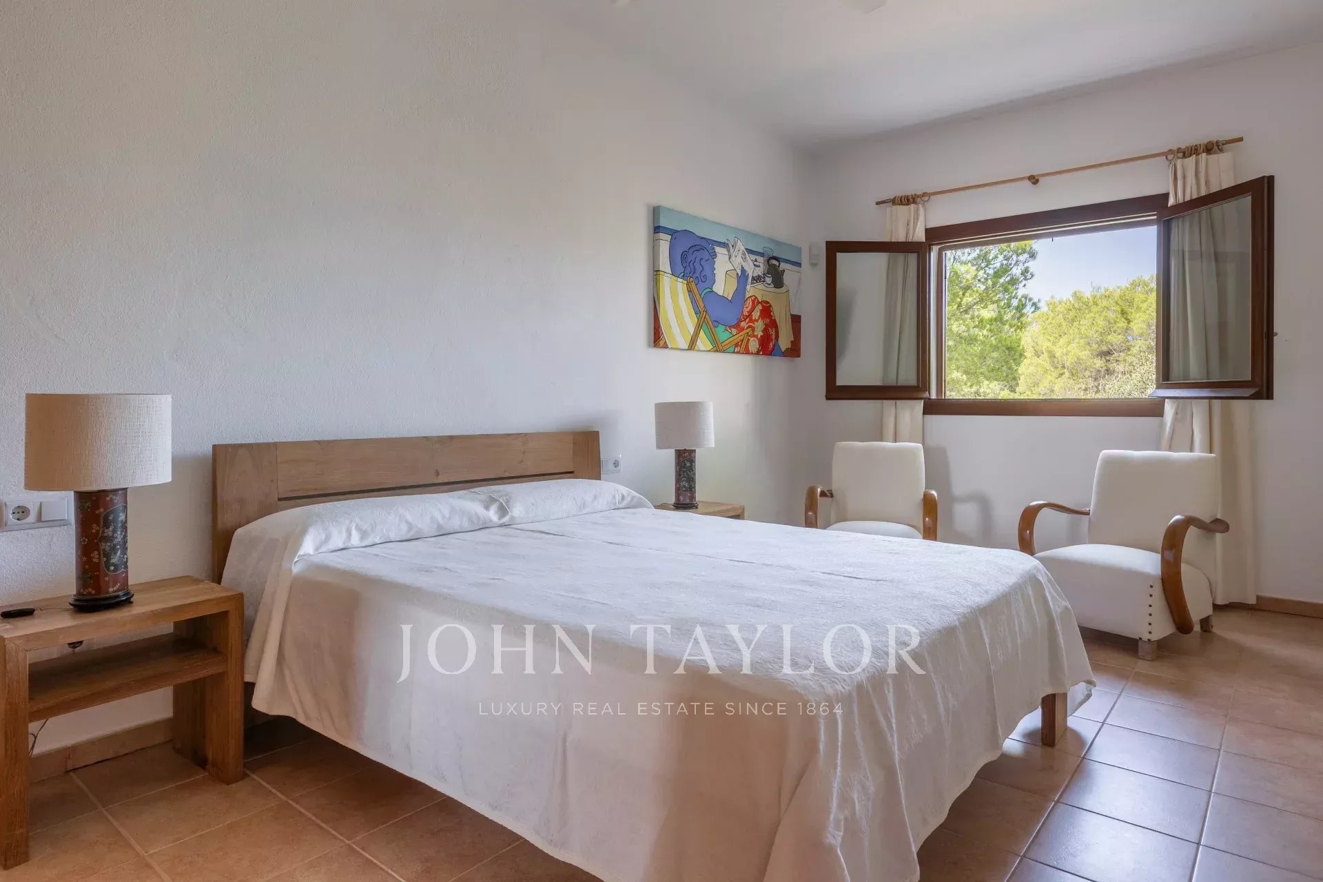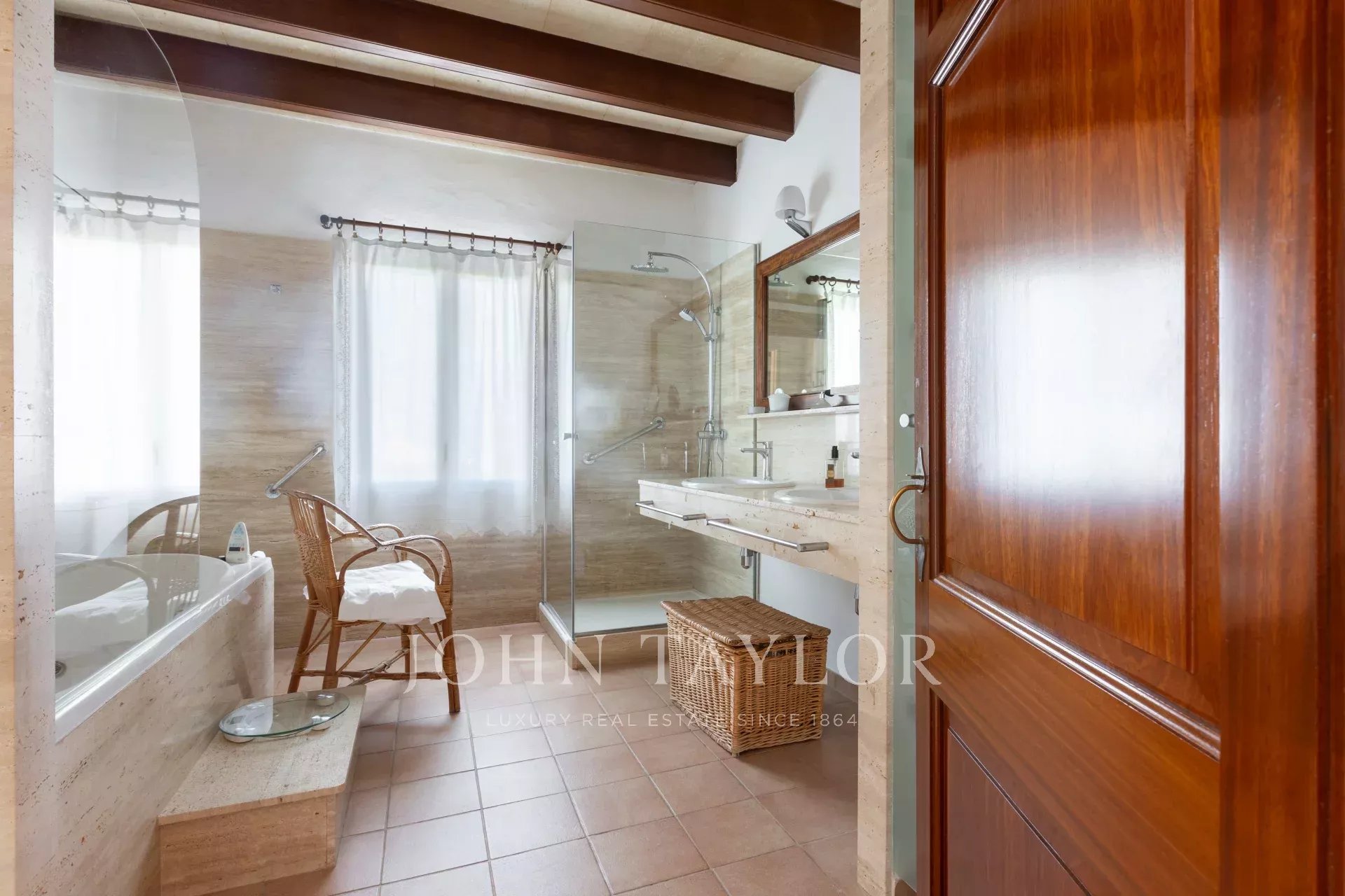 La maison principale dispose d'un hall d'entrée spacieux menant à la salle à manger et au salon qui jouissent d'une magnifique vue sur la mer. La grande cuisine fonctionnelle mène à une buanderie et à une terrasse couverte. Trois chambres meublées de qualité avec salles de bains attenantes complètent cet étage. À l'étage, la chambre principale d'environ 60 m2 dispose d'une salle de bains avec jacuzzi et douche à l'italienne, d'un grand dressing, de deux terrasses avec une vue imprenable et d'un accès au toit-terrasse avec une vue à 360 degrés.
