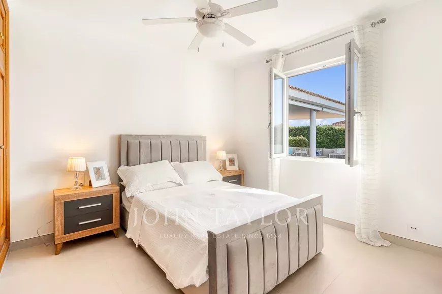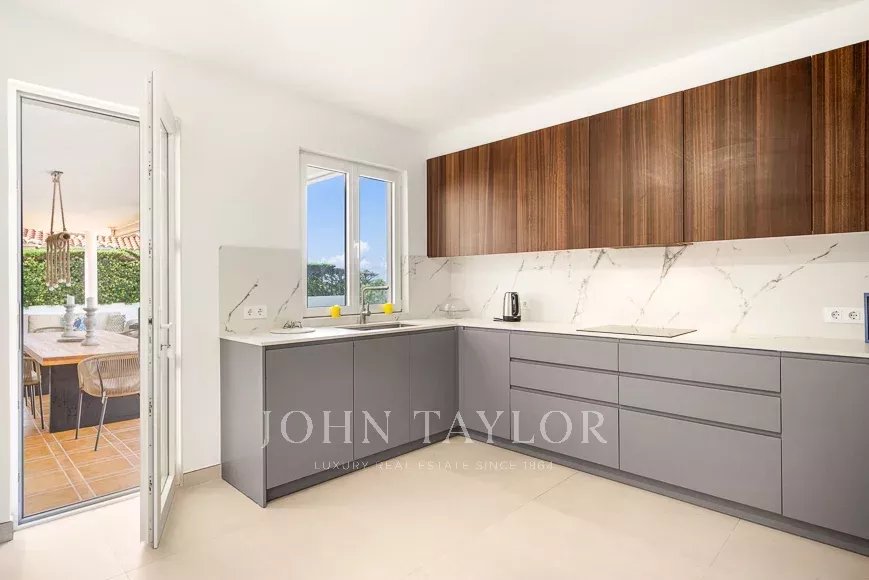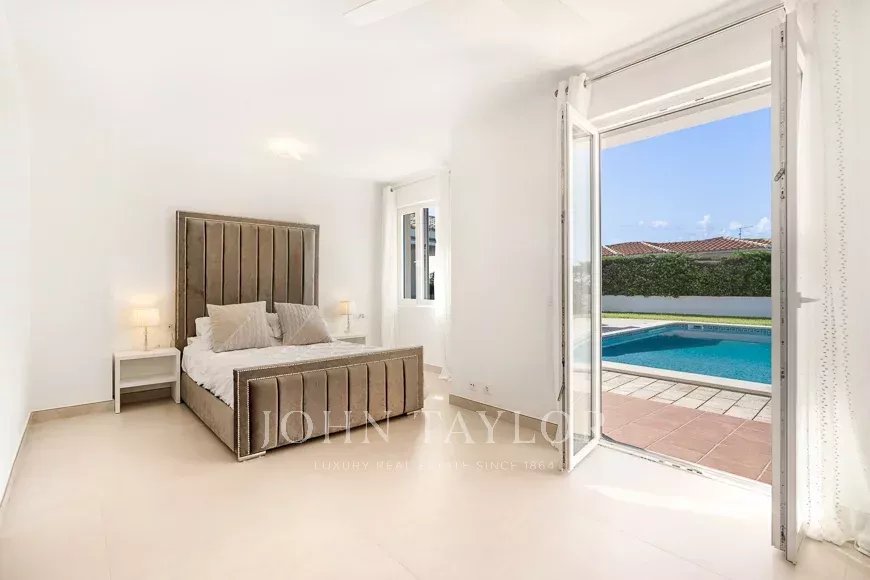 Grâce à son orientation sud et à sa conception en "L", presque toutes les pièces s'ouvrent sur le jardin et la piscine. Elle dispose de 4 chambres doubles avec placards, 2 salles de bains (dont une en suite), un grand salon-salle à manger, une cuisine moderne et une terrasse couverte idéale pour profiter de l'extérieur.