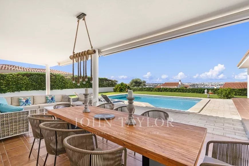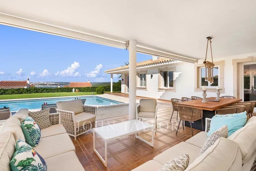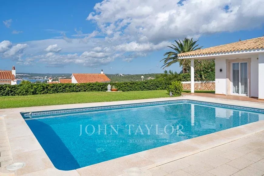 Située à Cala Llonga, l'une des zones les plus exclusives de Minorque, cette villa individuelle se distingue par ses vues spectaculaires sur le port et par le fait qu'elle est construite sur un seul niveau. Récemment rénovée, elle offre 243 m² construits sur un terrain de 1.063 m² et est en parfait état.