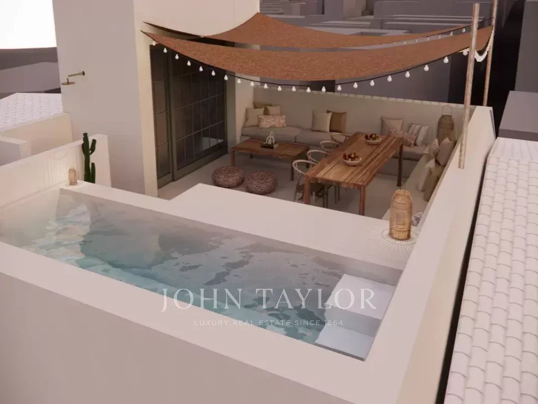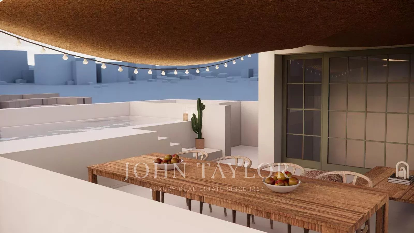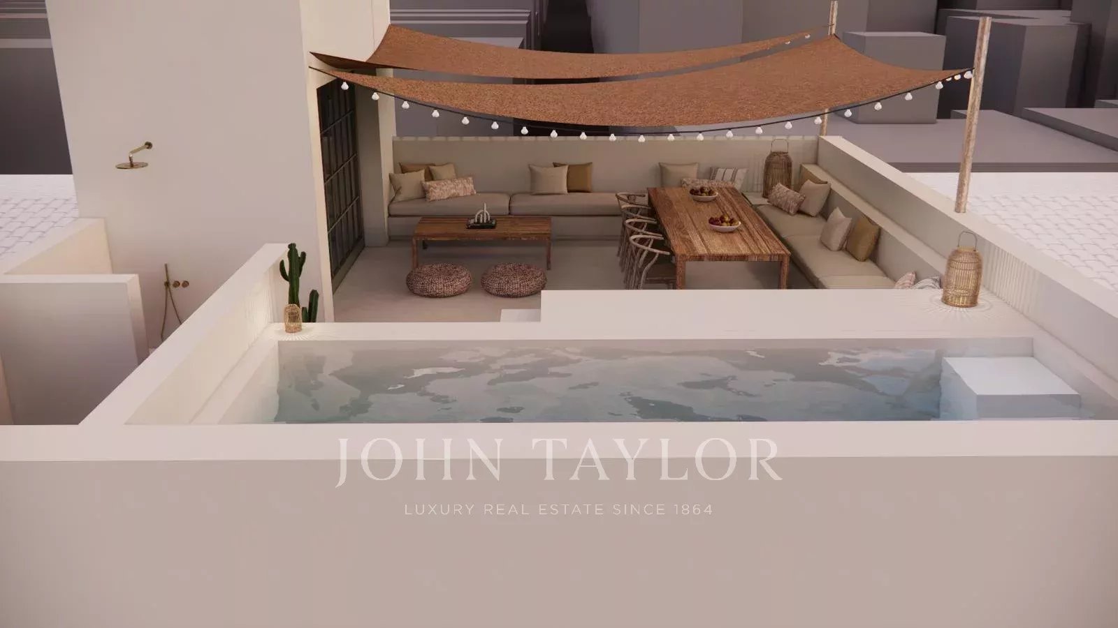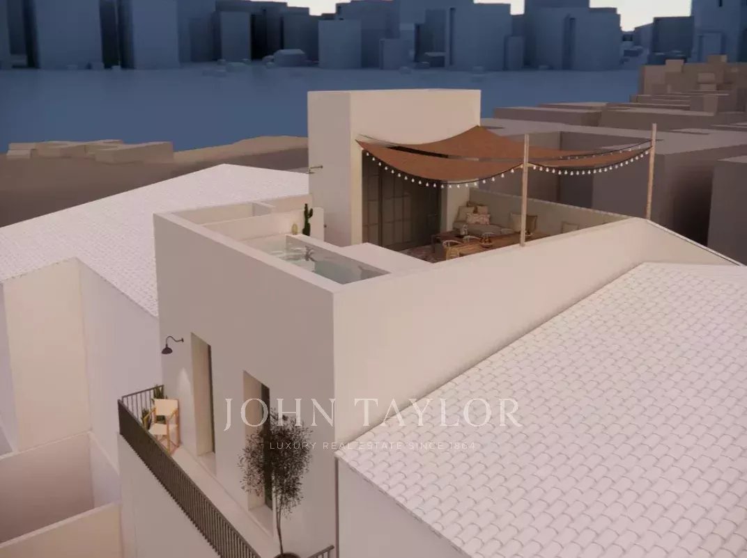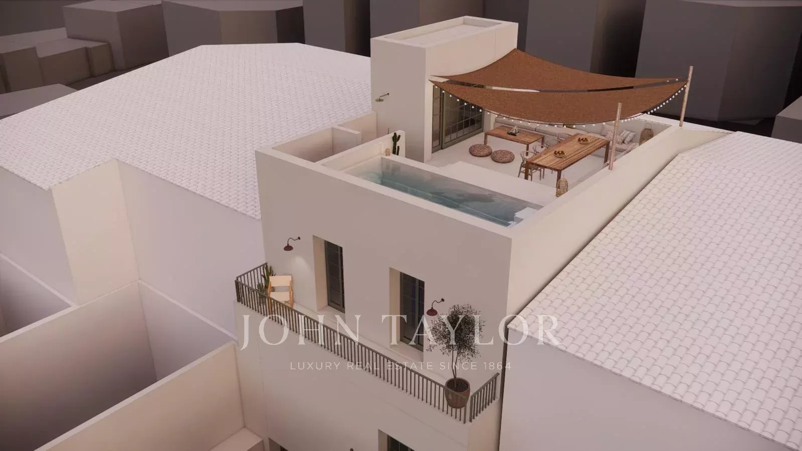 Pour finir, la propriété dispose d'un toit-terrasse avec une terrasse panoramique et une piscine de 9 m², idéale pour profiter du soleil méditerranéen et de la vue sur les environs urbains de Mahón.