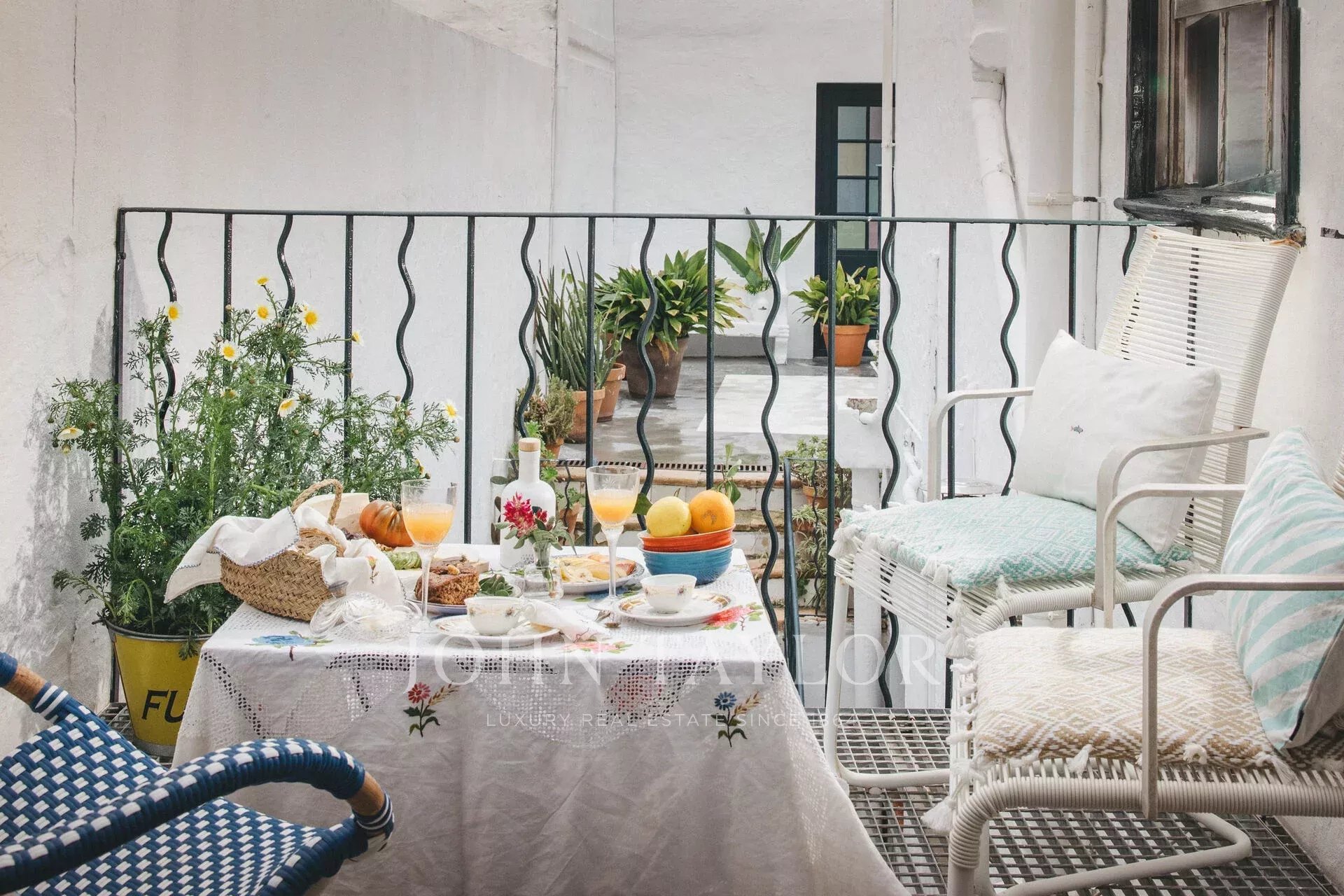 L'extérieur comprend une cour méditerranéenne à deux niveaux et une terrasse supérieure pour profiter du style de vie méditerranéen. Le deuxième logement indépendant (224 m²) offre une intimité totale, sa propre entrée et une terrasse sur le toit avec vue sur la vieille ville.