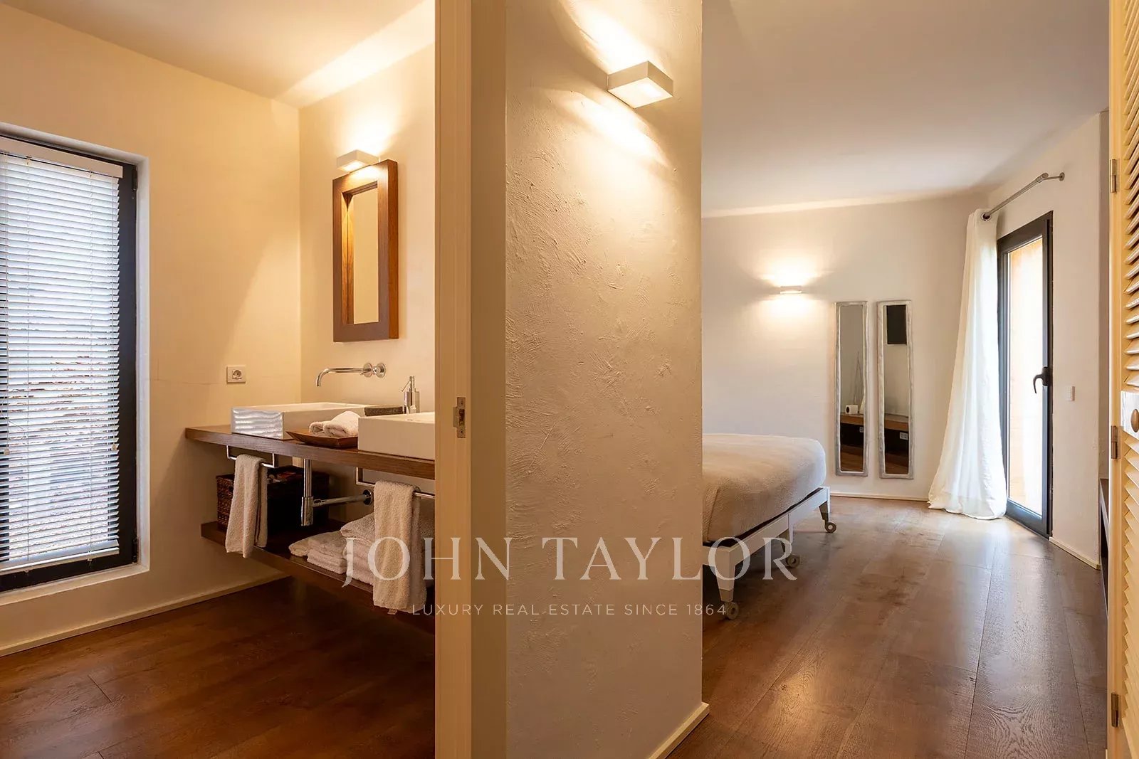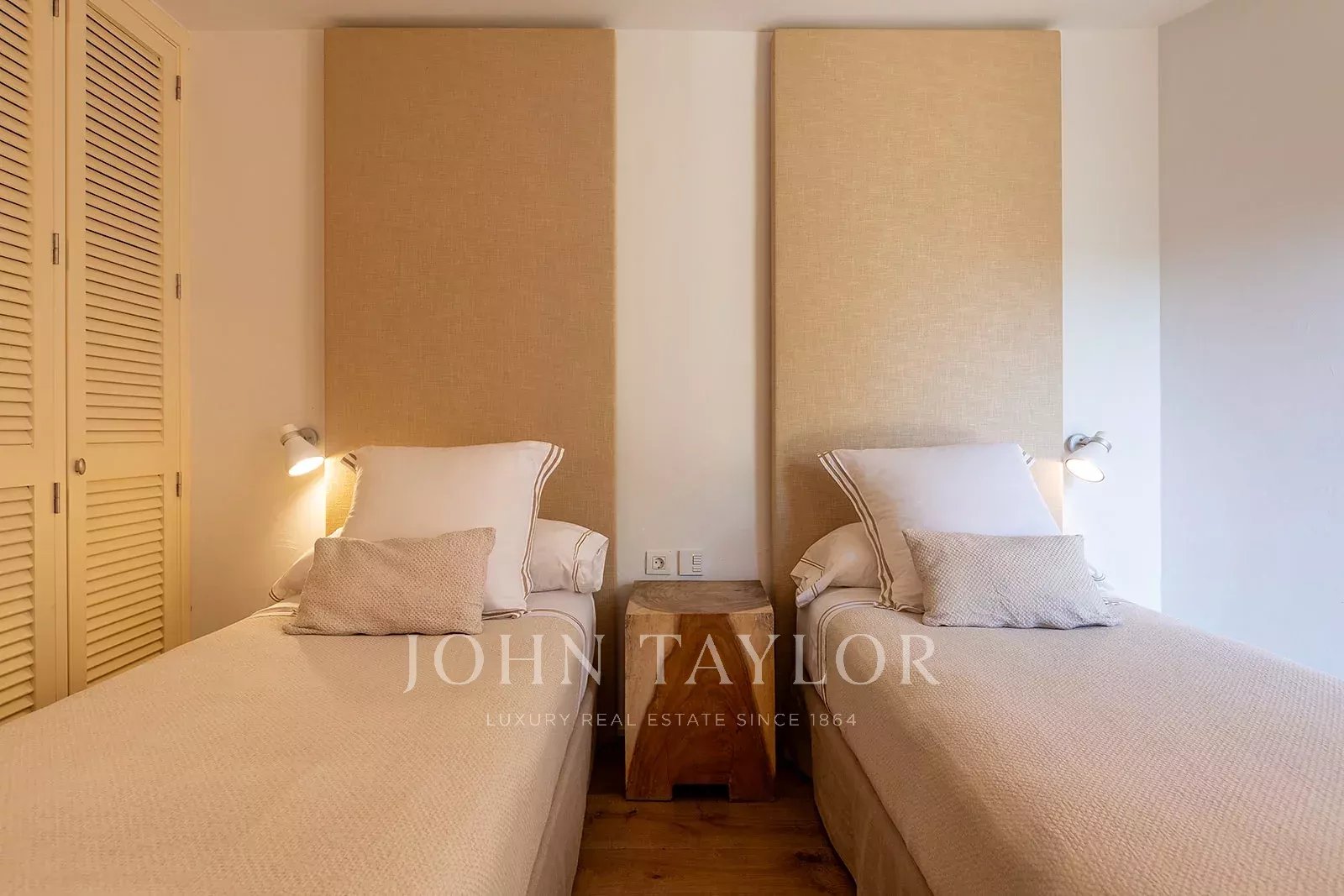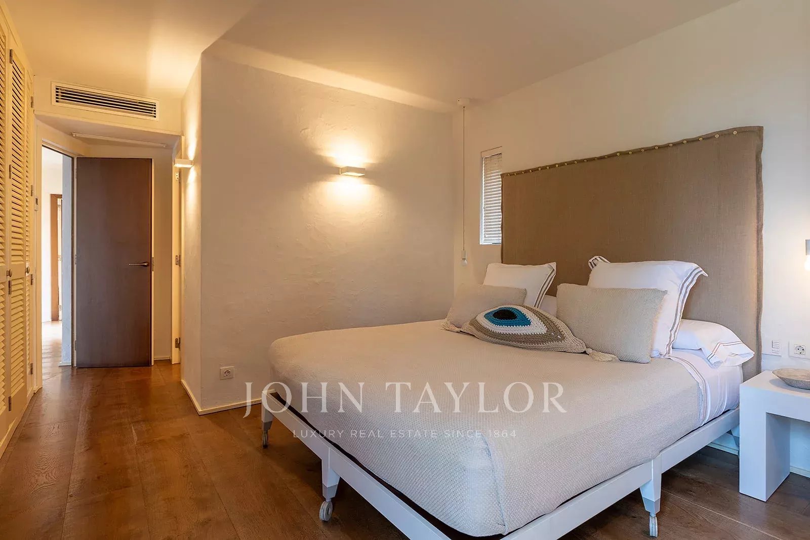 La propriété dispose de 4 chambres doubles, toutes dotées d'une salle de bains privative, et d'une chambre de service simple avec sa propre salle de bains. Chaque espace est conçu pour offrir un maximum de confort, avec un chauffage par le sol et la climatisation pour profiter d'une température idéale tout au long de l'année.