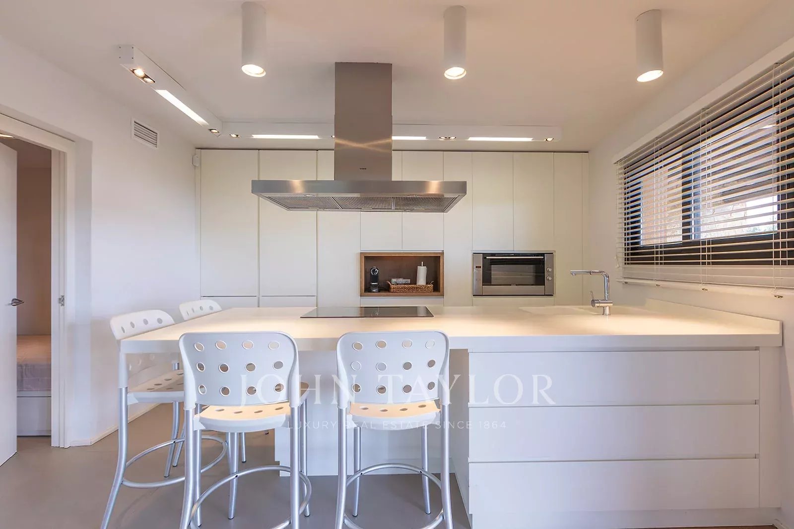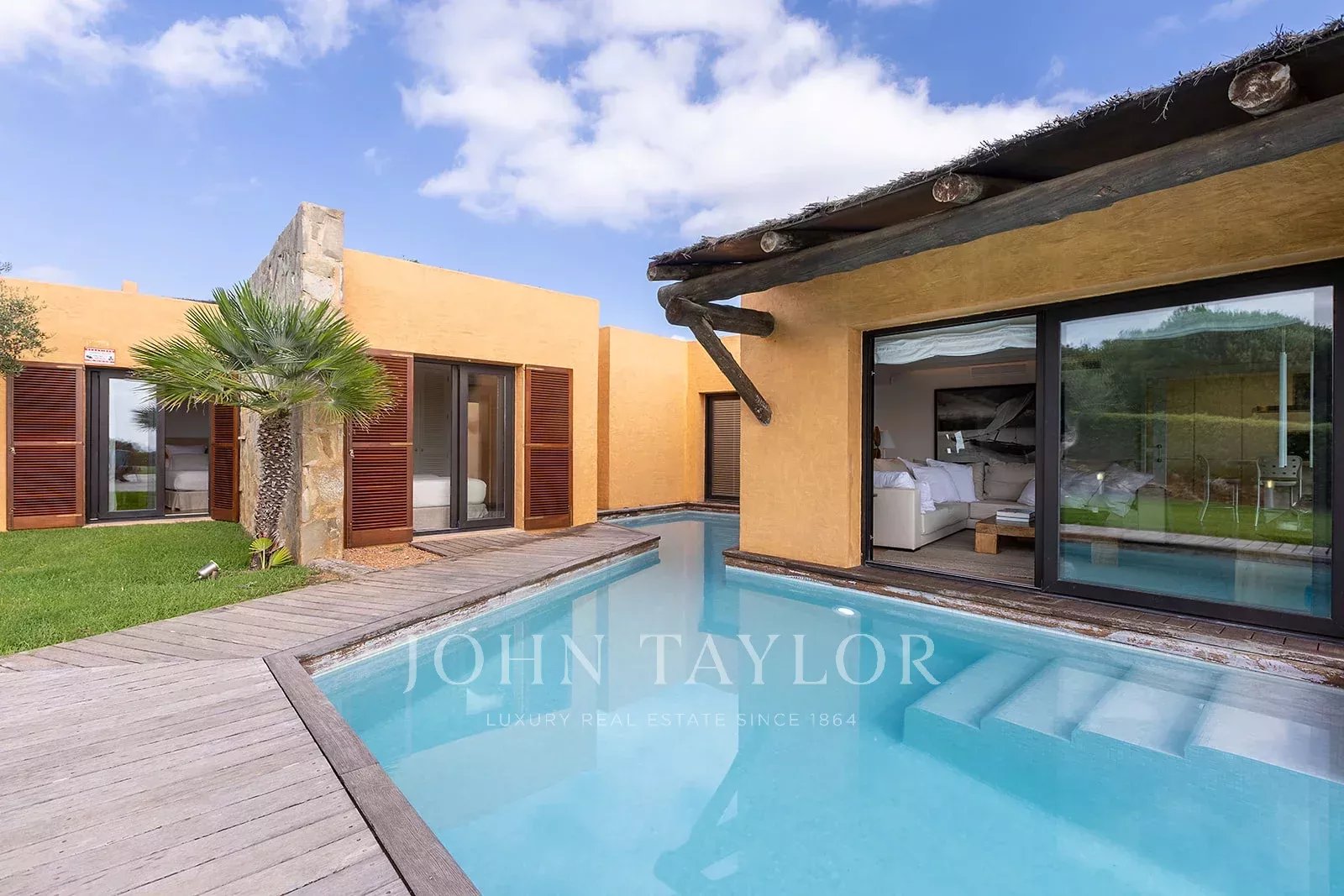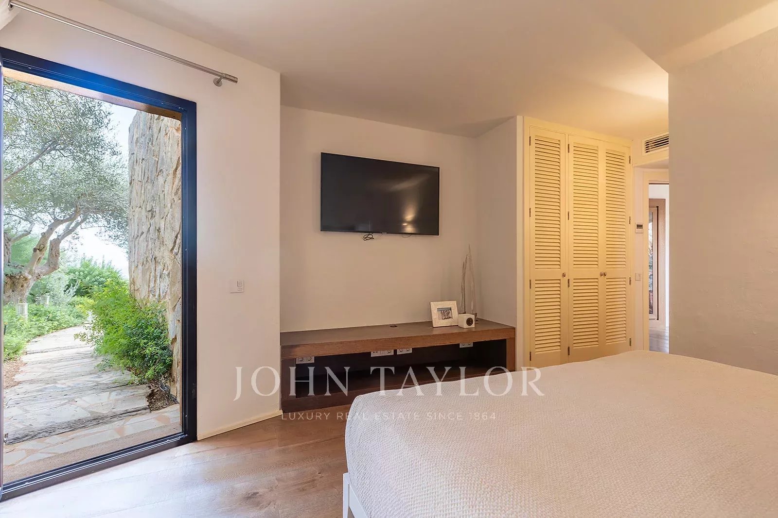 La propriété dispose de 4 chambres doubles, toutes dotées d'une salle de bains privative, et d'une chambre de service simple avec sa propre salle de bains. Chaque espace est conçu pour offrir un maximum de confort, avec un chauffage par le sol et la climatisation pour profiter d'une température idéale tout au long de l'année.