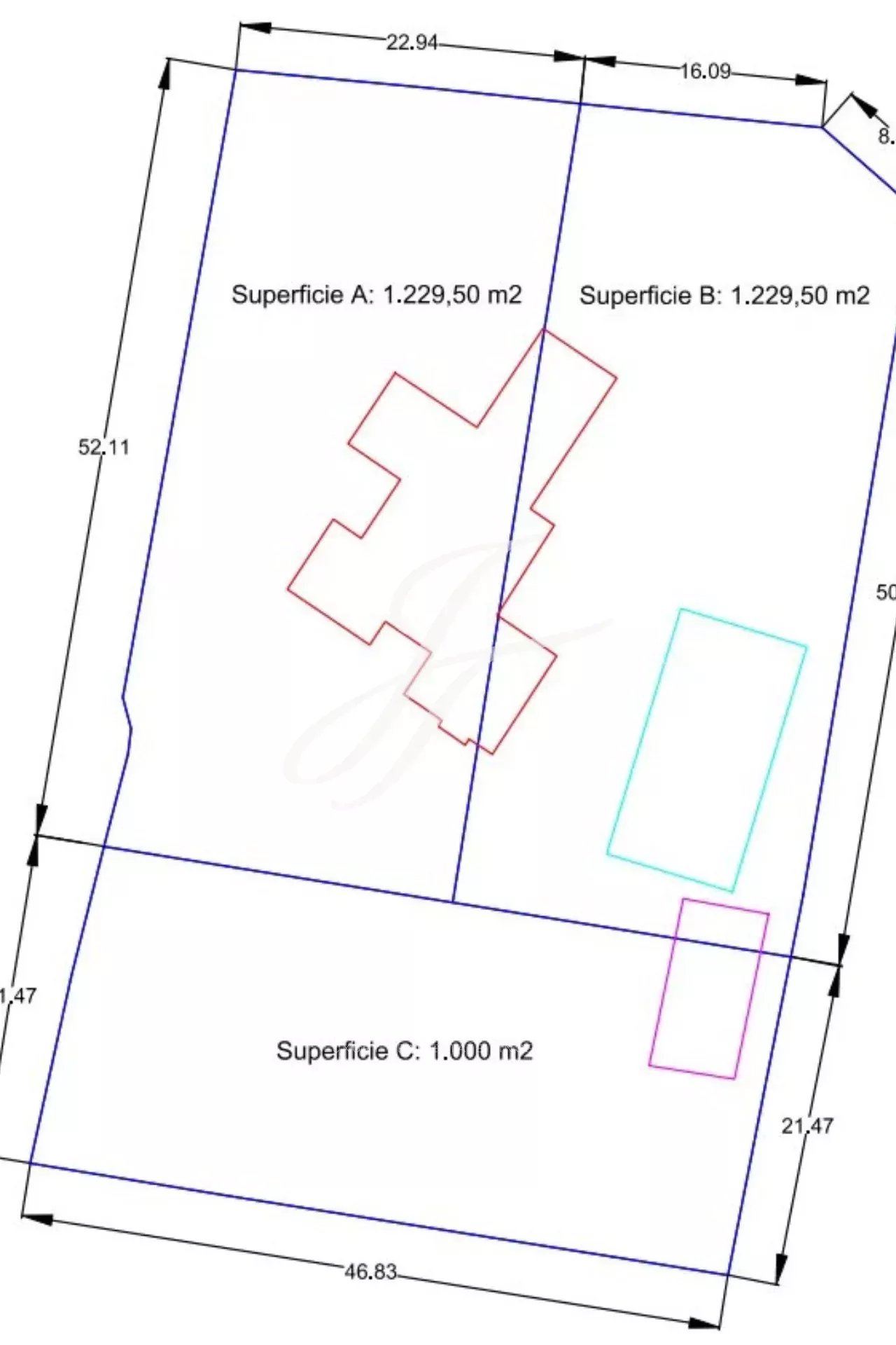 - Deux parcelles de 1 229,5 mètres carrés chacune.