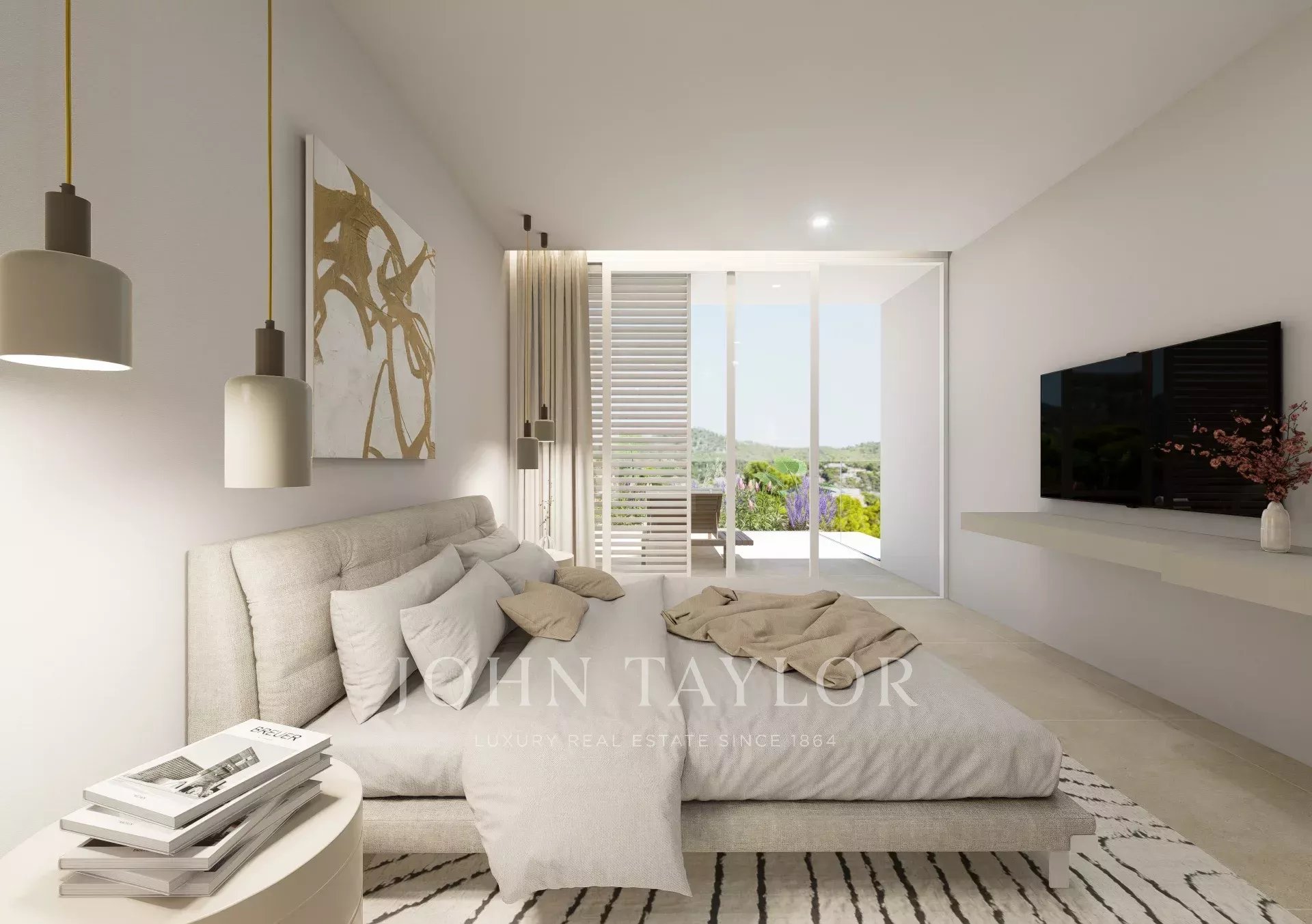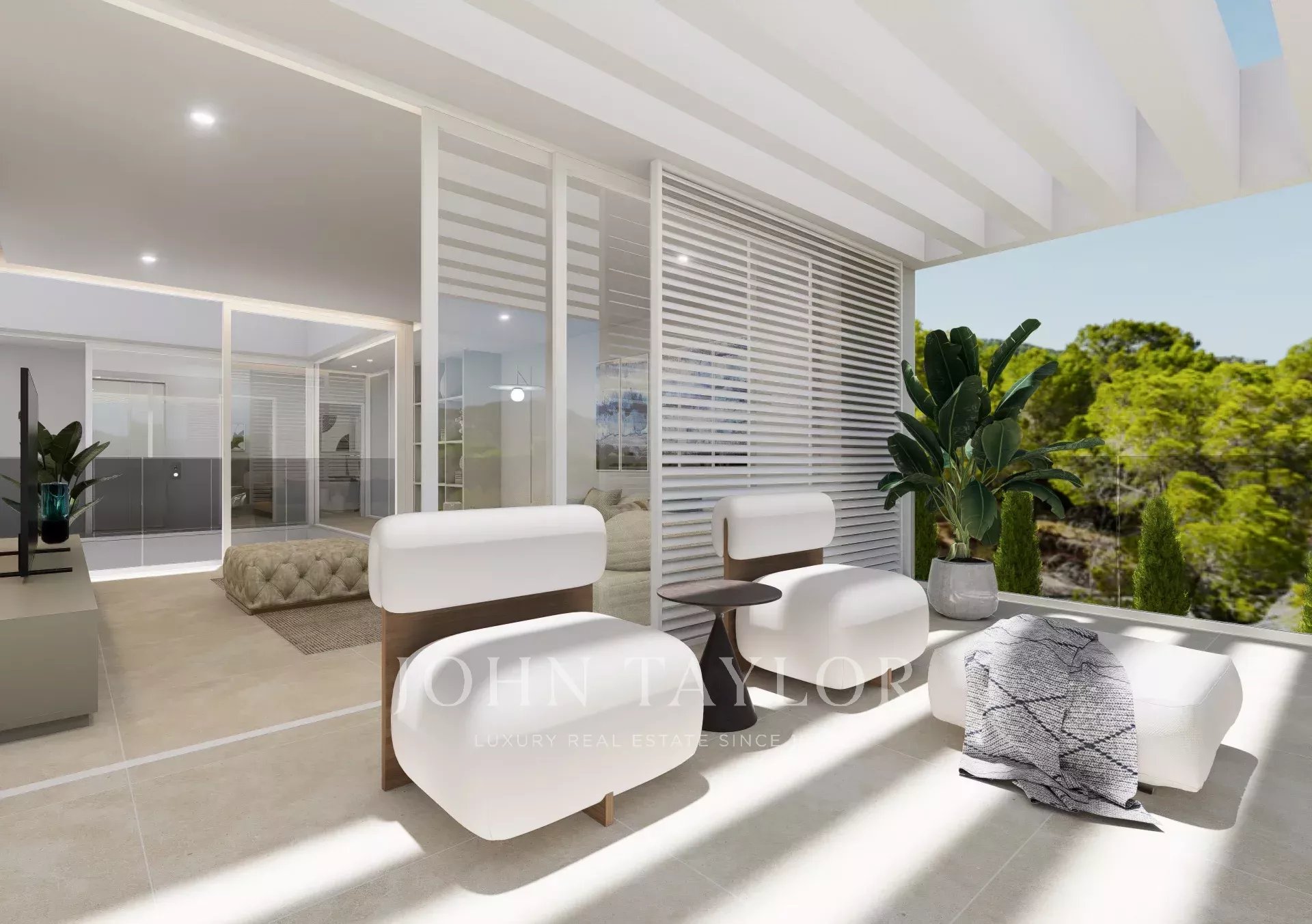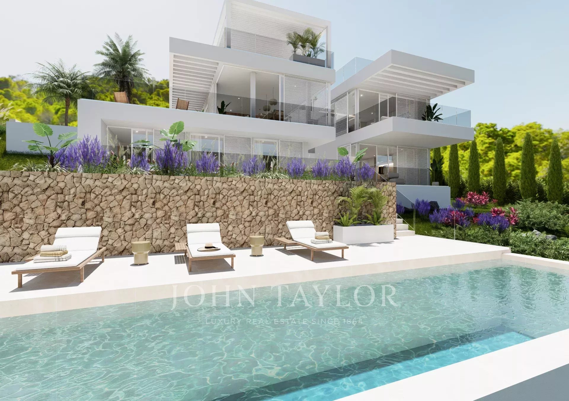 Des études minutieuses ont été réalisées avec beaucoup de diligence pour s'assurer que la ligne de vue de ce terrain donne sur la baie de Camp de Mar. Des études d'élévation ont également été menées sur les niveaux des terrasses des salons afin de garantir la vue sur la baie et l'intimité de chaque salon. La courbure de l'allée, qui constitue l'accès à la route, a permis de s'assurer qu'une parcelle n'obstruait pas la vue d'une autre.