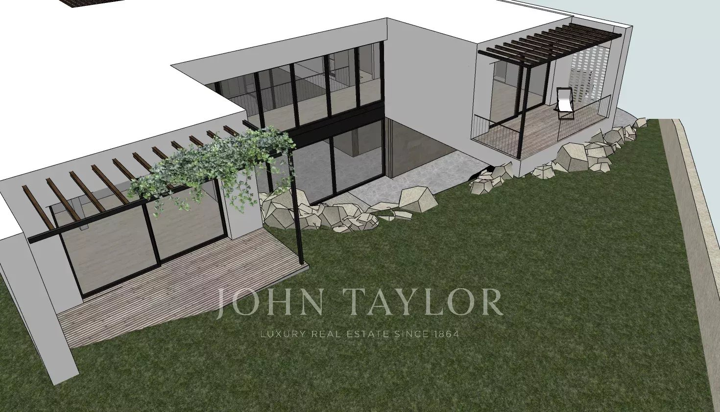 Le projet de villa a 2 étages, le rez-de-chaussée a une cuisine avec îlot central, un salon salle à manger spacieux avec de grandes fenêtres qui s'ouvrent directement sur la terrasse et le jardin. Le rez-de-chaussée dispose d'une pièce supplémentaire qui peut être utilisée comme un bureau ou une chambre supplémentaire. La terrasse dispose d'un porche couvert à côté d'une piscine de 15 mètres de long.