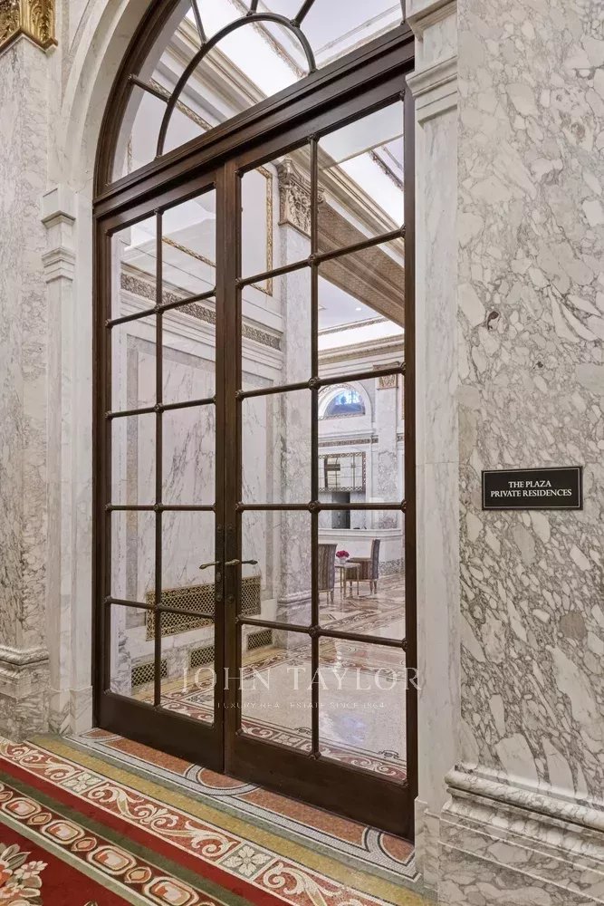 Une magnifique résidence de deux chambres dans l'emblématique Plaza Private Residences. Cette belle maison présente des plafonds de 11 pieds de haut, des sols en bois dur à chevrons, et des détails d'avant-guerre partout. Parmi les autres caractéristiques de la maison, citons une grande chambre principale avec de magnifiques placards et un balcon Juliette. Le salon dispose également d'un balcon Juliette qui permet à la lumière du soleil d'entrer en abondance dans la maison. La cuisine comprend des comptoirs en pierre Nero Marquina, un dosseret en mosaïque de marbre blanc Calacatta et des appareils électroménagers Plaza Collection de Viking et Miele. La salle de bains Plaza personnalisée comprend deux lavabos, une cabine de douche séparée, une baignoire à remous et un motif original de mosaïque de marbre provenant des halls historiques de la Plaza. L'air et le chauffage sont centralisés et unifiés avec 3 zones de contrôle et une ventilation qui a été remplacée en faveur d'unités plus silencieuses, au-dessus des fenêtres. Il y a un lave-linge/sèche-linge.