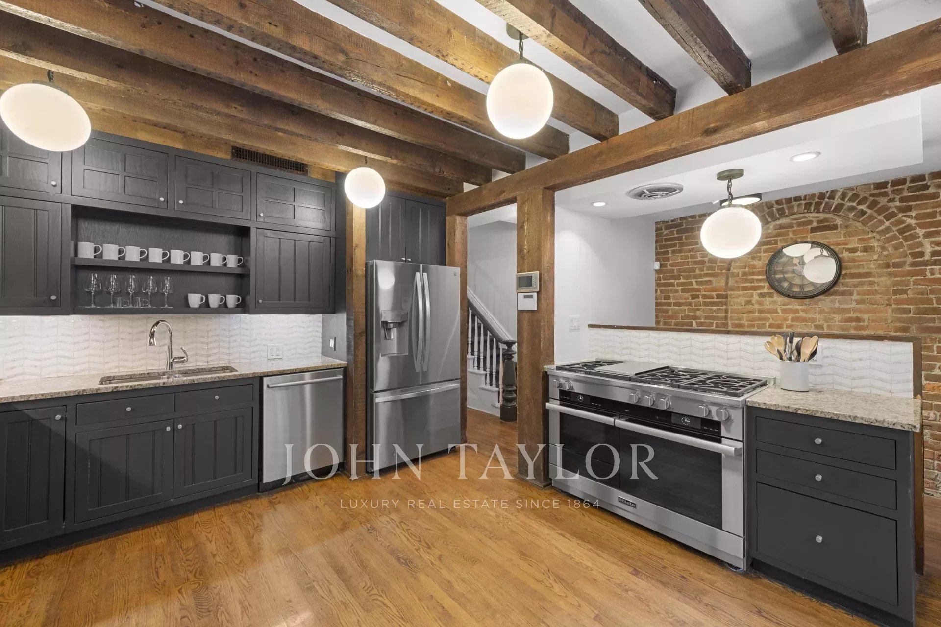 Cette maison de ville très lumineuse et orientée au sud comprend 5 grandes chambres, 4 salles de bains, un élégant salon formel avec des plafonds de 13 pieds, une bibliothèque et une salle à manger. La cuisine, avec ses poutres apparentes d'origine, est équipée d'appareils électroménagers haut de gamme et mène à une grande salle et à un jardin magnifiquement aménagé de 1000 pieds carrés avec un patio en pierre. Les 4 salles de bains ont été entièrement rénovées. Cette maison de ville dispose d'un droit de superficie supplémentaire de 4,036 m².