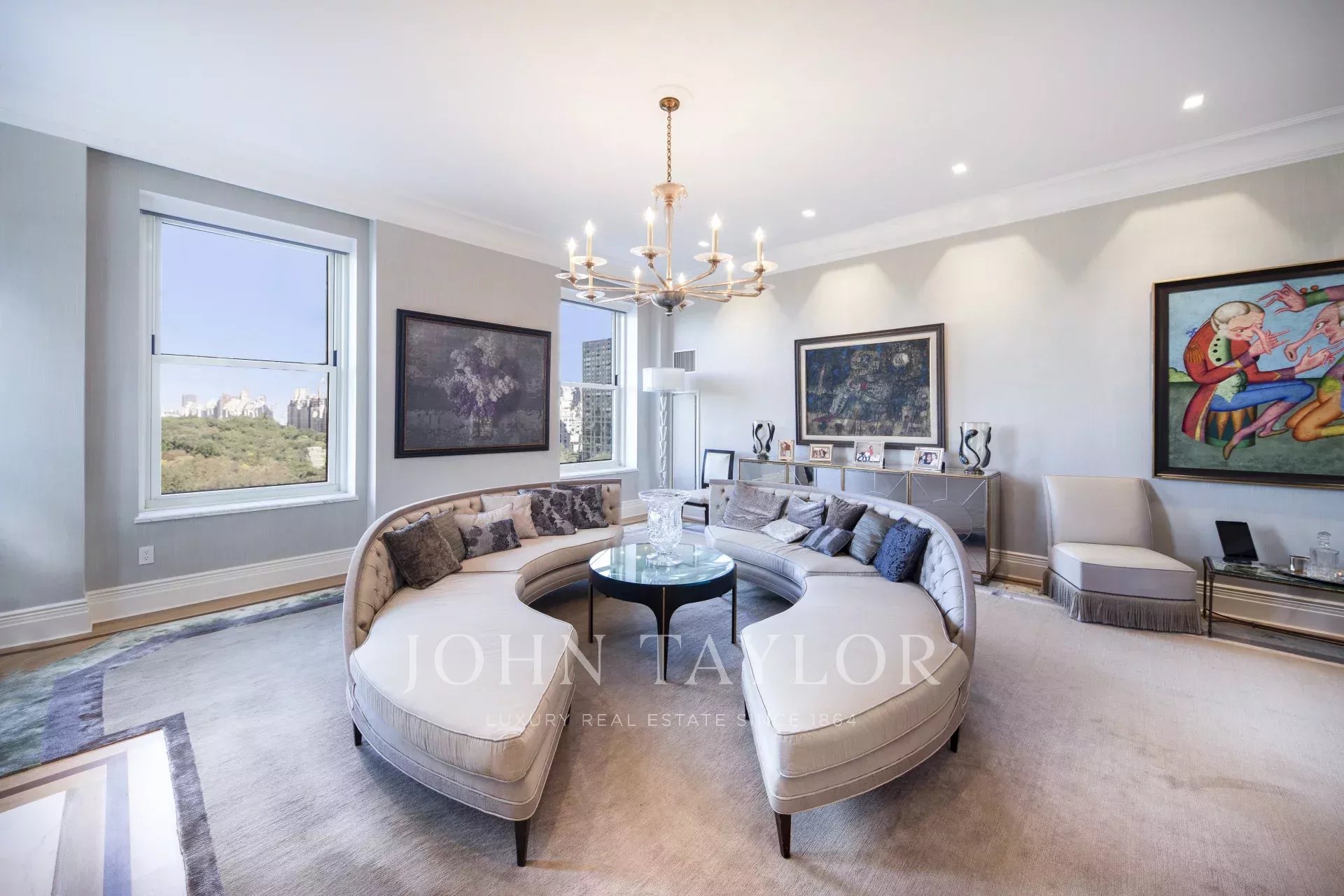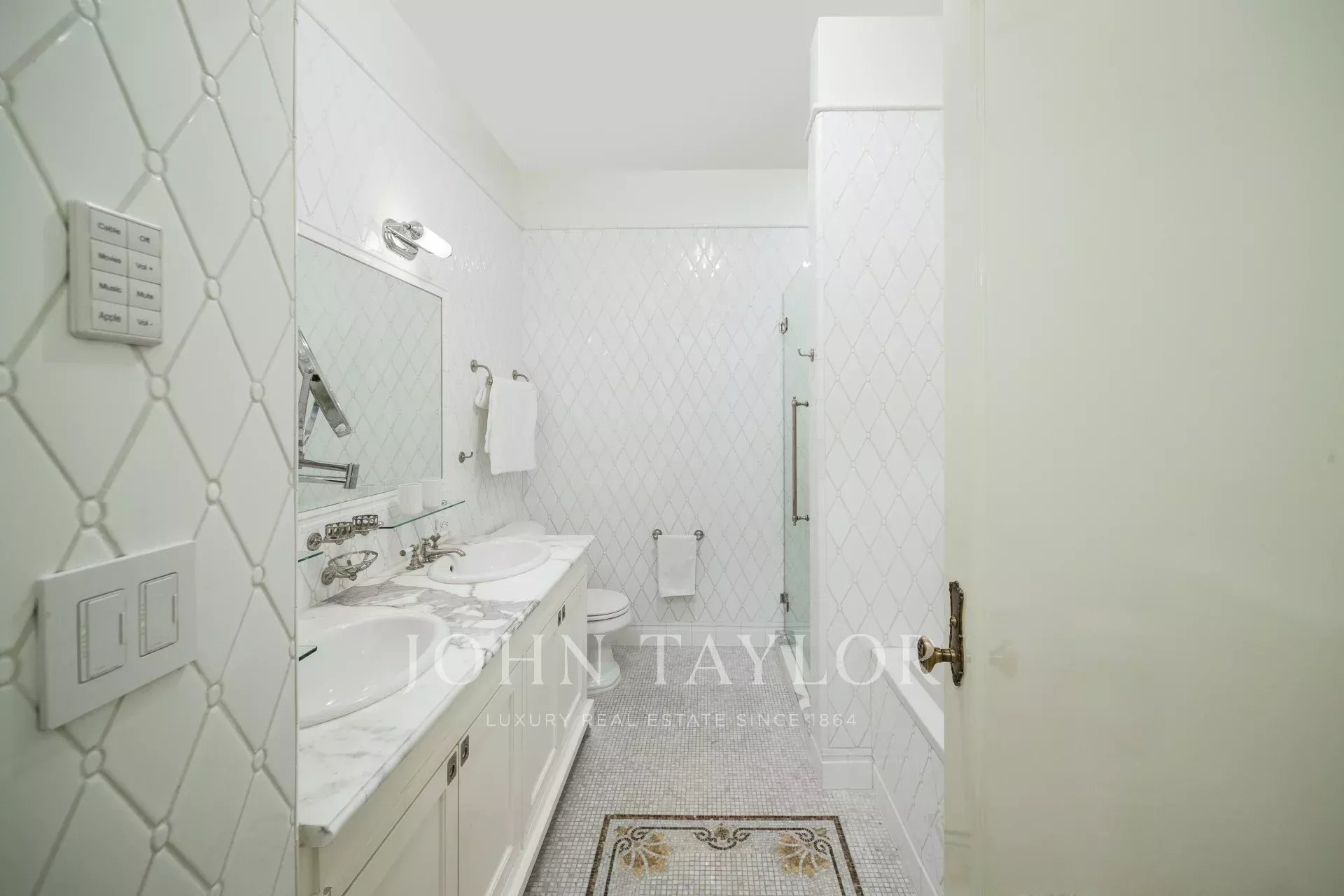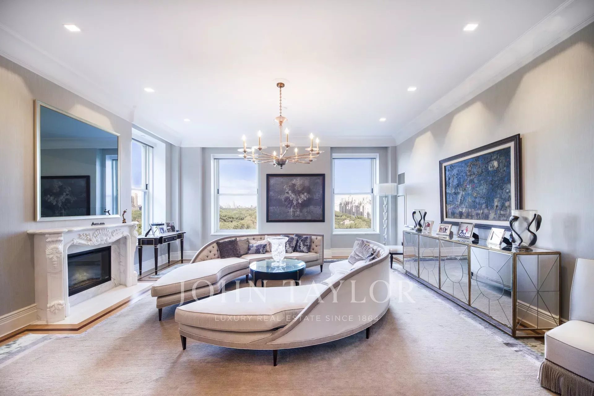 Occasion unique de combiner deux appartements adjacents : 1101 et 1102, pour créer un magnifique et spacieux appartement de 5 ou 6 chambres à coucher et 6 salles de bains de 3 800 pieds carrés dans les Résidences privées Plaza. Ce grand appartement d'angle offre des vues à couper le souffle sur Central Park, des plafonds de 12 pieds, un grand salon/salle à manger et de magnifiques détails d'avant-guerre partout. Une véritable beauté à tous points de vue. Les finitions comprennent une cheminée décorative avec un manteau en marbre parfaitement restauré, des appuis de fenêtre en marbre Carrera, des moulures de plafond et de sol élégantes et des sols en chêne à chevrons avec une bordure incrustée. La principale chambre à coucher est dotée d'une triple exposition, d'un dressing personnalisé et d'une salle de bains en marbre avec baignoire à remous, douche séparée, double lavabo et sol en mosaïque qui reproduit le sol du hall d'entrée original du Plaza. Les portes-fenêtres orientées au sud donnent sur le jardin paysager du Plaza, la fontaine et les bassins de réflexion. Les cinq autres chambres sont surplombées par des salles de bains en marbre. La superbe cuisine est équipée d'armoires faites sur mesure, de magnifiques comptoirs en pierre Nero Marquina, d'un dosseret en mosaïque de marbre blanc, d'appareils électroménagers haut de gamme en acier inoxydable de Viking et Miele, et d'un refroidisseur de vin. La maison est équipée d'une technologie de maison intelligente qui contrôle la température, l'éclairage, les stores occultants, le système vidéo/son, la télévision intelligente et les lumières Lutron.
