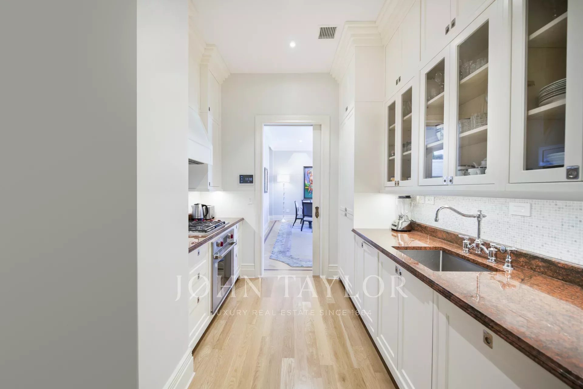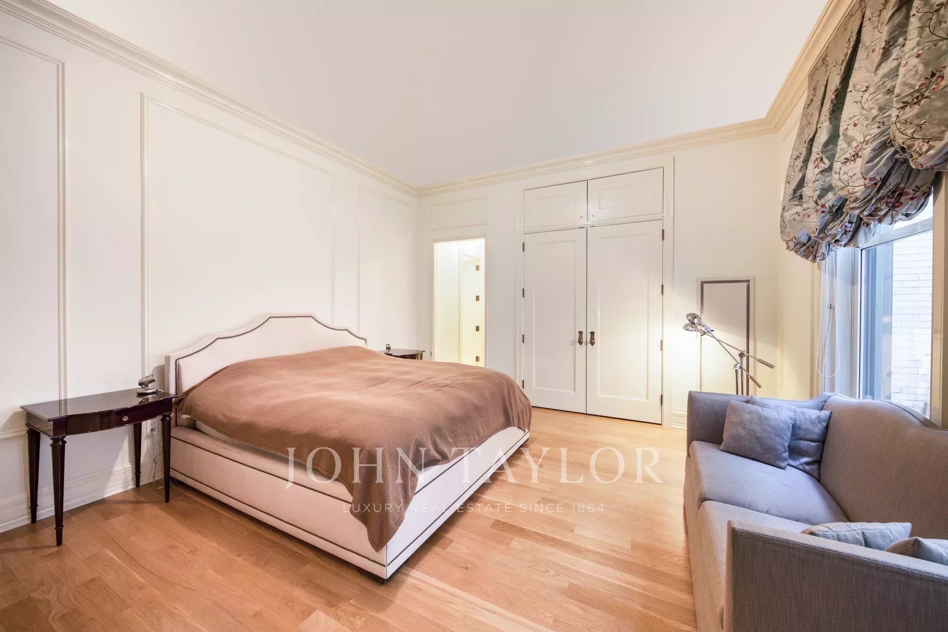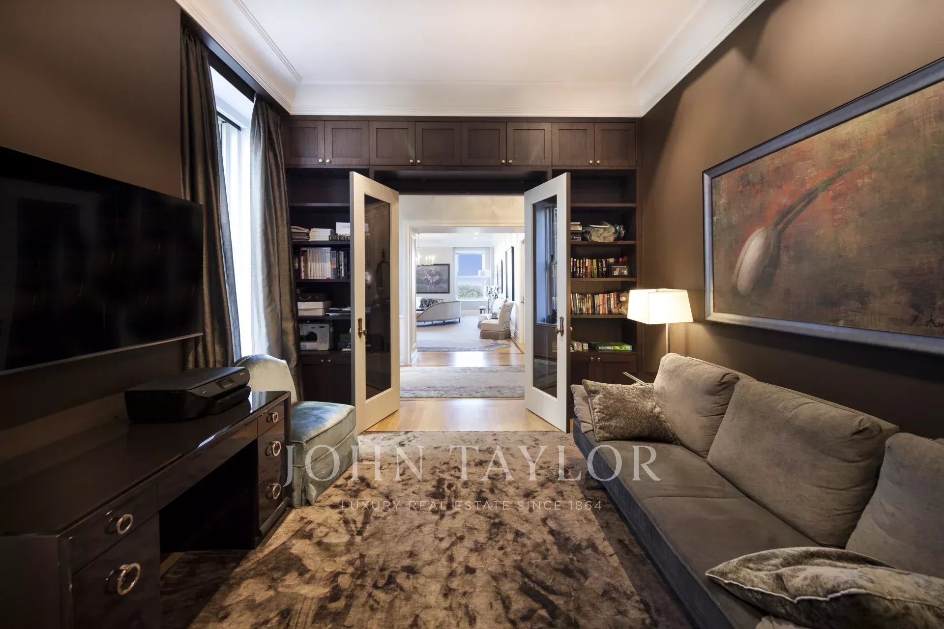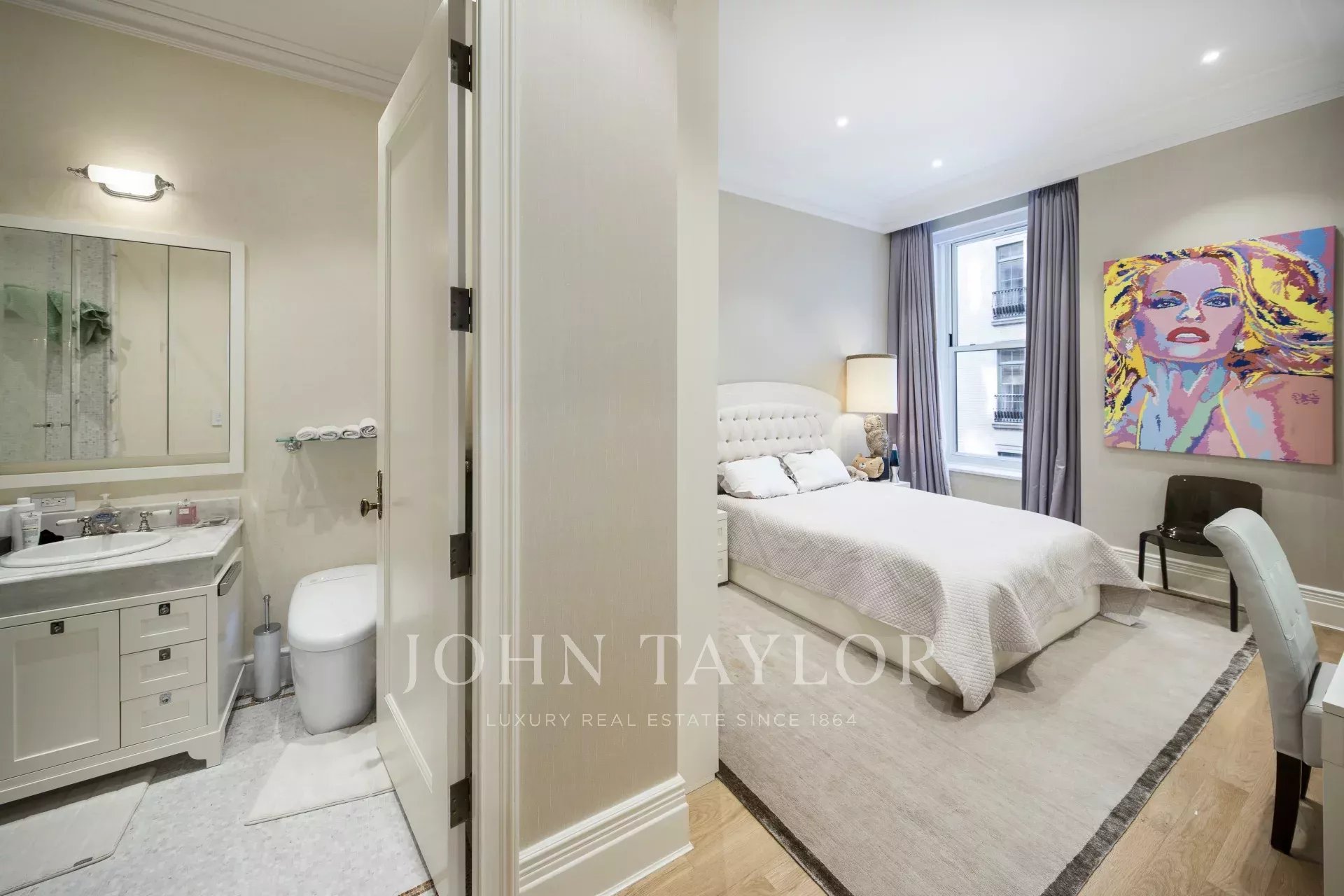 Occasion unique de combiner deux appartements adjacents : 1101 et 1102, pour créer un magnifique et spacieux appartement de 5 ou 6 chambres à coucher et 6 salles de bains de 3 800 pieds carrés dans les Résidences privées Plaza. Ce grand appartement d'angle offre des vues à couper le souffle sur Central Park, des plafonds de 12 pieds, un grand salon/salle à manger et de magnifiques détails d'avant-guerre partout. Une véritable beauté à tous points de vue. Les finitions comprennent une cheminée décorative avec un manteau en marbre parfaitement restauré, des appuis de fenêtre en marbre Carrera, des moulures de plafond et de sol élégantes et des sols en chêne à chevrons avec une bordure incrustée. La principale chambre à coucher est dotée d'une triple exposition, d'un dressing personnalisé et d'une salle de bains en marbre avec baignoire à remous, douche séparée, double lavabo et sol en mosaïque qui reproduit le sol du hall d'entrée original du Plaza. Les portes-fenêtres orientées au sud donnent sur le jardin paysager du Plaza, la fontaine et les bassins de réflexion. Les cinq autres chambres sont surplombées par des salles de bains en marbre. La superbe cuisine est équipée d'armoires faites sur mesure, de magnifiques comptoirs en pierre Nero Marquina, d'un dosseret en mosaïque de marbre blanc, d'appareils électroménagers haut de gamme en acier inoxydable de Viking et Miele, et d'un refroidisseur de vin. La maison est équipée d'une technologie de maison intelligente qui contrôle la température, l'éclairage, les stores occultants, le système vidéo/son, la télévision intelligente et les lumières Lutron.