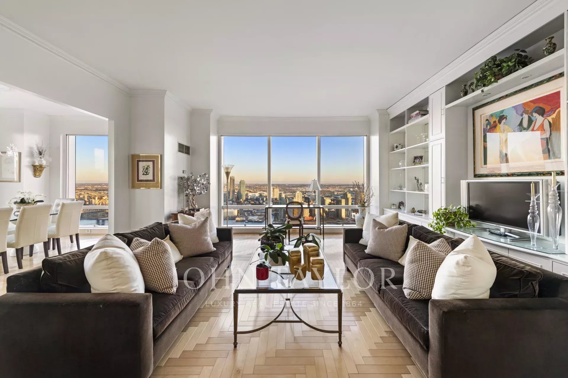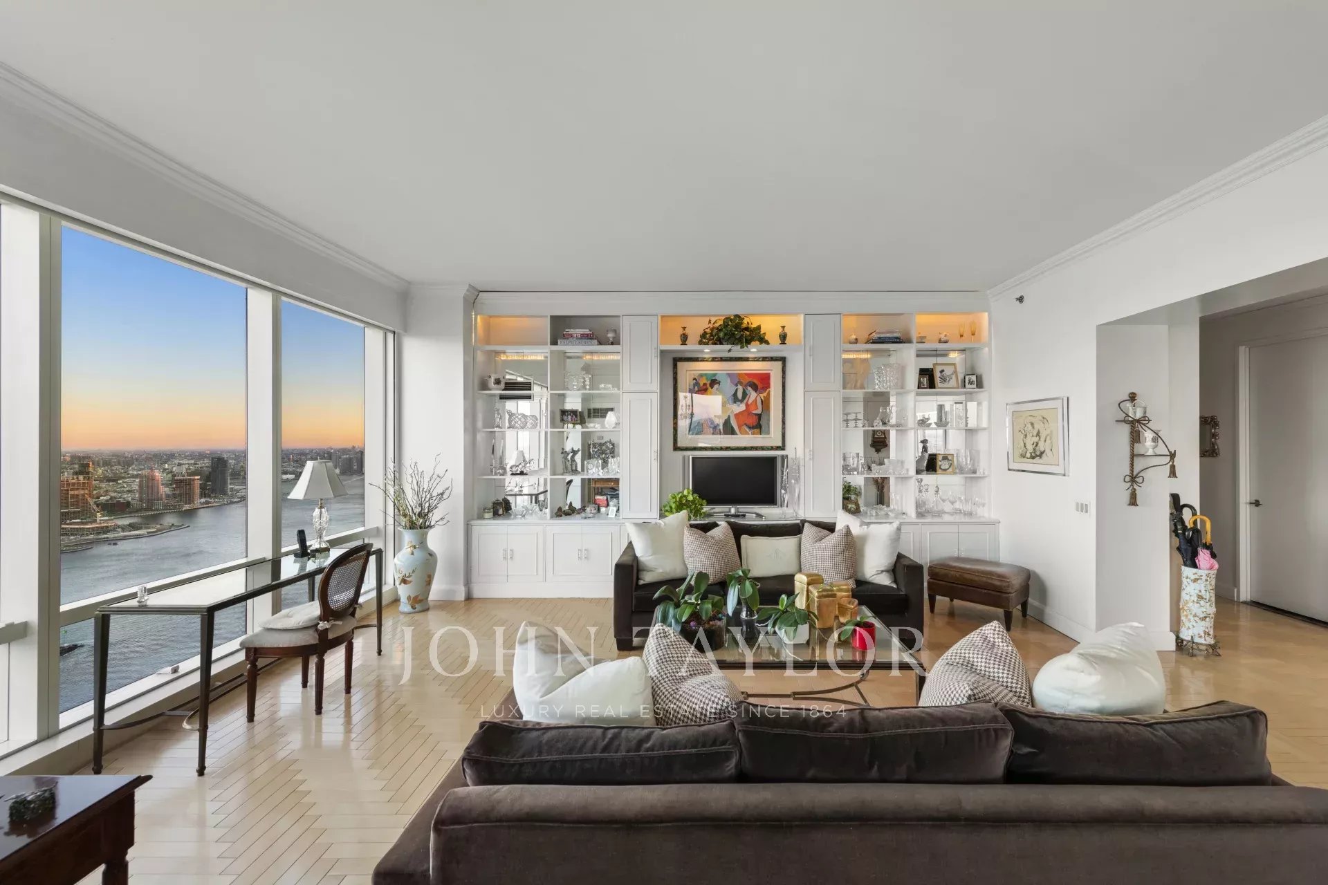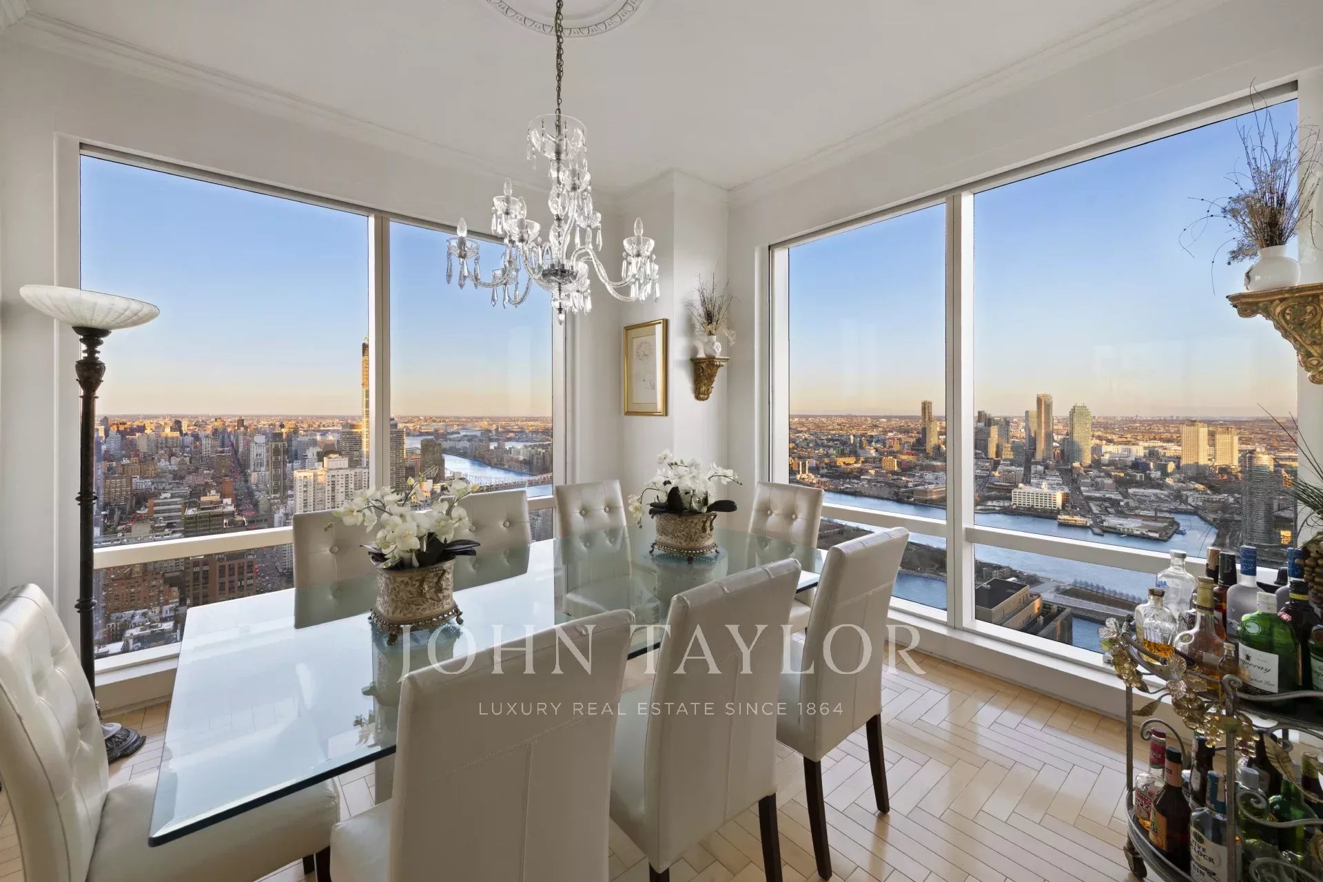 Ce magnifique appartement d'angle de 2 chambres et 2,5 salles de bains, est doté de fenêtres allant du sol au plafond et offrant des vues sur l'East River. En entrant dans le grand foyer, vous serez accueilli dans un grand salon qui bénéficie de la lumière naturelle et une salle à manger formelle qui est parfaite pour recevoir. La cuisine spacieuse avec coin repas offre des vues sur le nord de la ville.