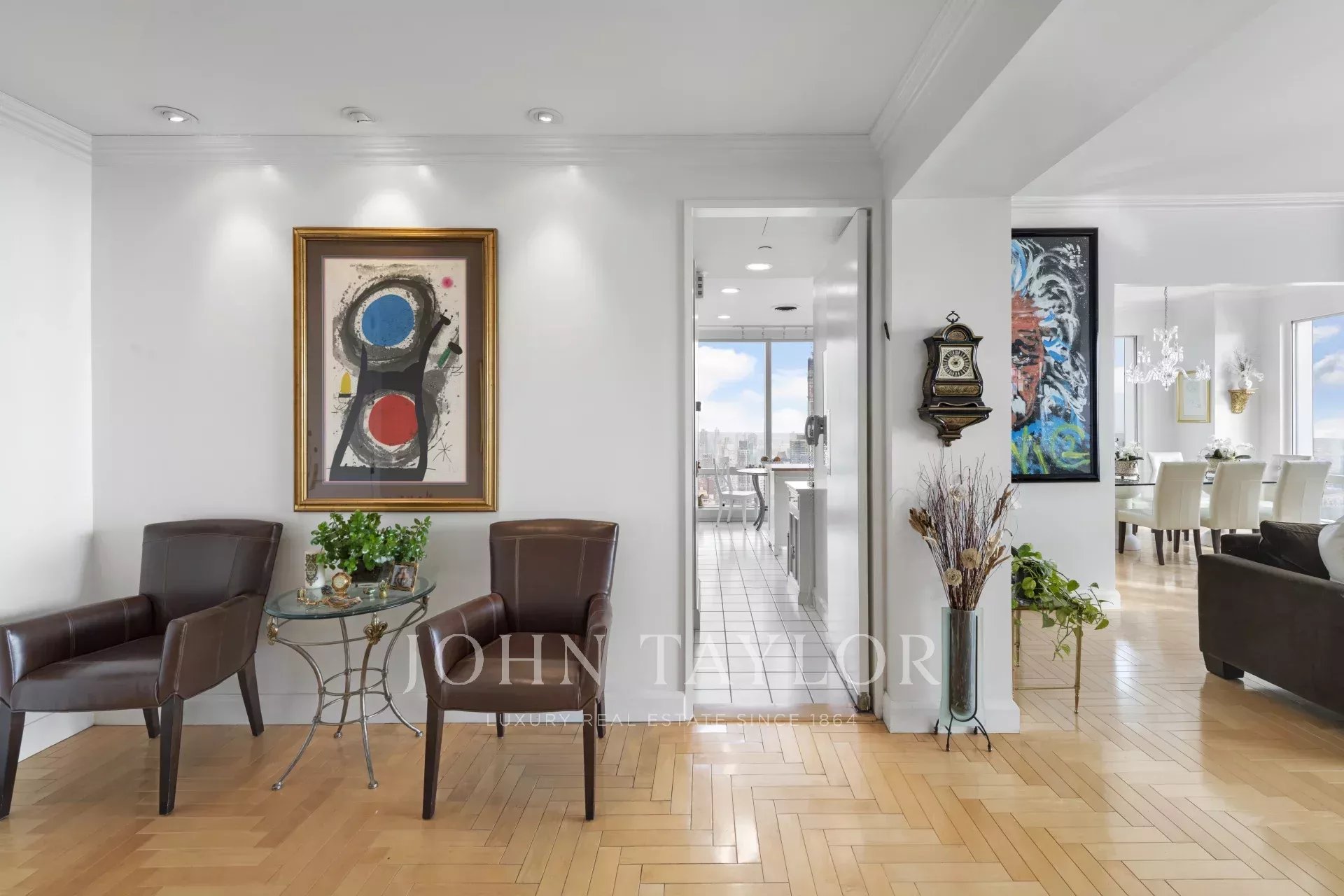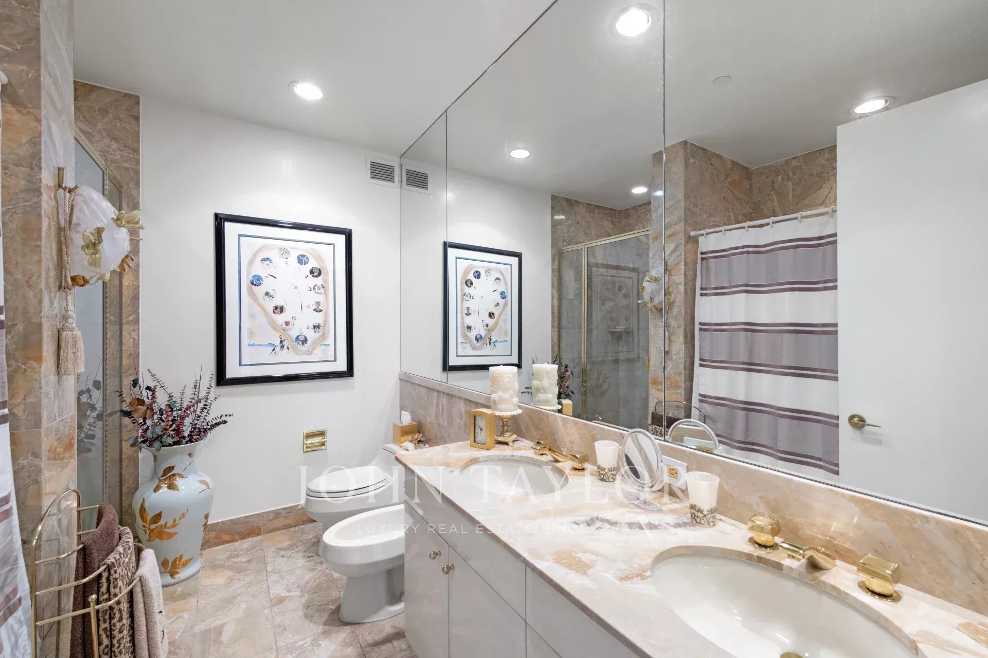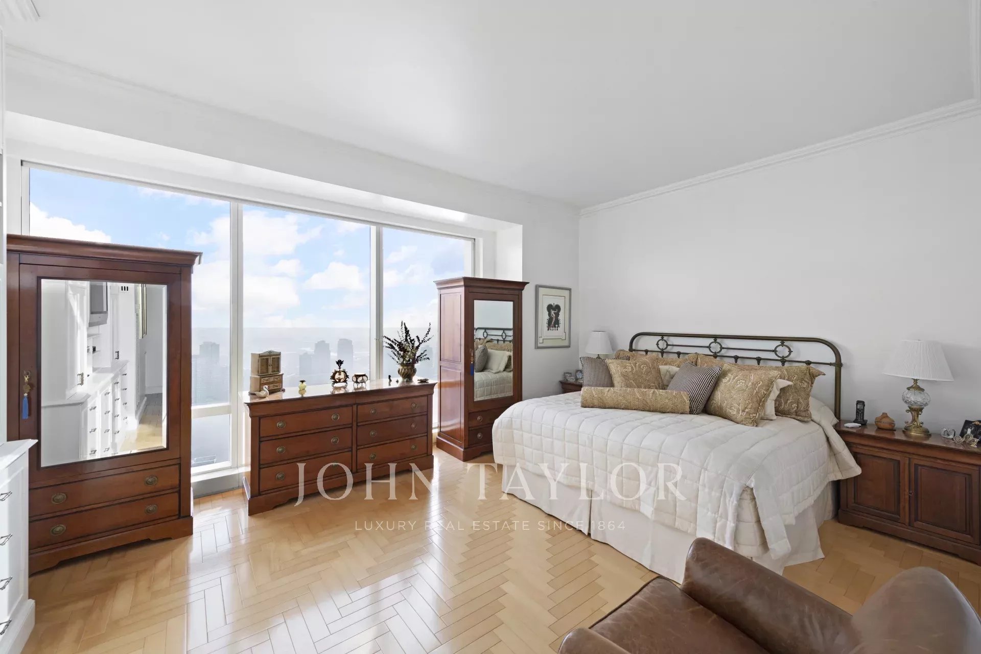 La chambre principale est dotée d'un dressing, d'une salle de bains en marbre et de meubles intégrés. L'immeuble offre un service 5 étoiles, notamment un concierge complet disponible 24 heures sur 24, une allée privée avec un service de voiturier, un jardin de résidents, un spa, un club de santé, une piscine intérieure, ainsi qu'un restaurant et un bar quatre étoiles.