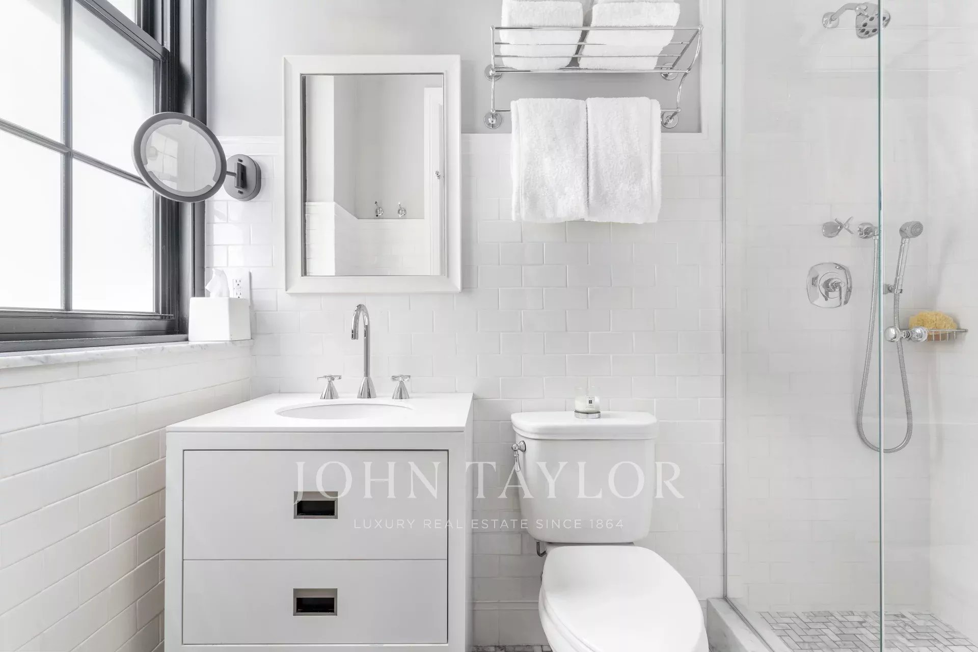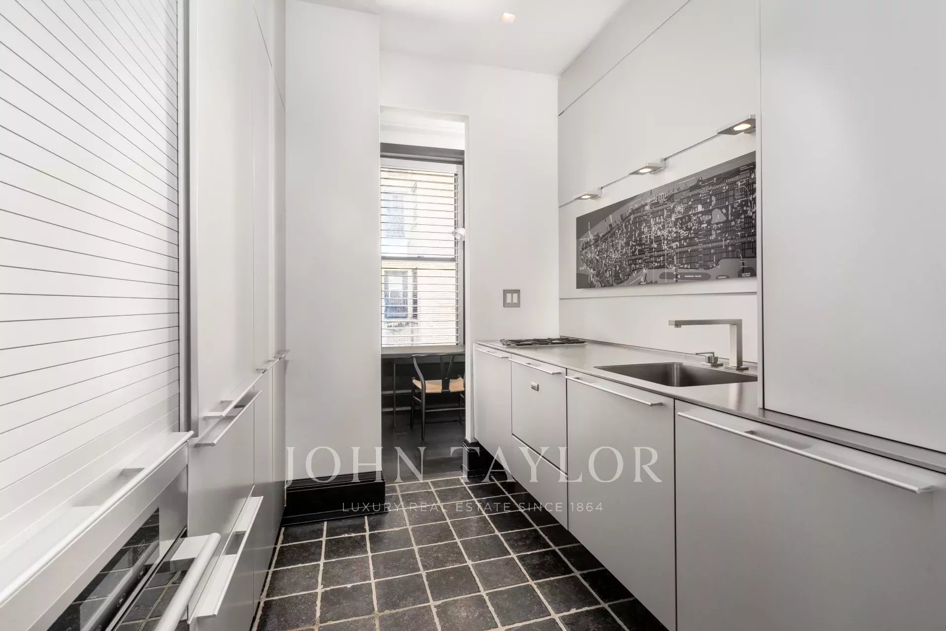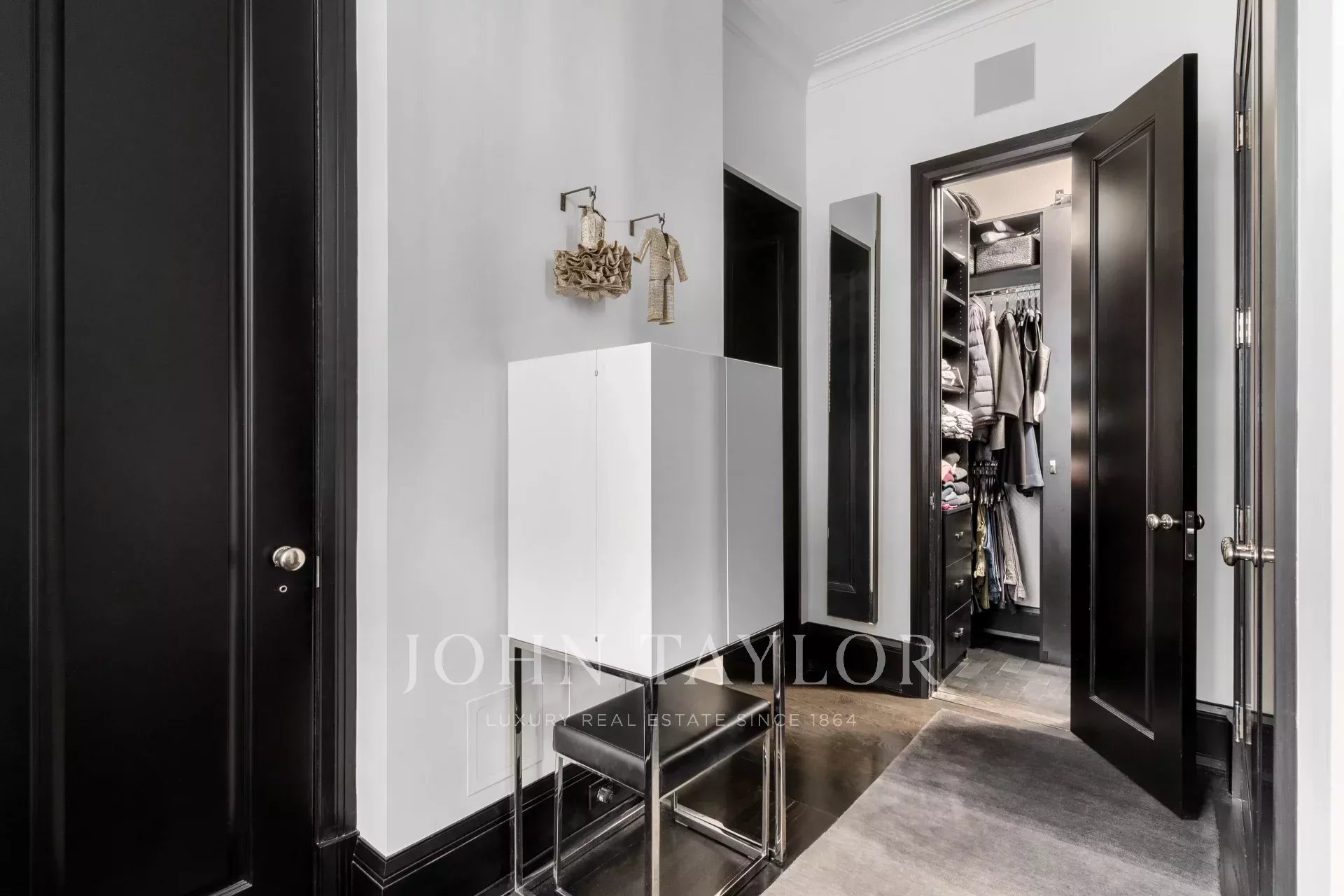 Ce grand appartement d'une chambre, entièrement rénové, est conçu de façon magistrale et situé dans l'un des immeubles d'avant-guerre les plus recherchés de New York, au 45 East 66th Street, à un pâté de maisons de Central Park. En entrant par le foyer personnalisé conçu par Michael Anderson, vous êtes accueillis dans un magnifique salon avec de grandes fenêtres et de hauts plafonds, idéal pour le plaisir personnel ou les réceptions. La maison, conçue avec goût, est équipée d'armoires de cuisine Bulthaup, d'appareils électroménagers sub-zero, Miele et Gaggenau, de quincaillerie Nanz, d'éclairages delta, de salles de bains Waterworks, de sols en cuir dans les placards, de peinture Farrow and Ball et de volets en aluminium.