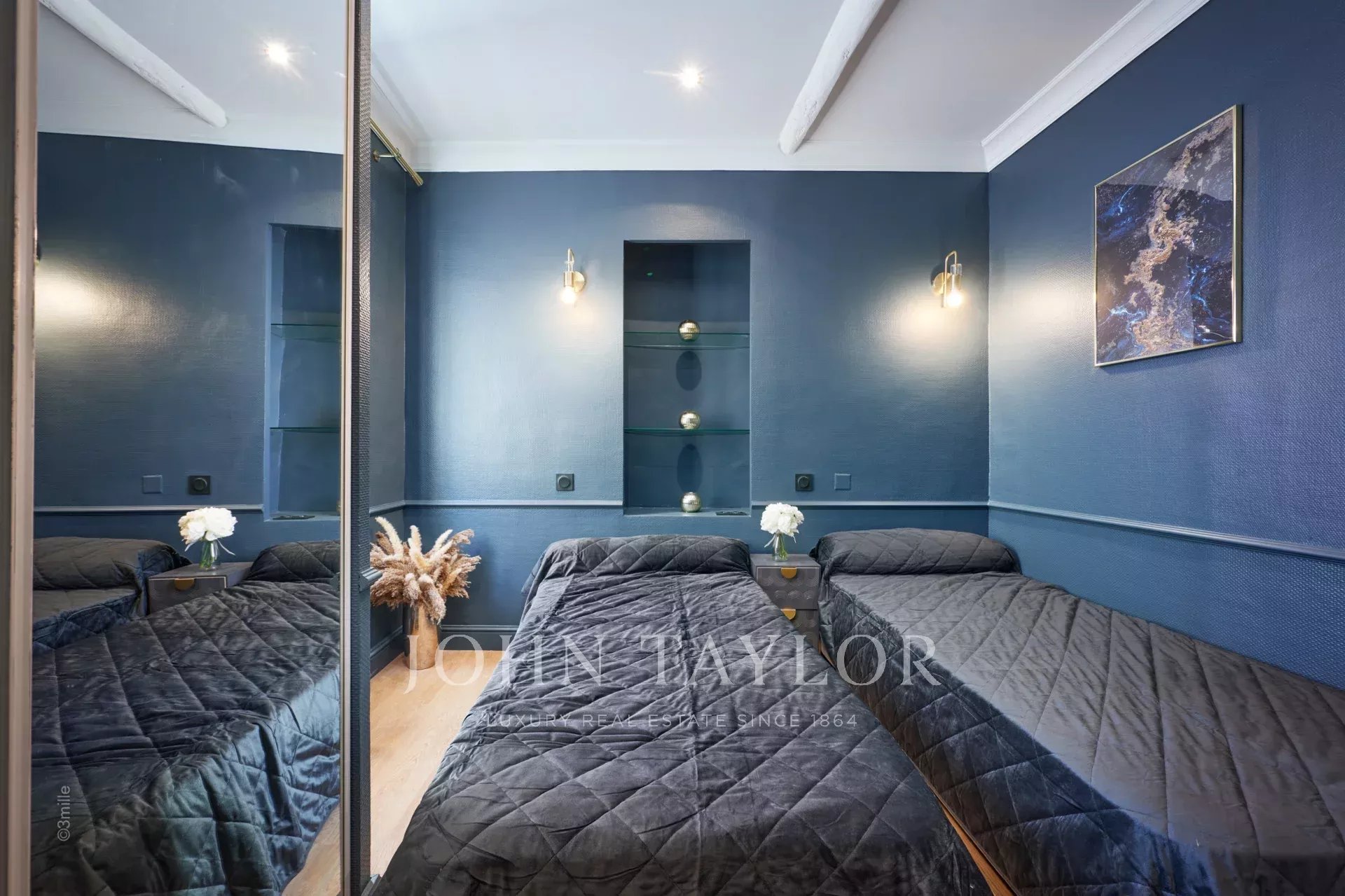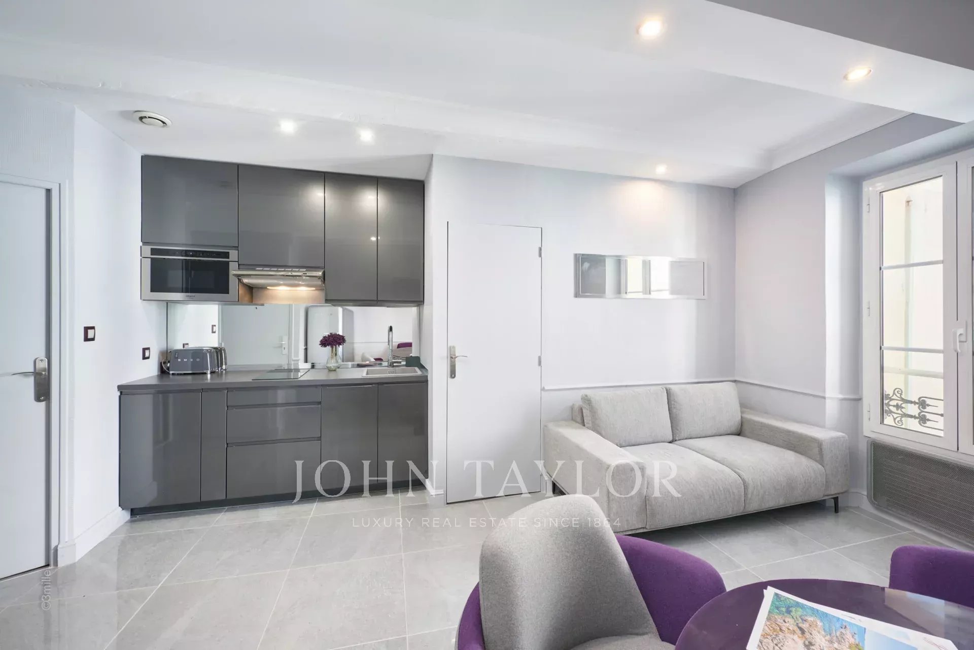 Au 3ème étage d’un immeuble bourgeois, idéalement situé, à deux pas du Boulevard de la Croisette, de ses plages et du Palais des Festivals, charmant appartement climatisé de 40 m2 entièrement et très joliment rénové.