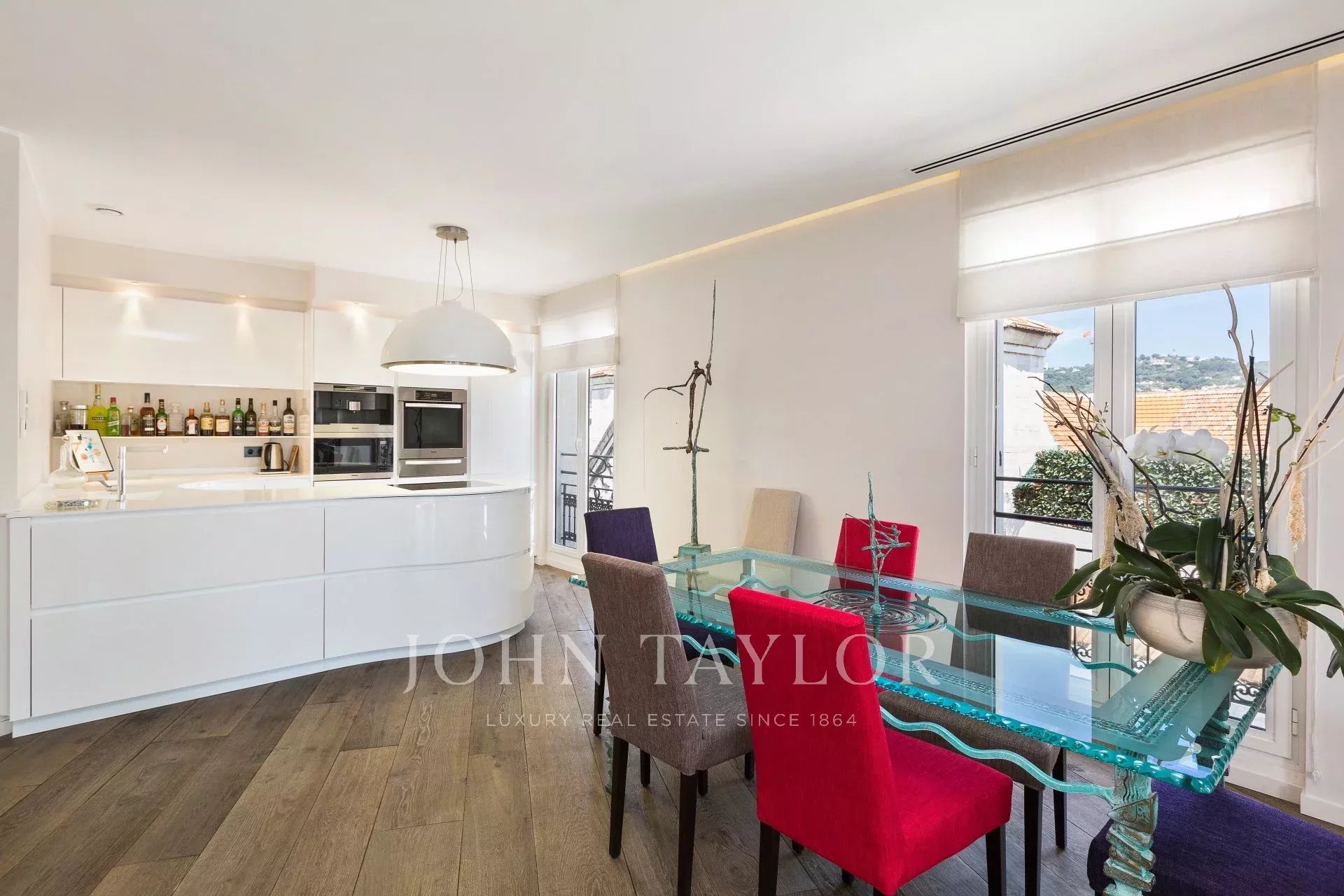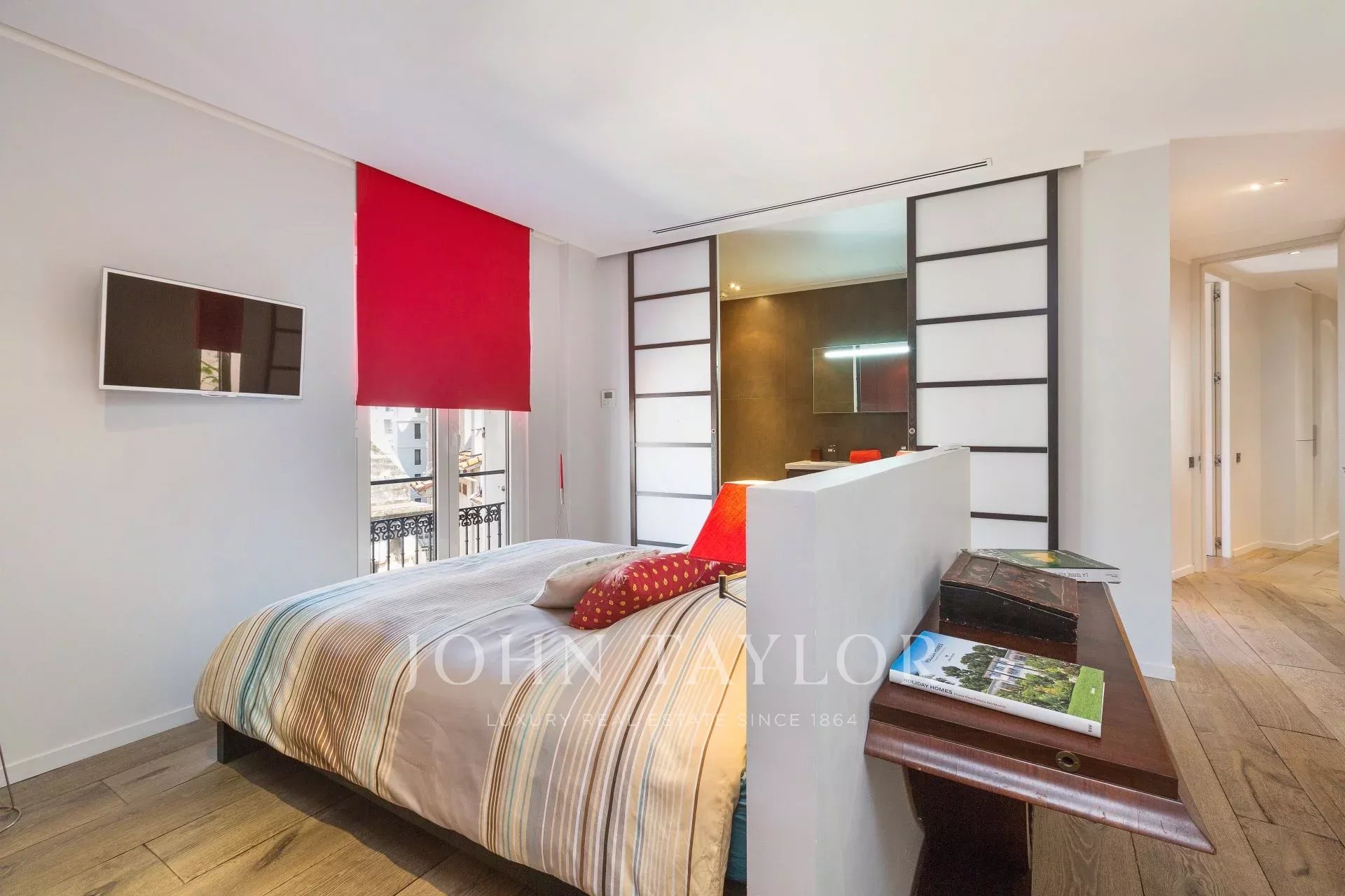 Entièrement rénové, cet appartement contemporain séduit par sa décoration, ses prestations haut de gamme et raffinées, sa large terrasse en teck et sa situation.