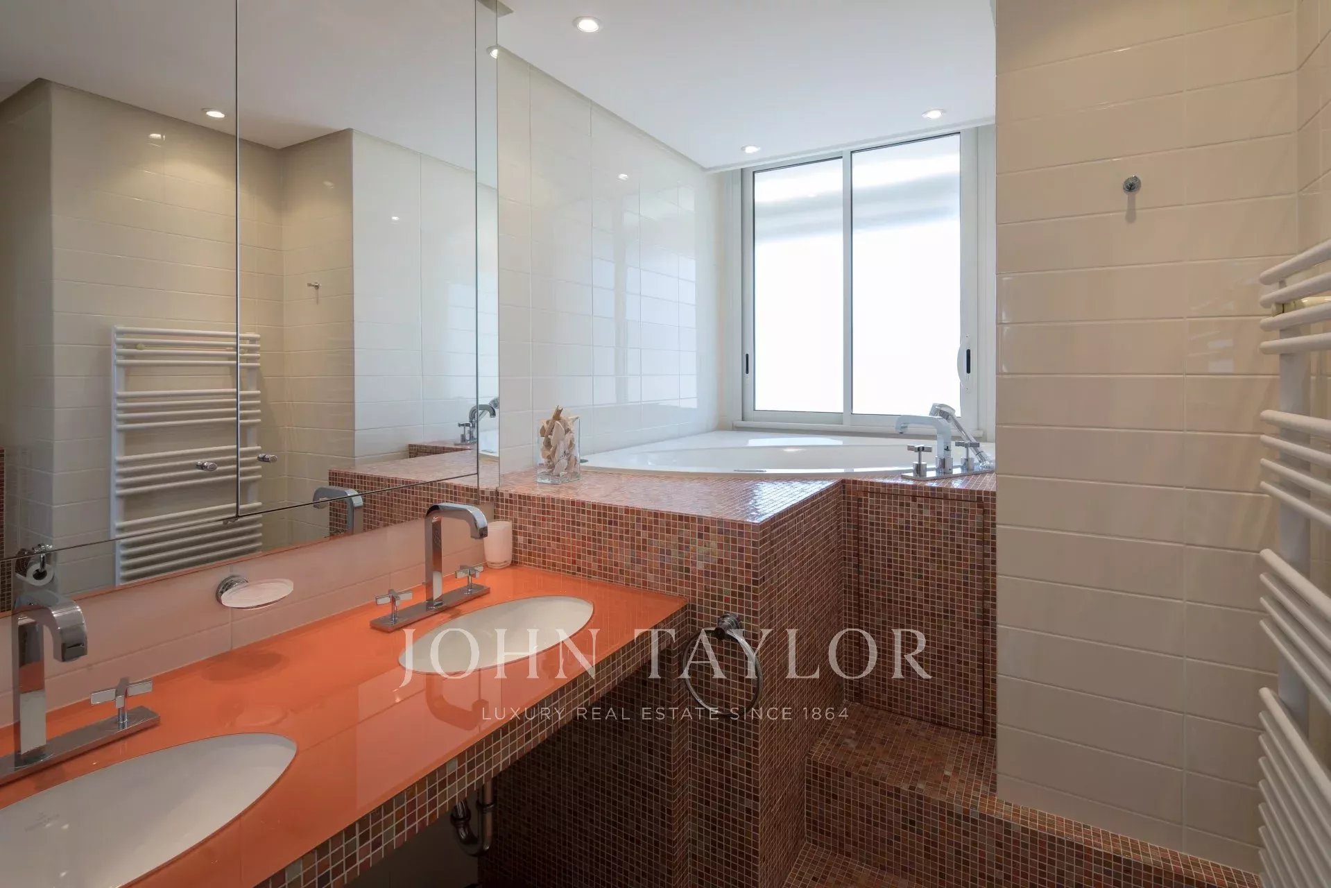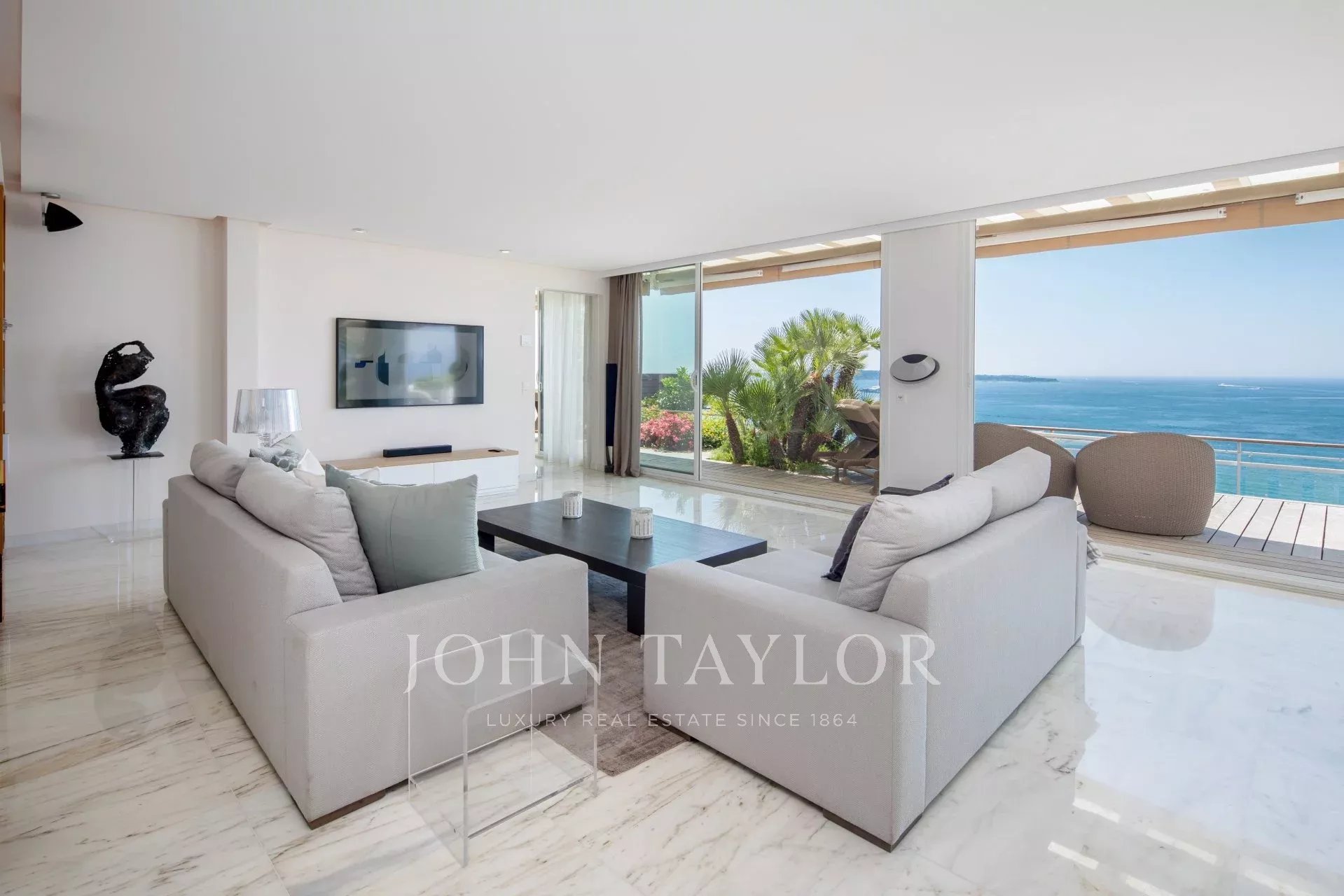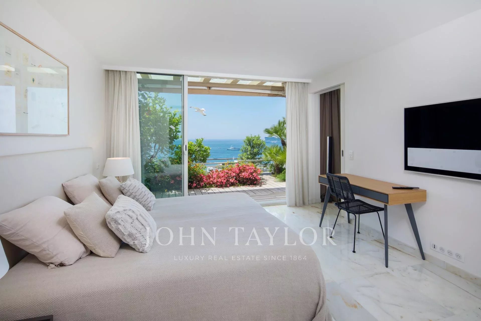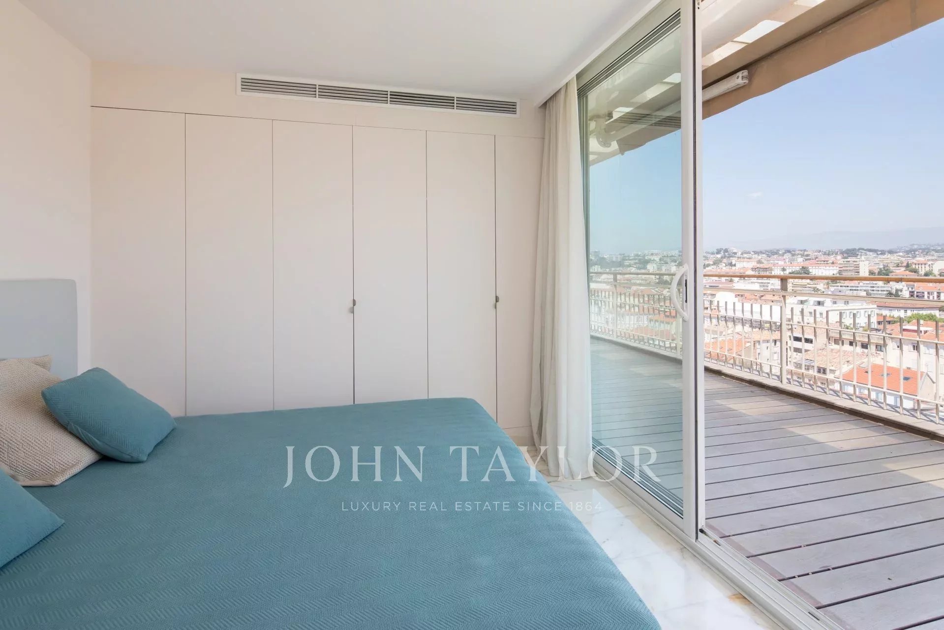 Cet appartement offre toutes les prestations et le confort nécessaire afin d'organiser vos rendez-vous professionnels; Grand appartement de 150 m² avec terrasse de 182m² bénéficiant d'une vue panoramique sur la Baie de Cannes.