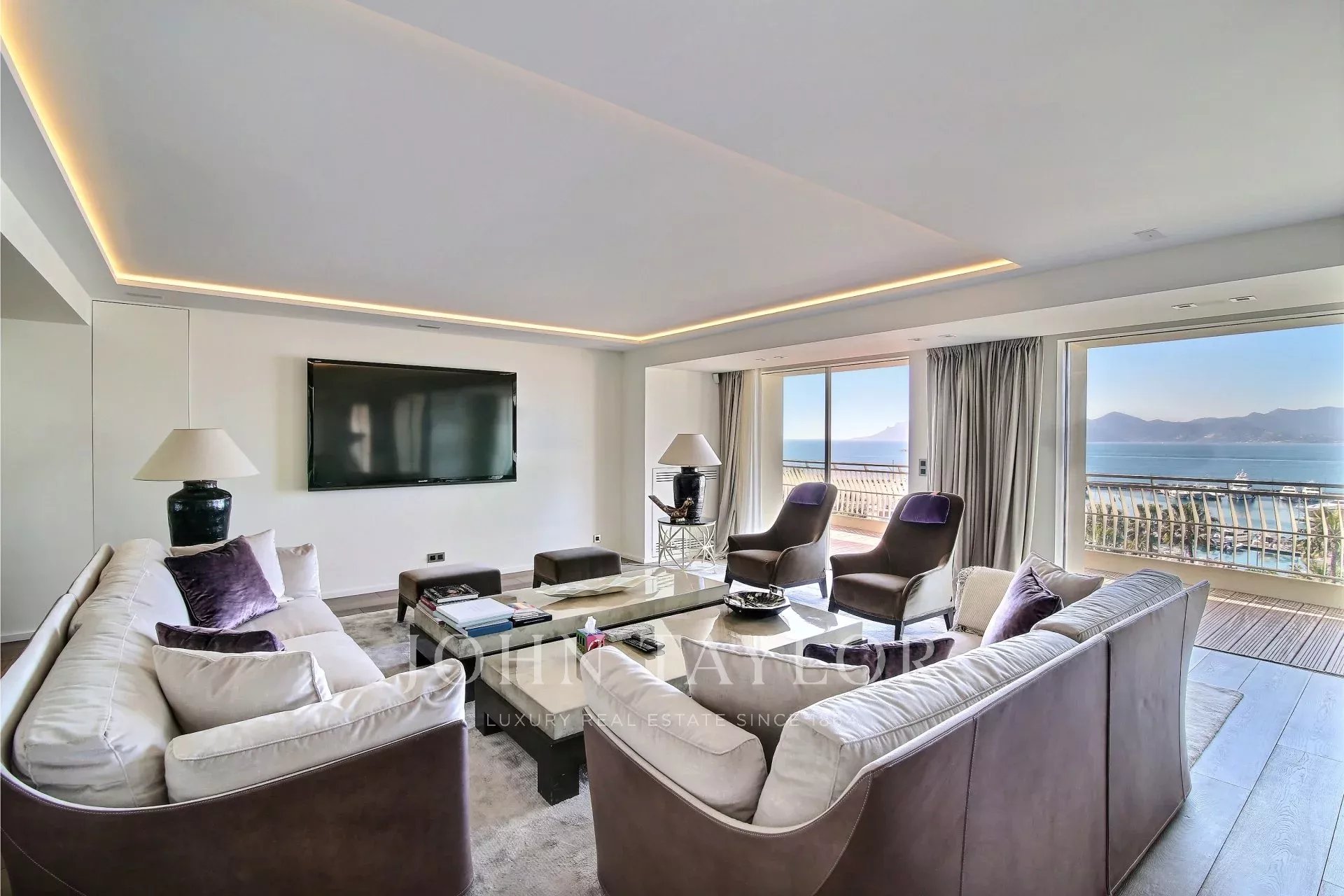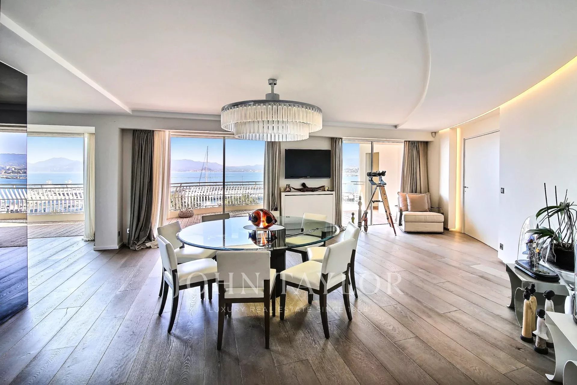 Dans l'une des plus prestigieuses résidences de la Croisette, offrant une superbe vue sur la Baie de Cannes, magnifique appartement-duplex de 600 m2 habitables.