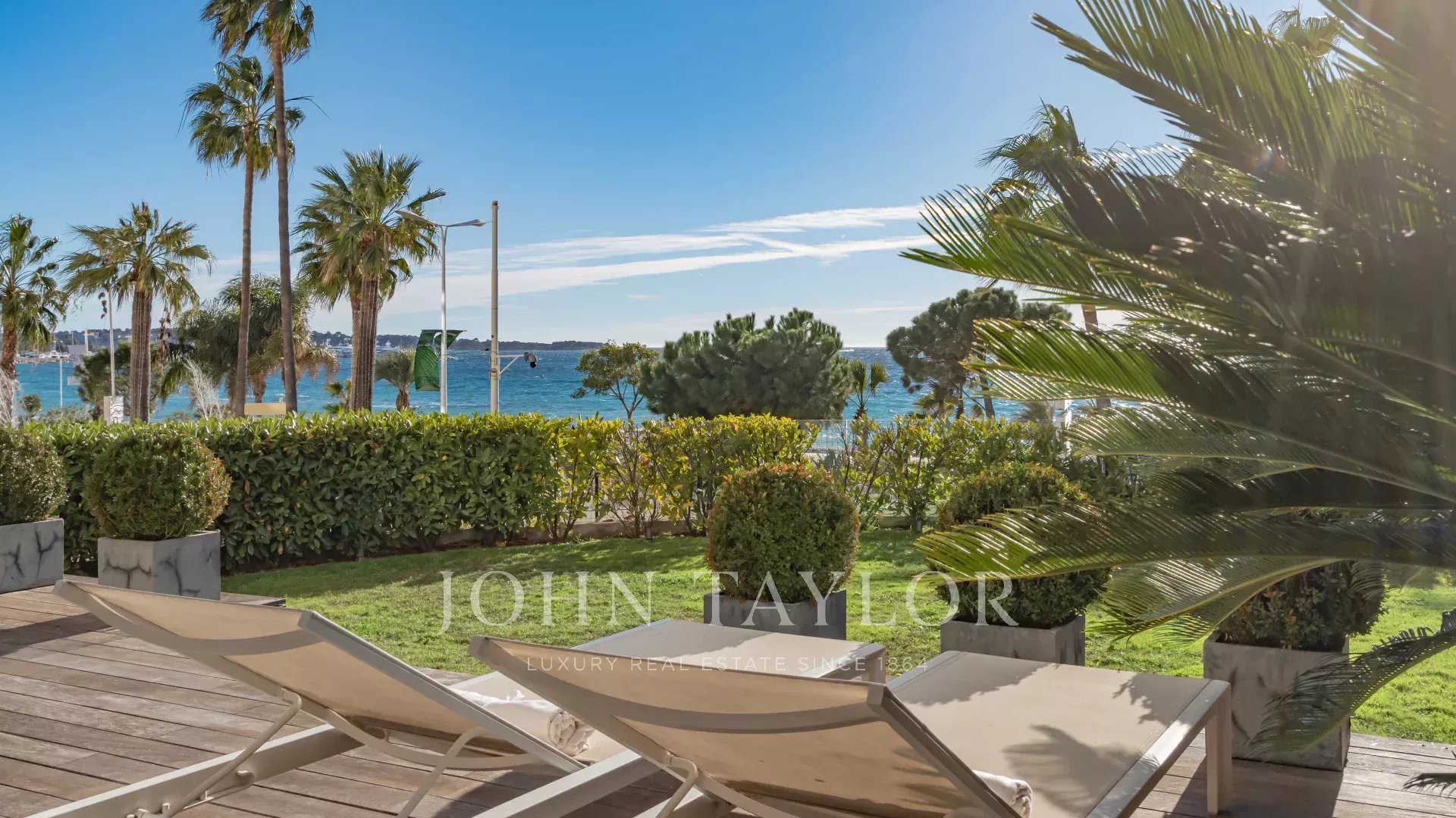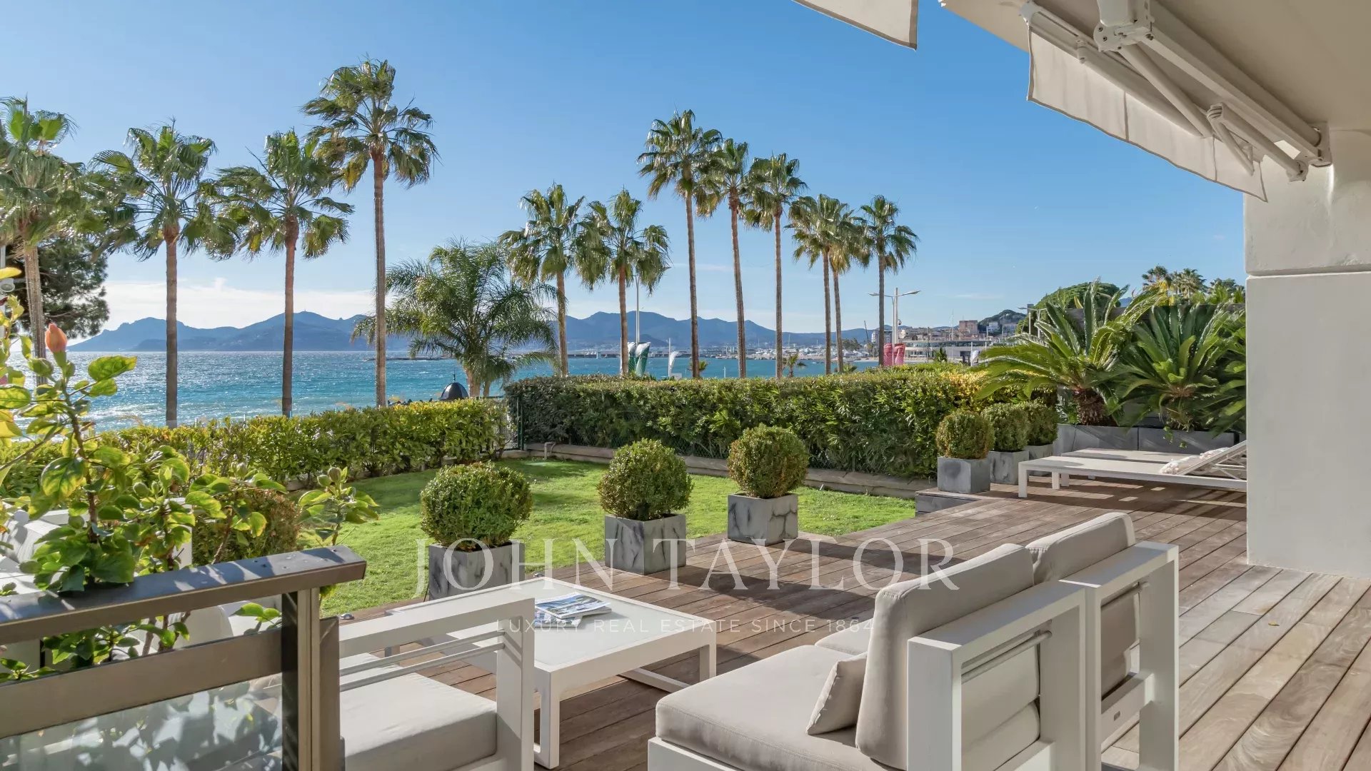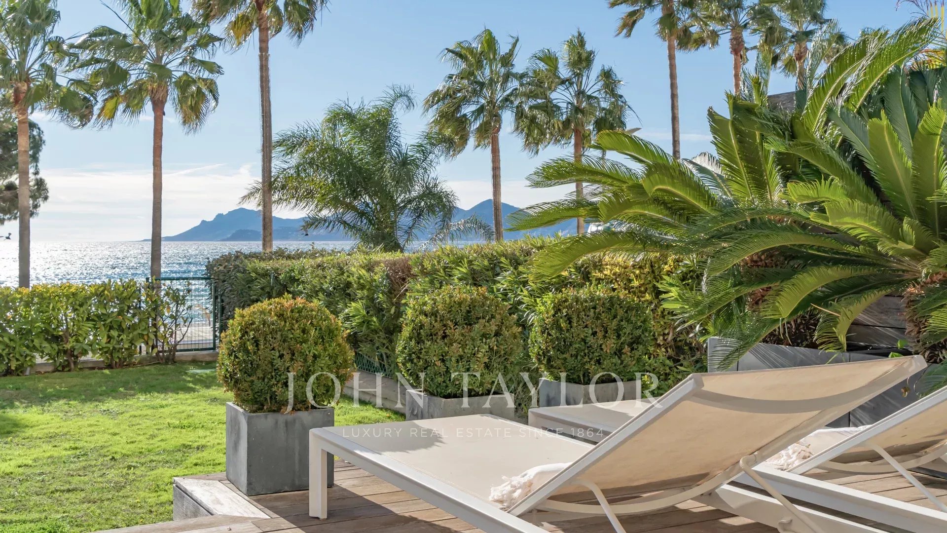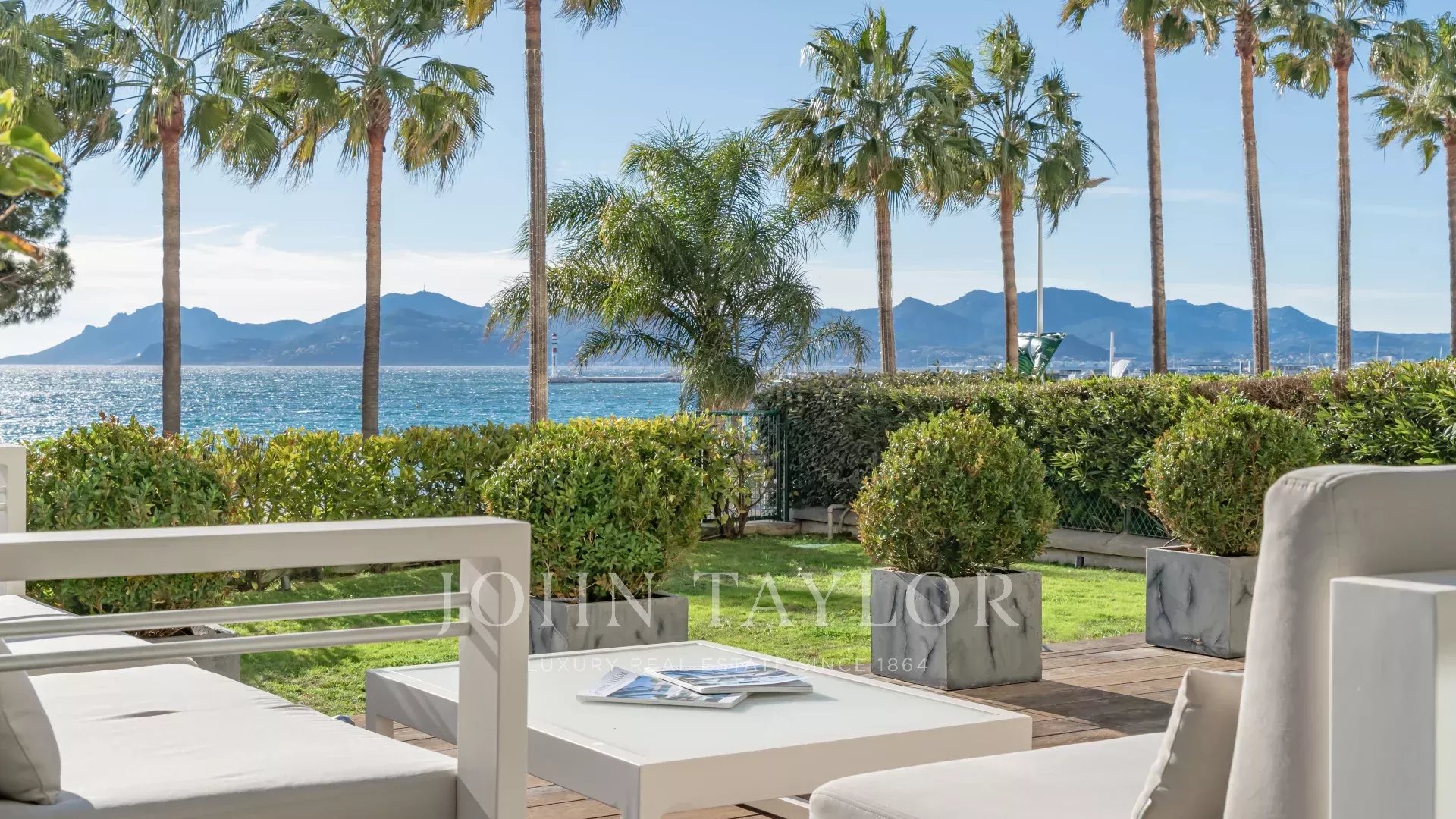 Profitez d’une vue panoramique sur la baie de Cannes depuis une terrasse-jardin privée de 100 m², idéale pour des réceptions ou des réunions professionnelles.