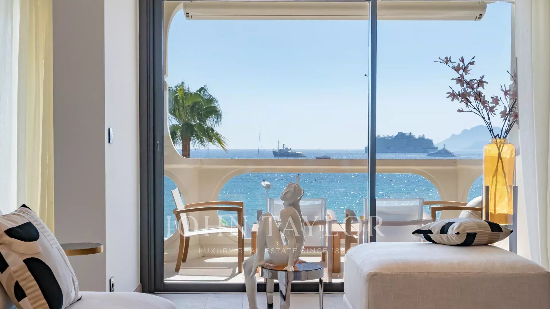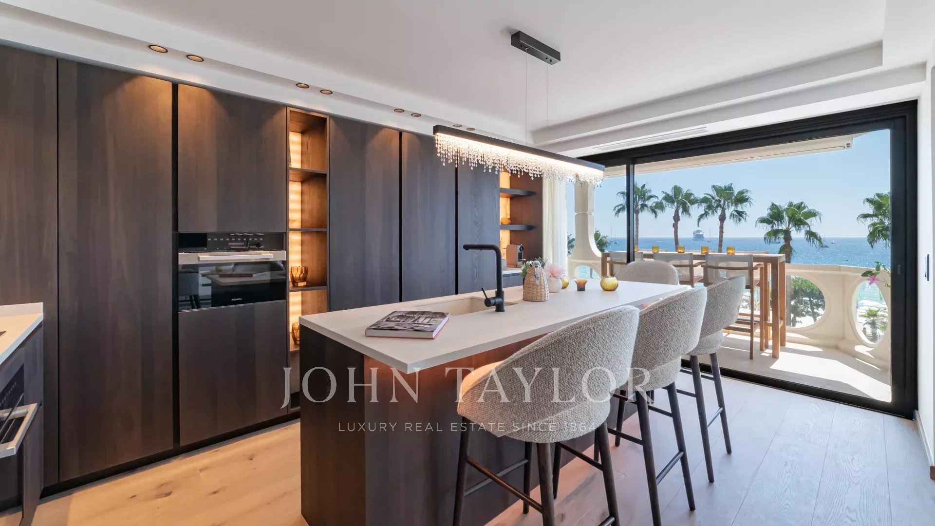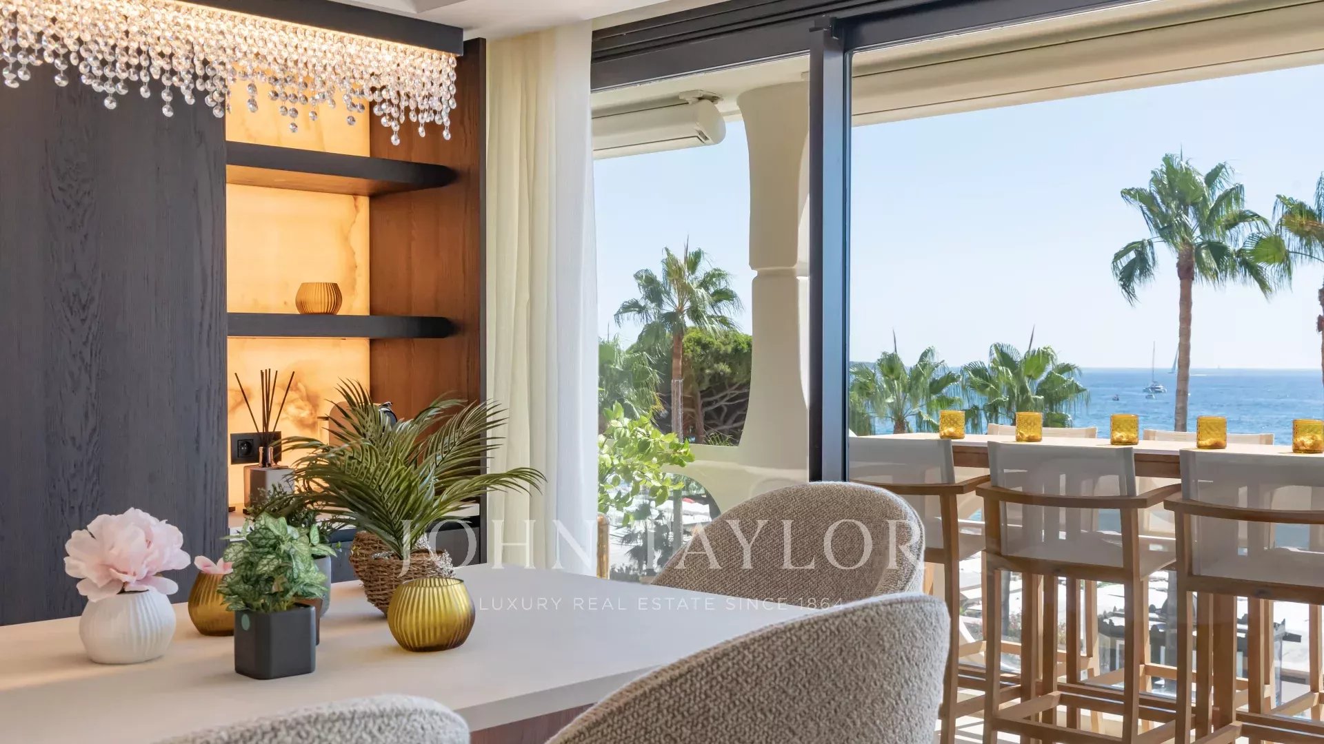 Magnifique appartement situé dans une résidence prestigieuse de la Croisette, entre les célèbres palaces du Carlton et du Marriott. Offrant une vue imprenable sur la mer Méditerranée, cet appartement a été entièrement rénové avec des prestations haut de gamme et un souci du détail raffiné, offrant une expérience de séjour inoubliable.