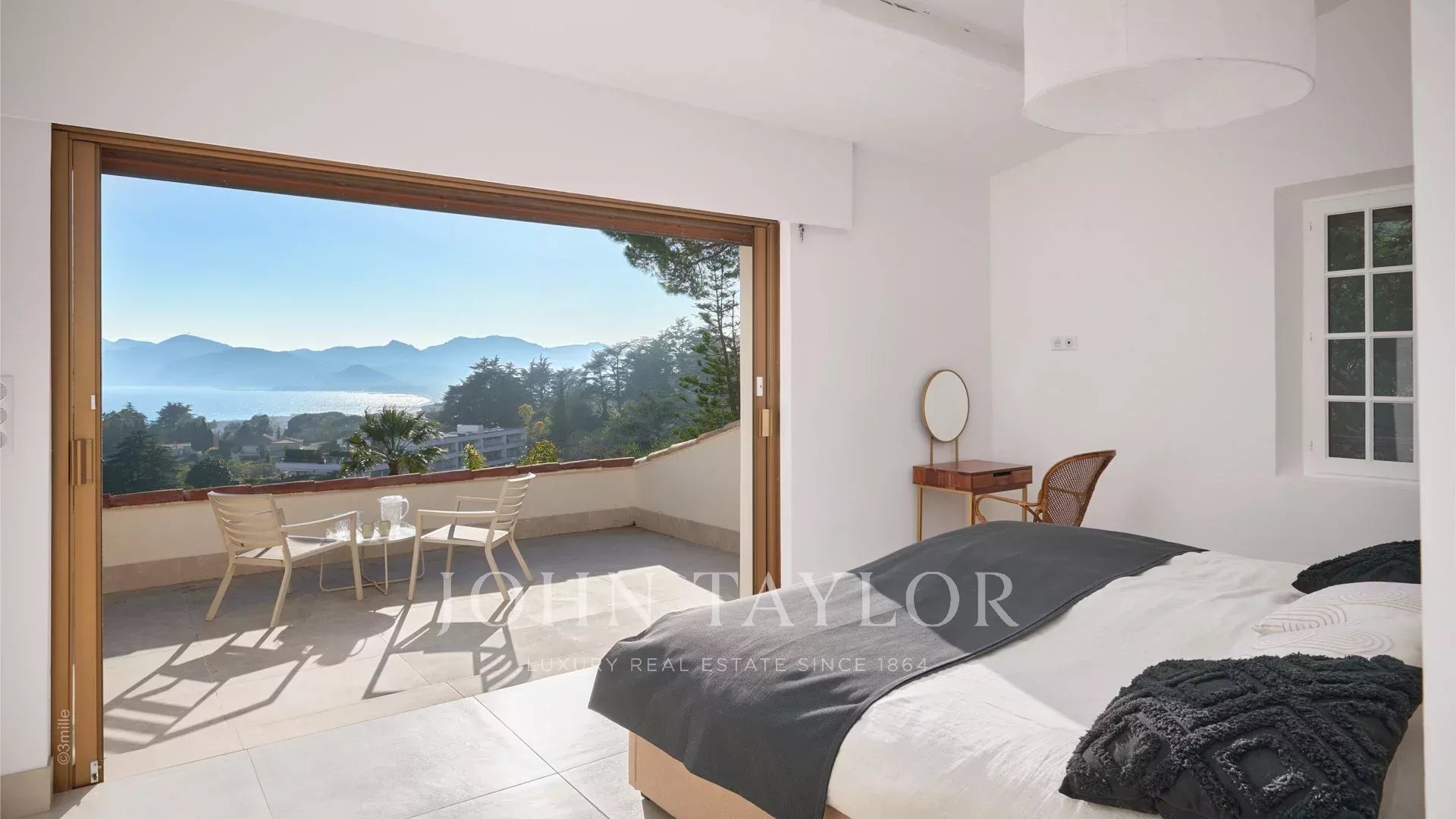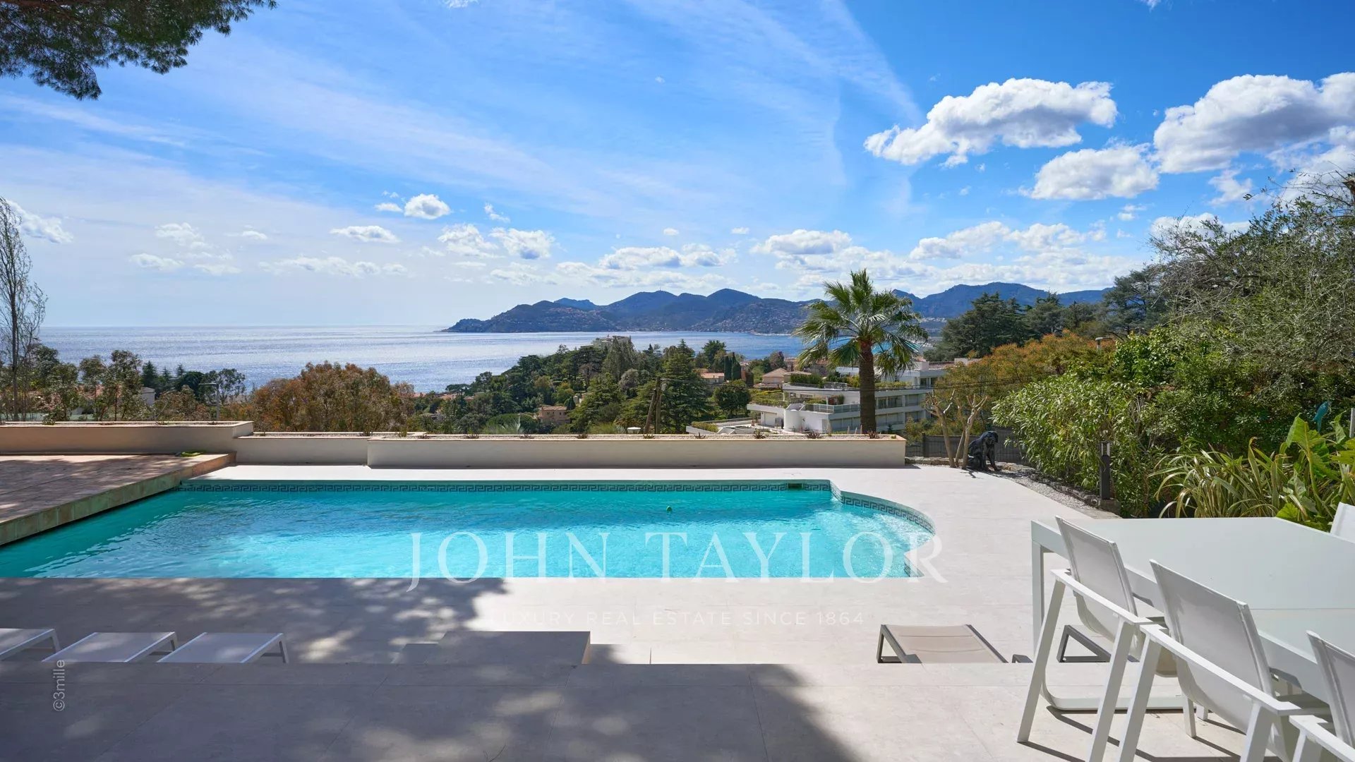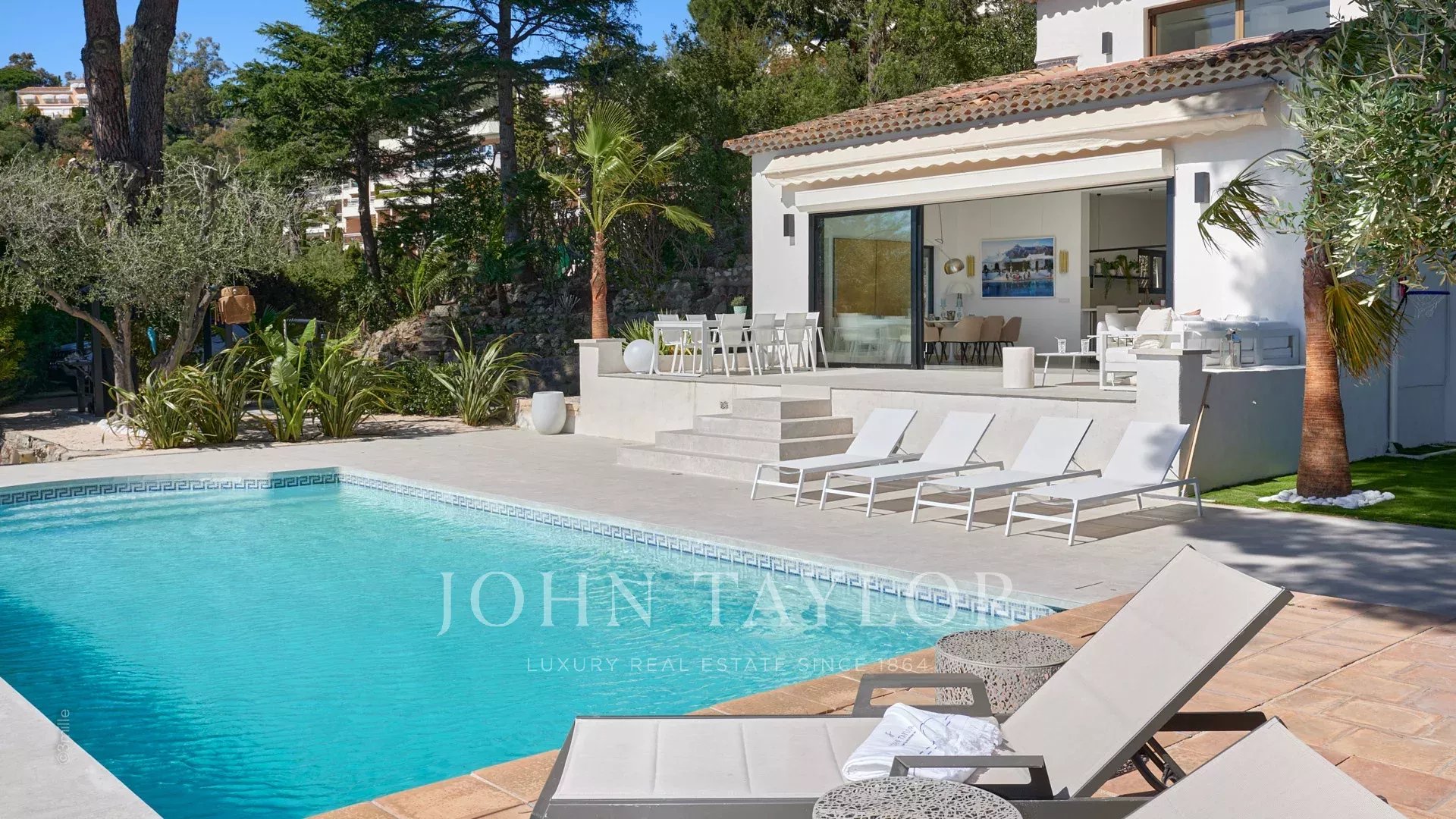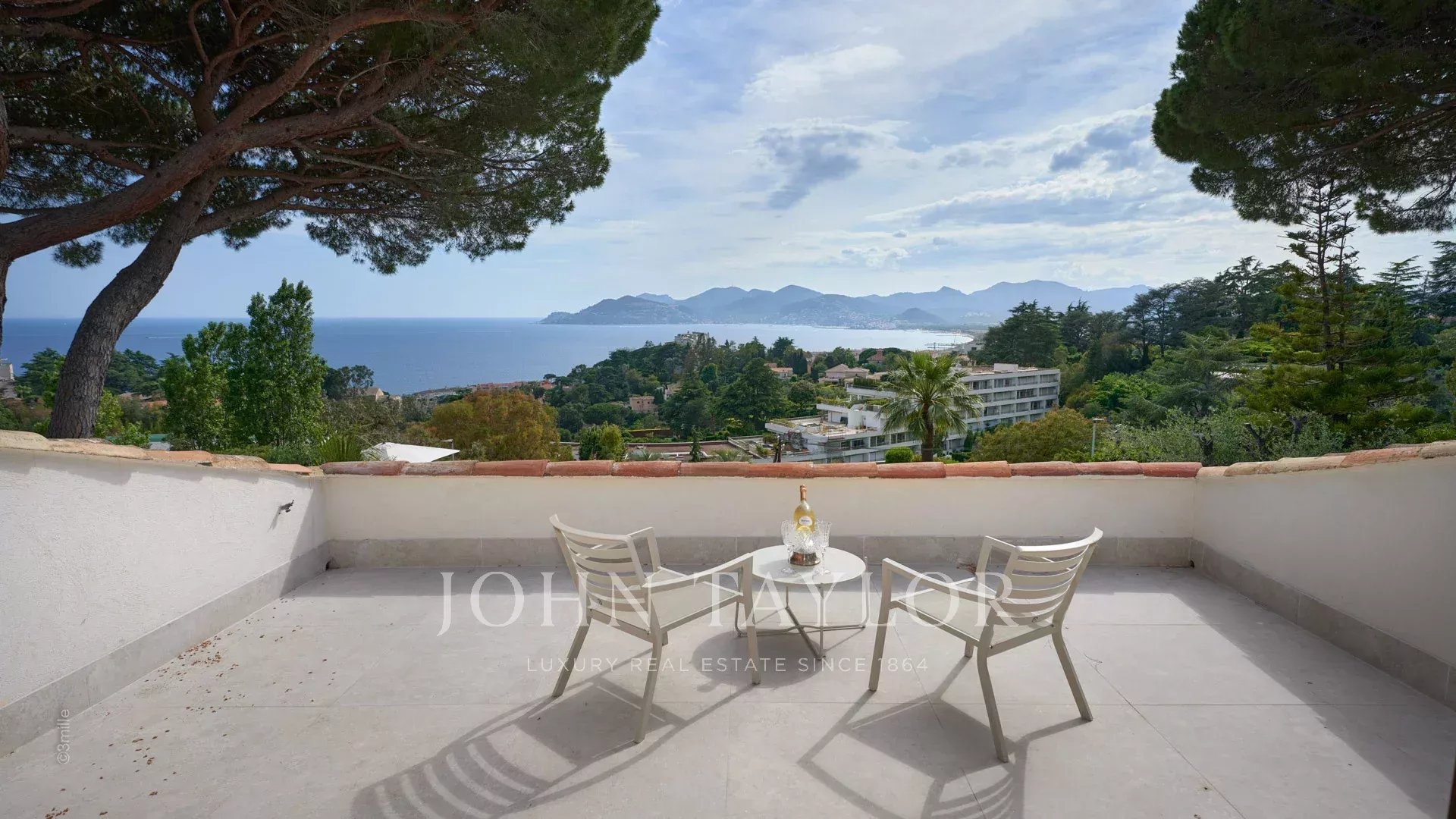 Quartier « Croix des Gardes », exposition sud-ouest, belle villa néo-provençale, entièrement rénovée et climatisée, jouissant d'un magnifique panorama sur la mer et le Massif de l’Estérel.