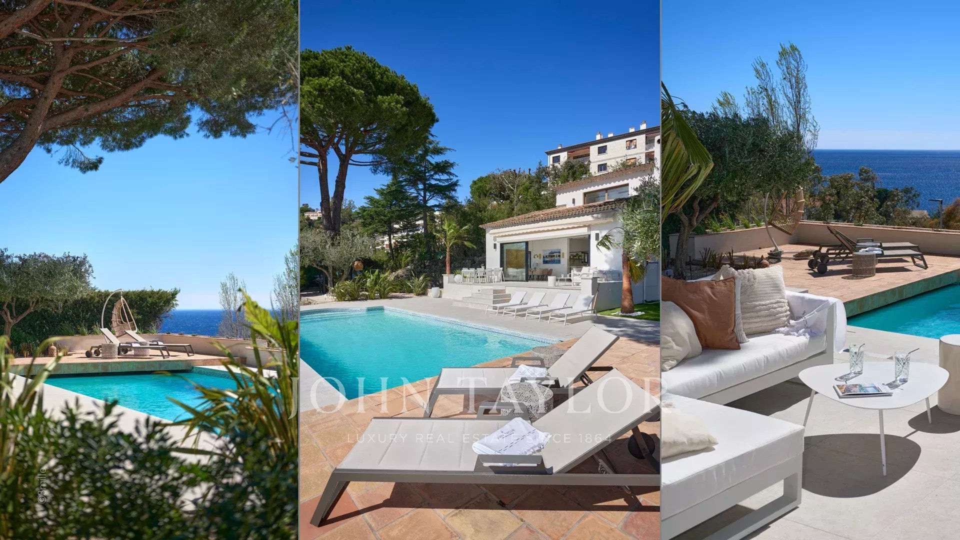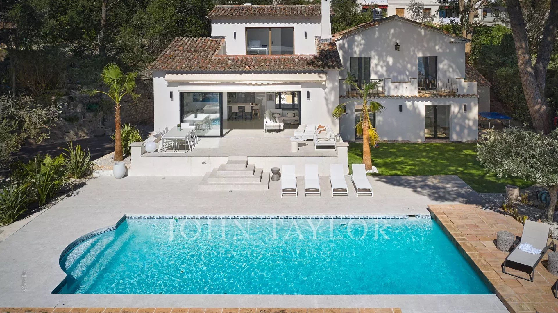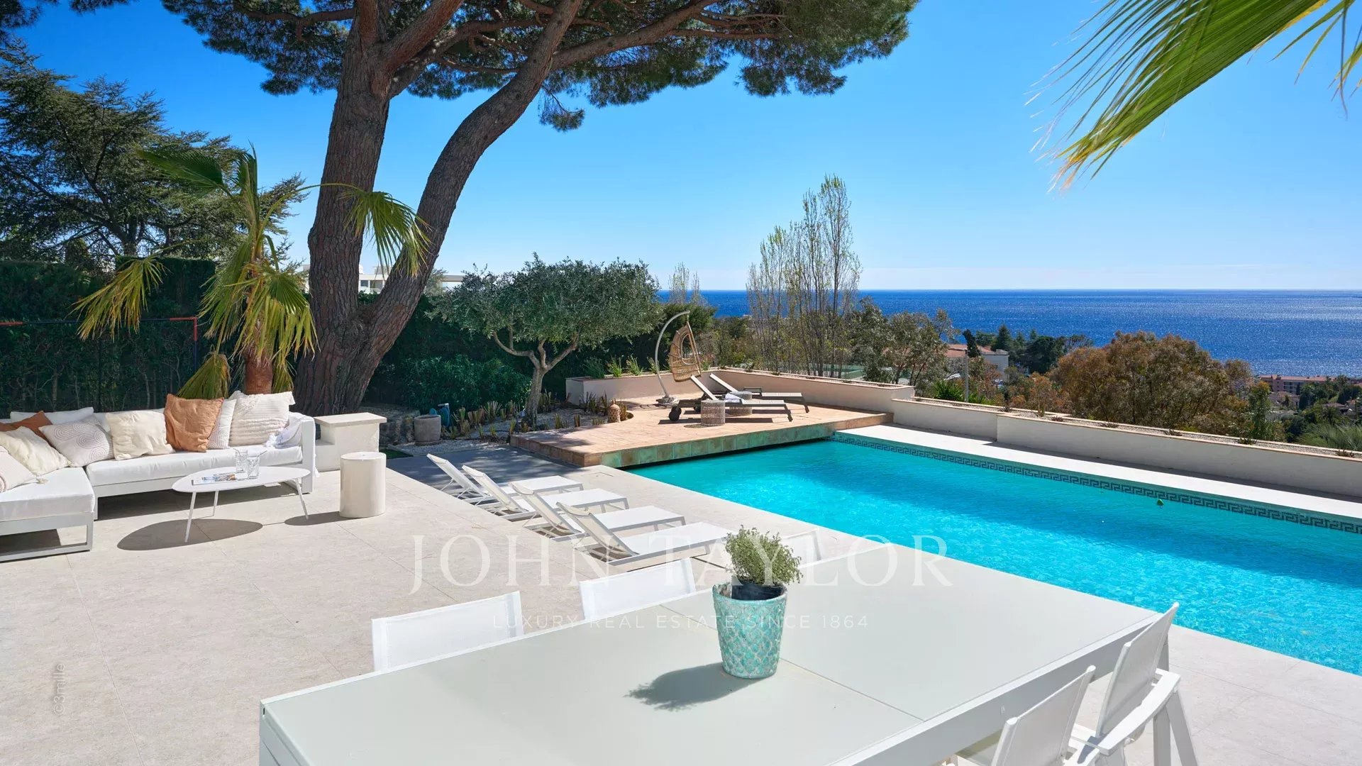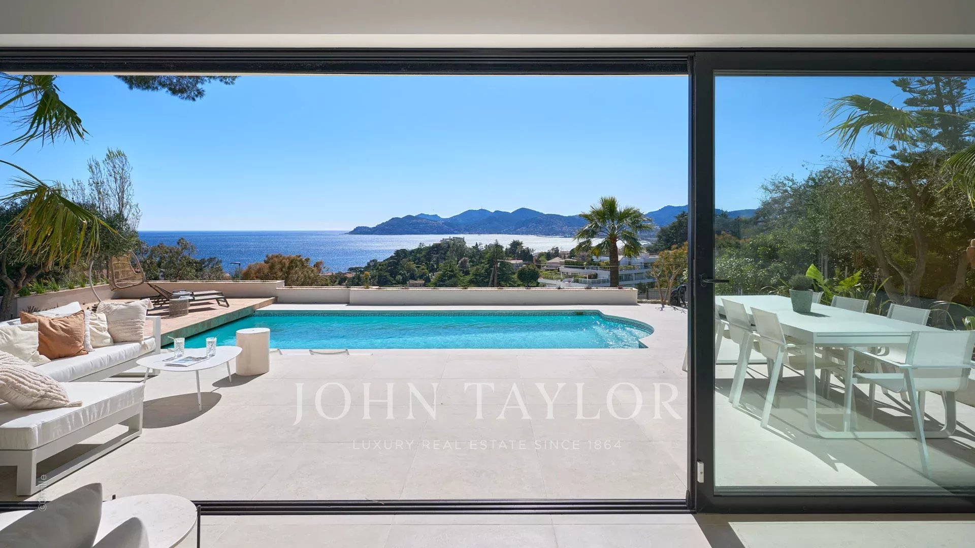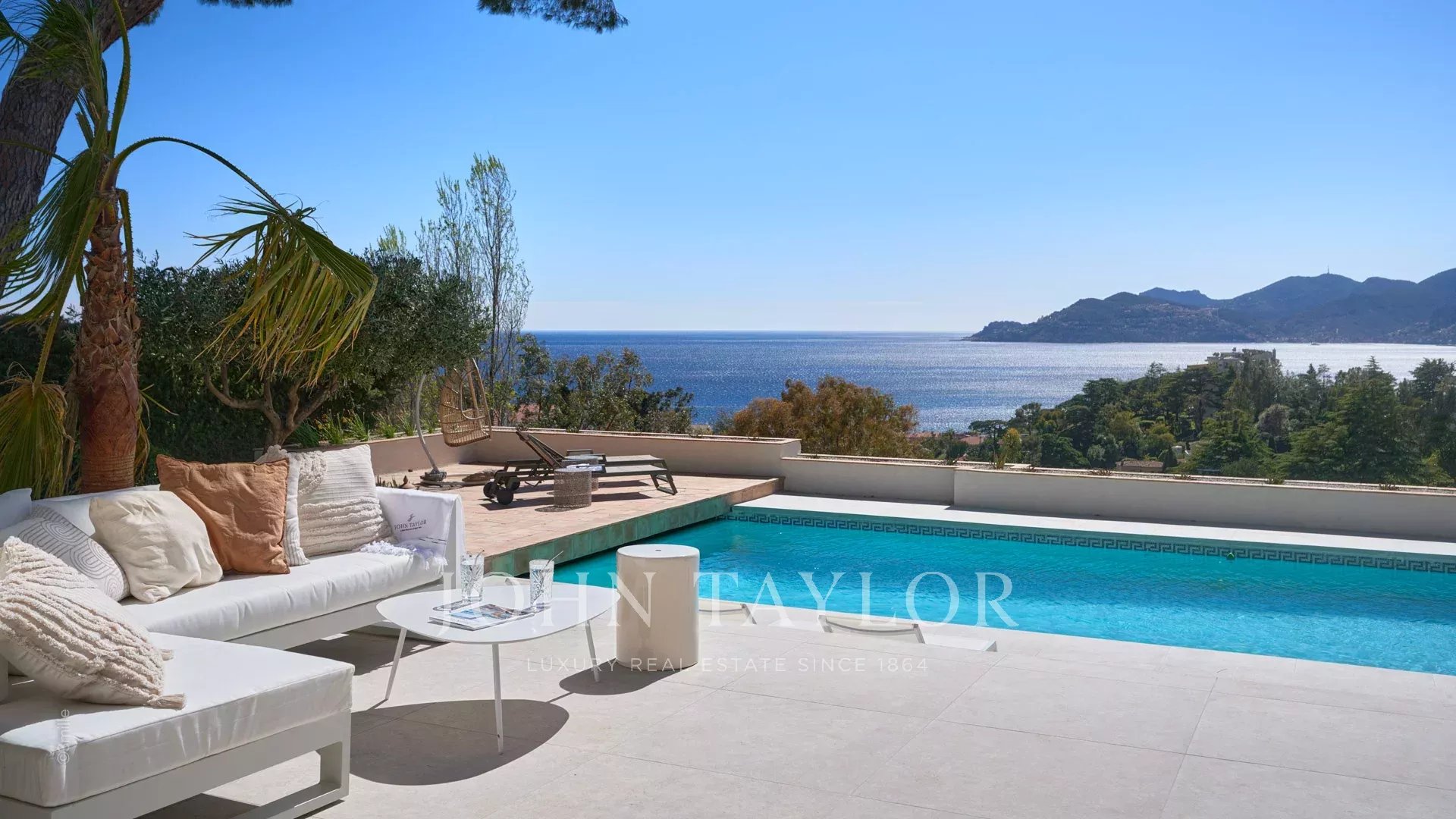 Quartier « Croix des Gardes », exposition sud-ouest, belle villa néo-provençale, entièrement rénovée et climatisée, jouissant d'un magnifique panorama sur la mer et le Massif de l’Estérel.