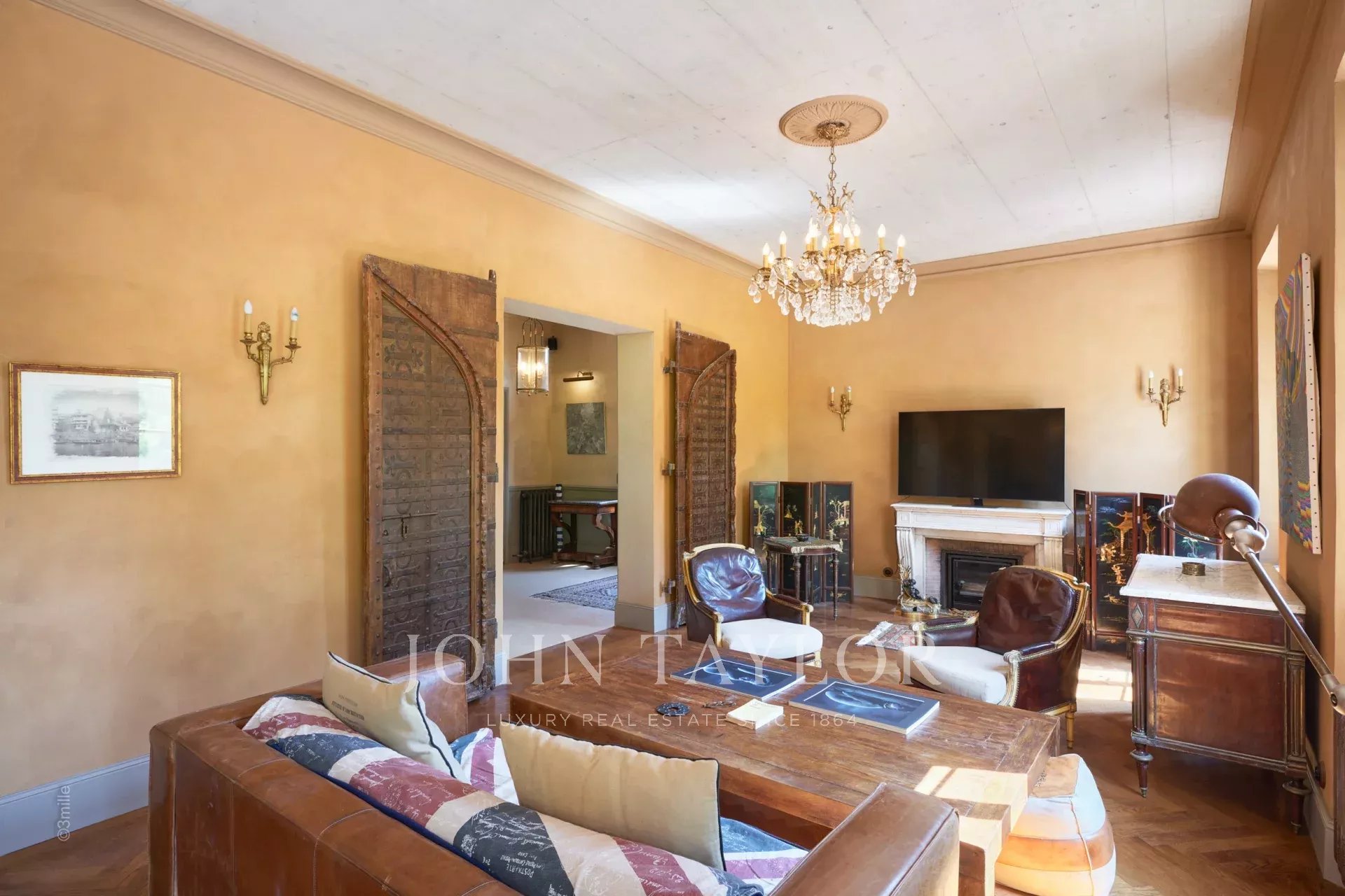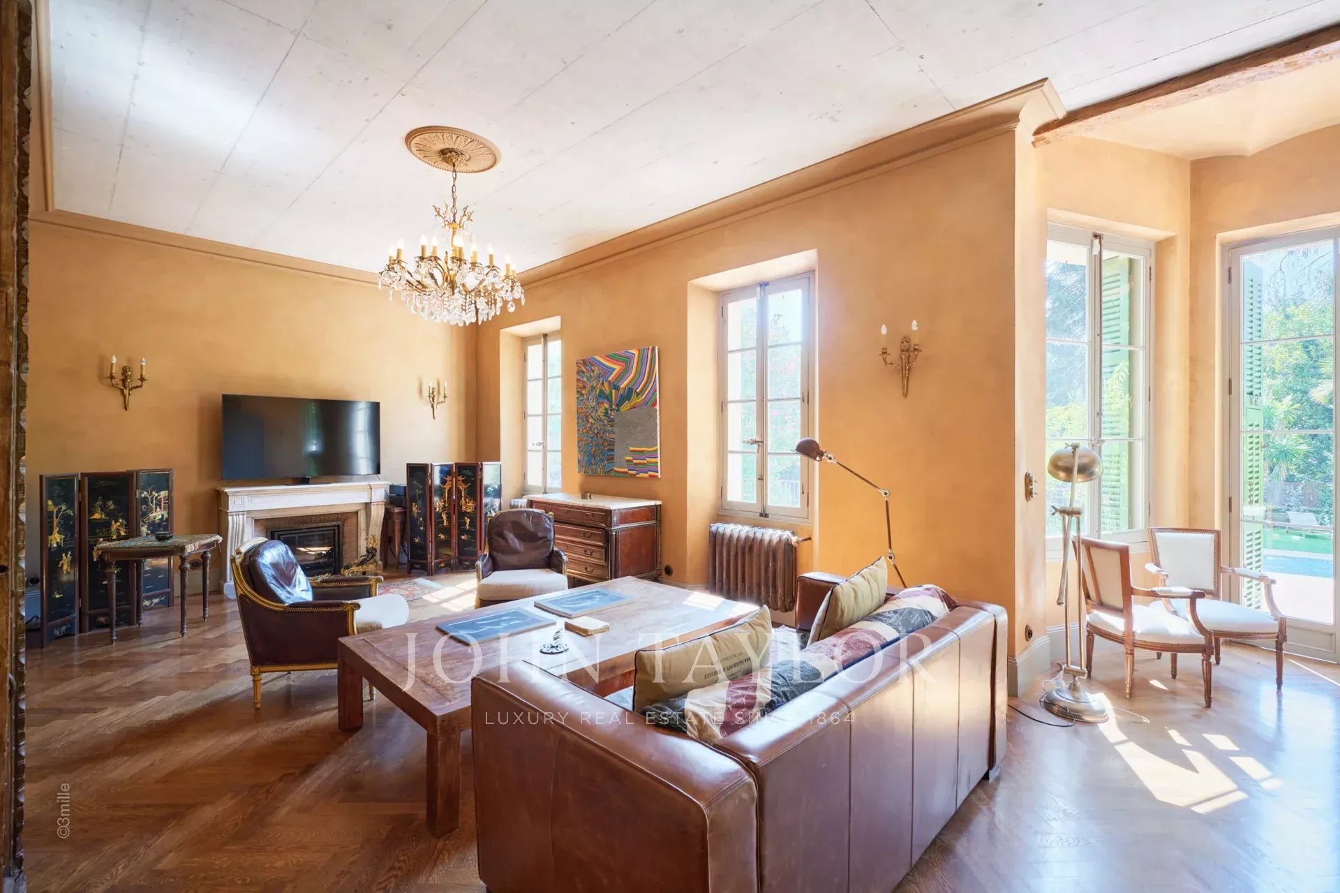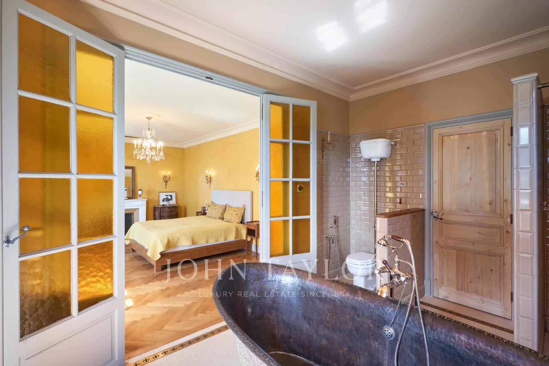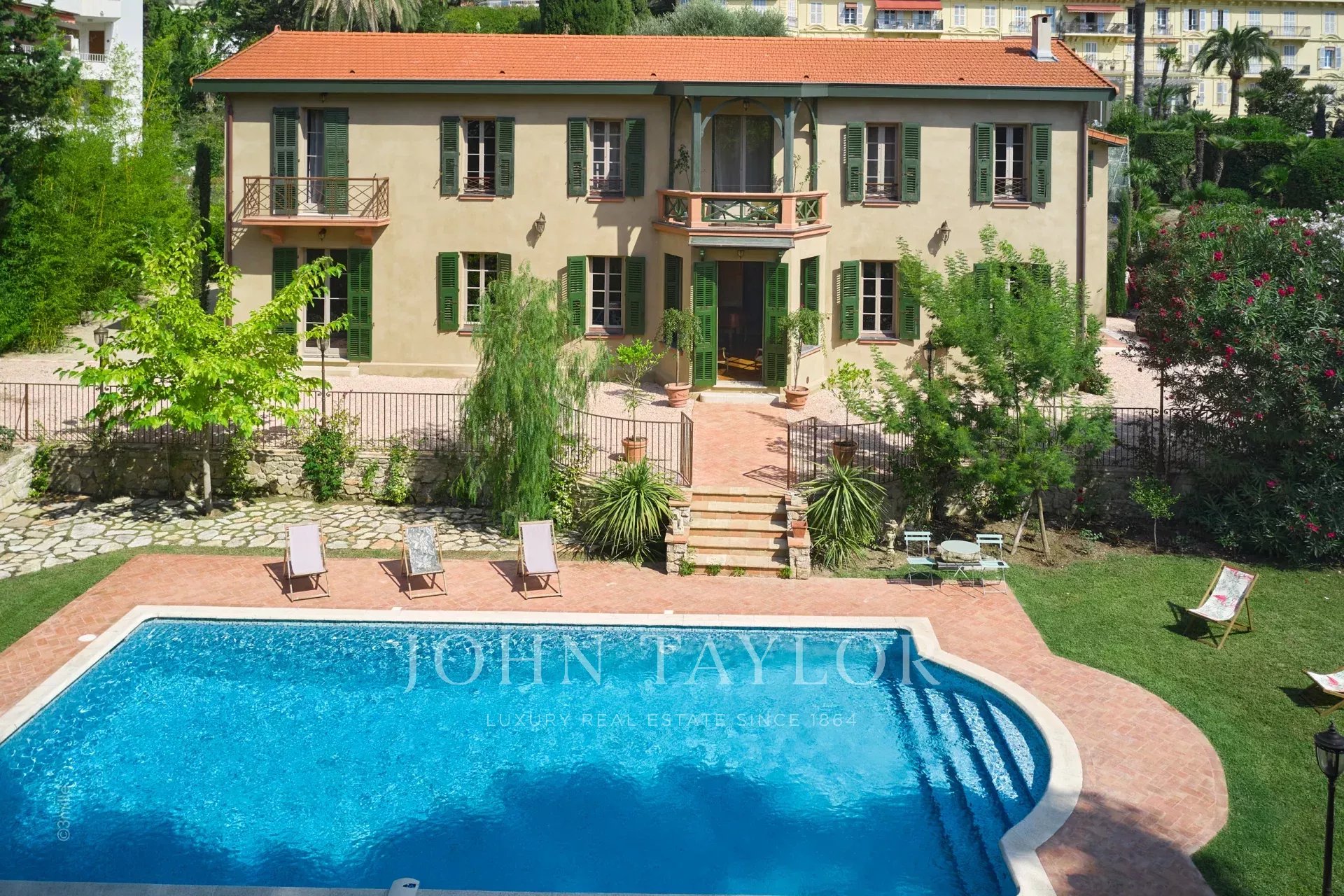 Situé dans un domaine fermé proche du centre de Cannes et des plages, ce magnifique hôtel particulier « Belle Epoque » d'environ 420 m² habitables, construit en 1875 au milieu du parc Rothschild, a fait l'objet d'une rénovation majeure derrière la façade d'époque.