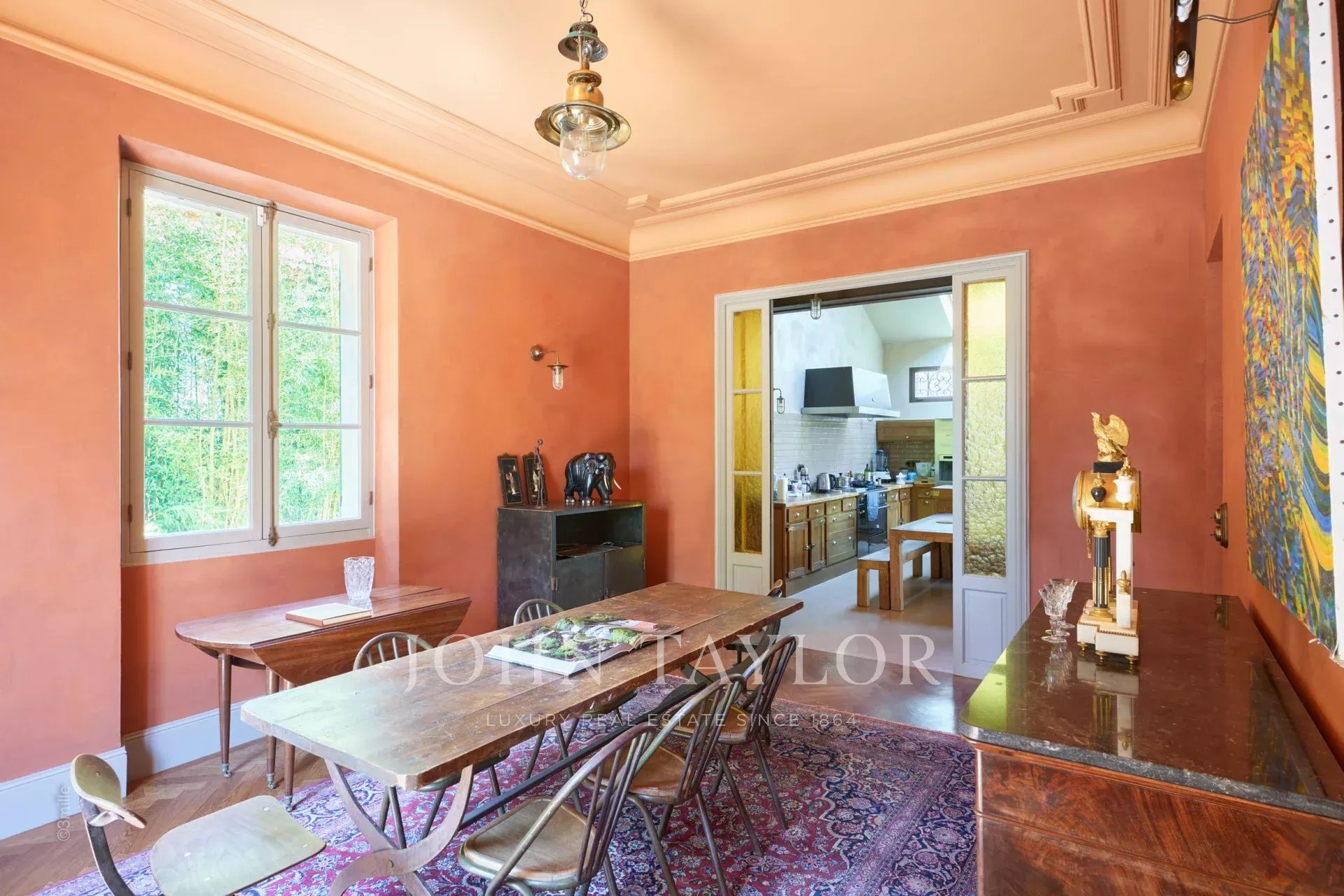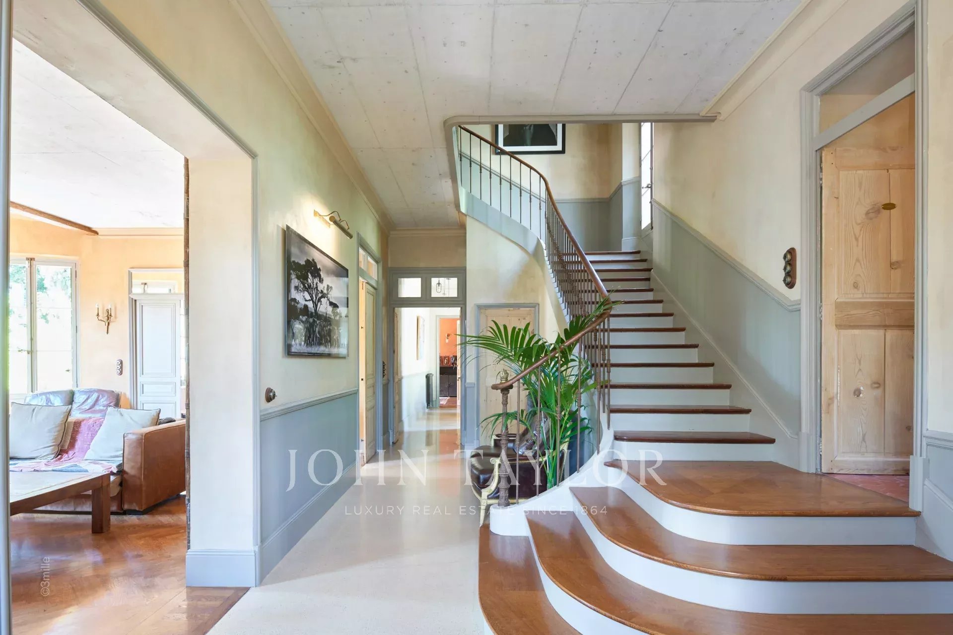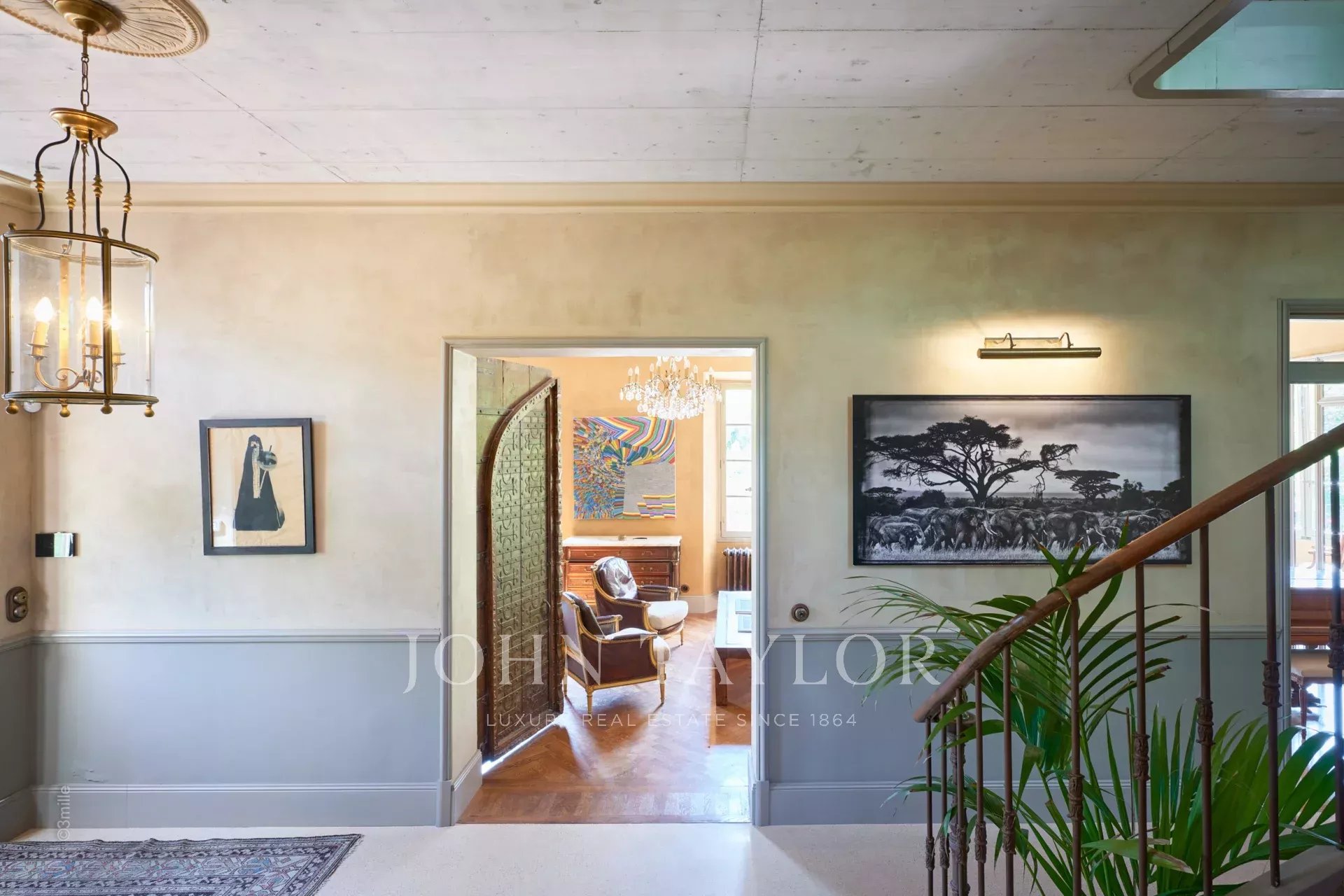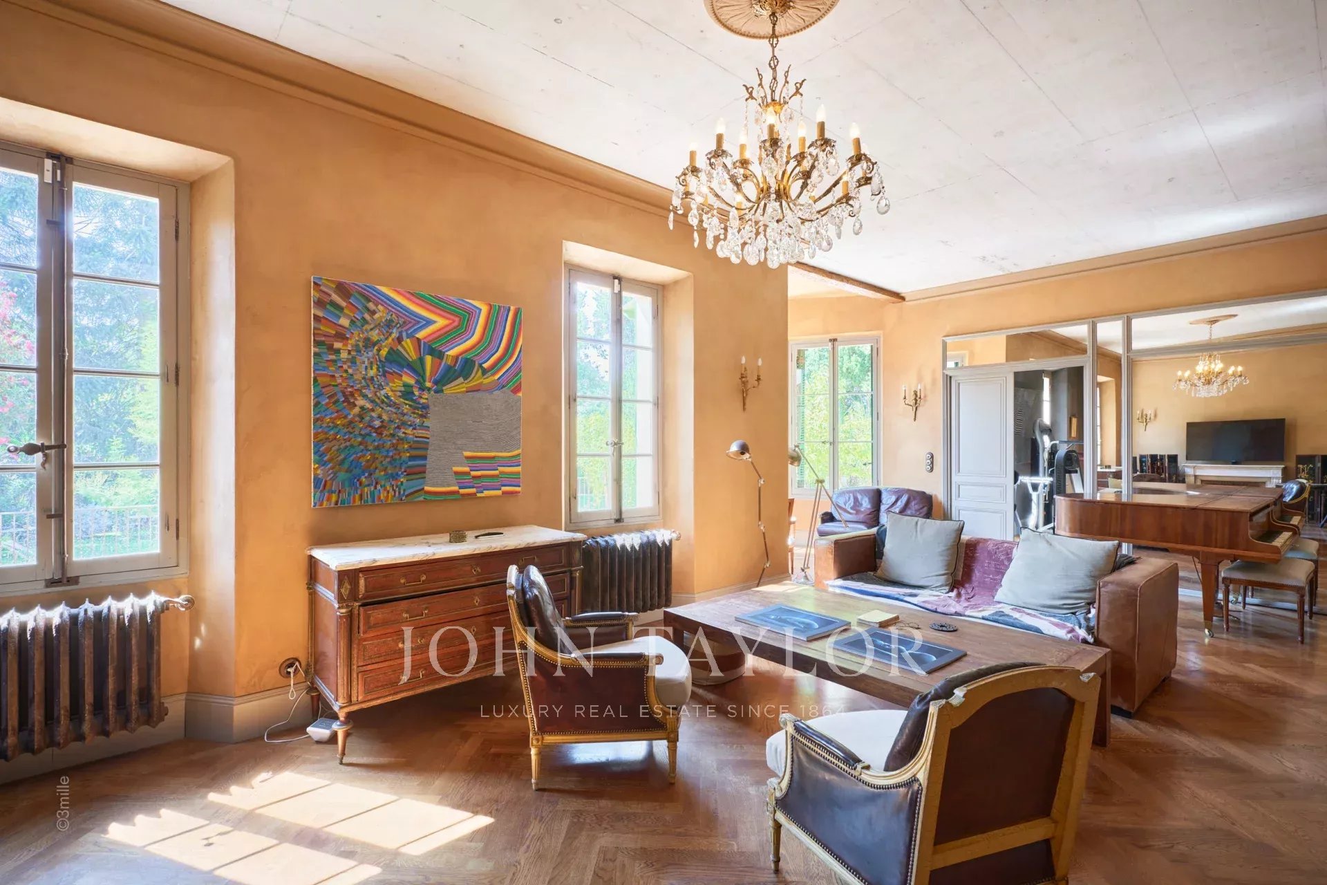 Situé dans un domaine fermé proche du centre de Cannes et des plages, ce magnifique hôtel particulier « Belle Epoque » d'environ 420 m² habitables, construit en 1875 au milieu du parc Rothschild, a fait l'objet d'une rénovation majeure derrière la façade d'époque.