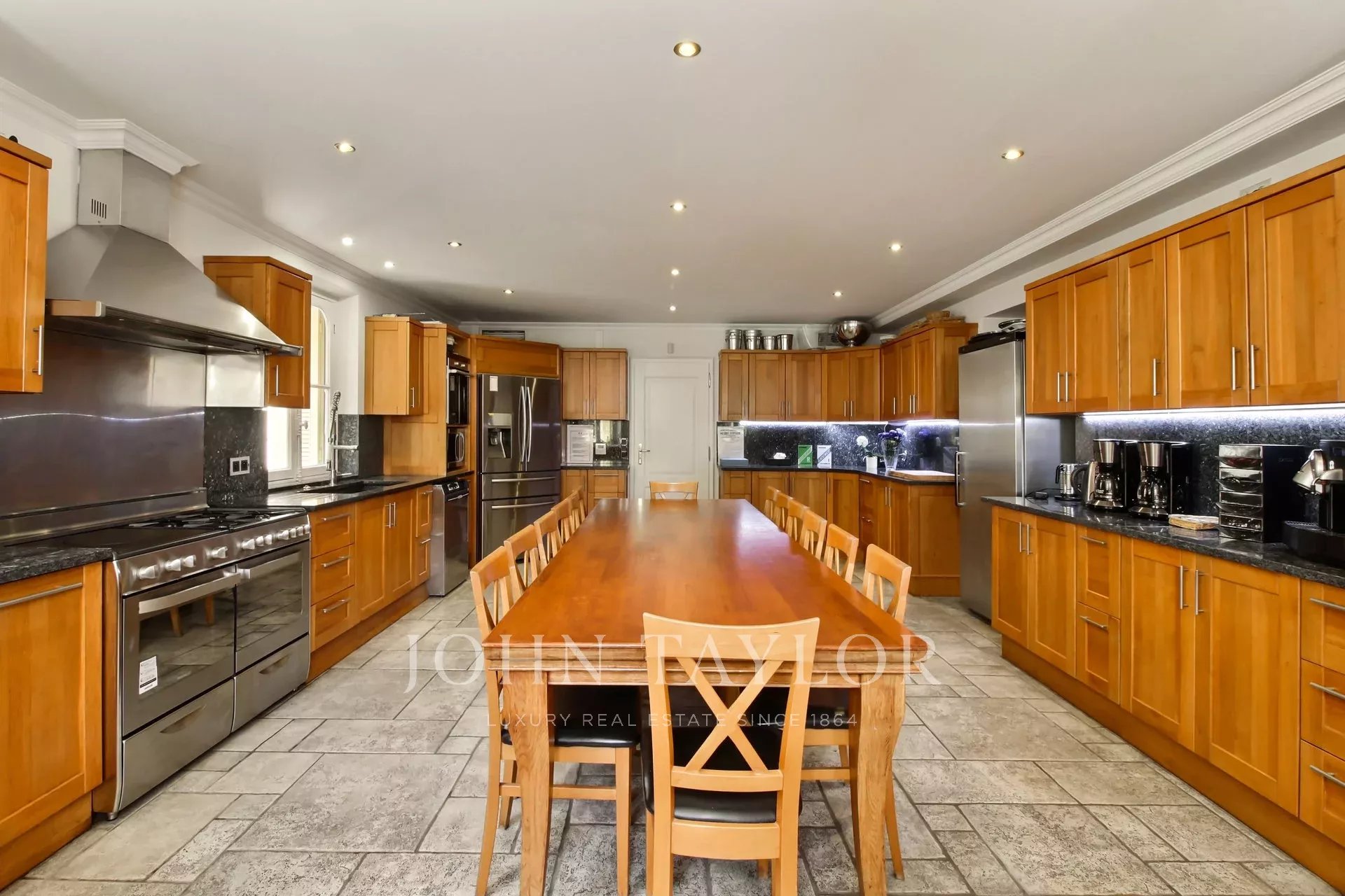 Cuisine professionnelle s'ouvrant sur terrasse