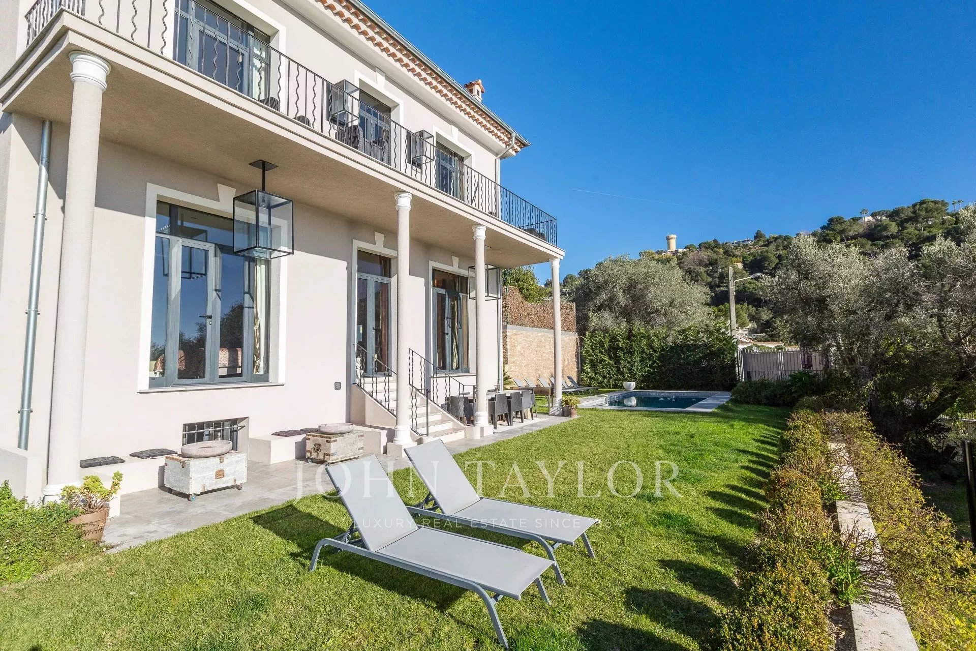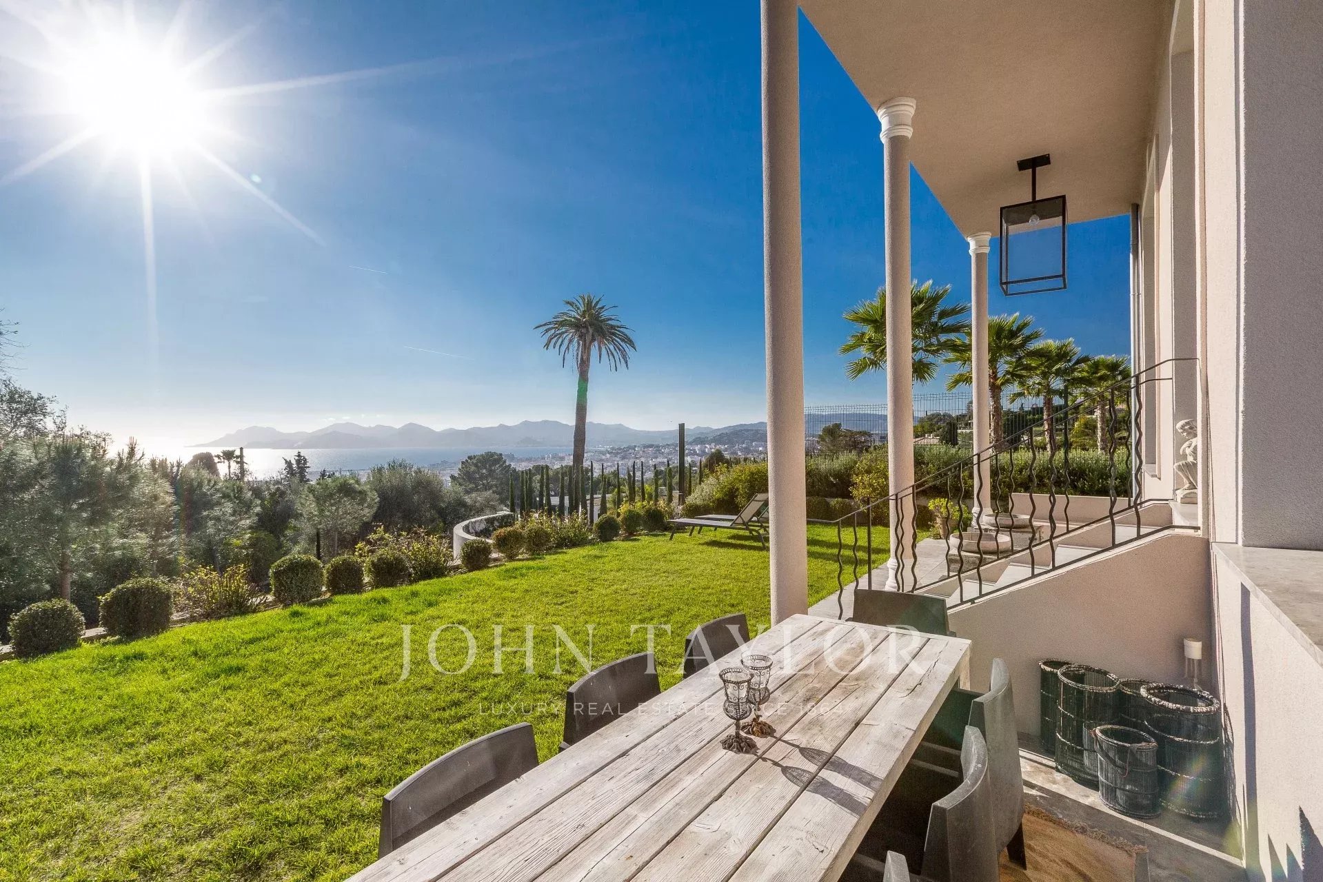 Jouissant d'une position dominante et d'une superbe vue mer, belle Maison de Maître décorée de façon contemporaine au coeur d'un jardin de 600 m2, à quelques minutes du centre ville. Belles prestations, climatisation, connexion internet.
