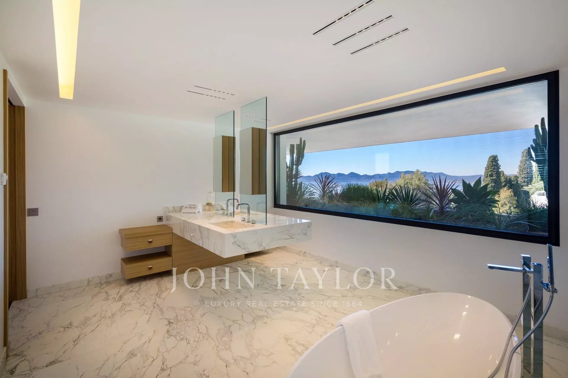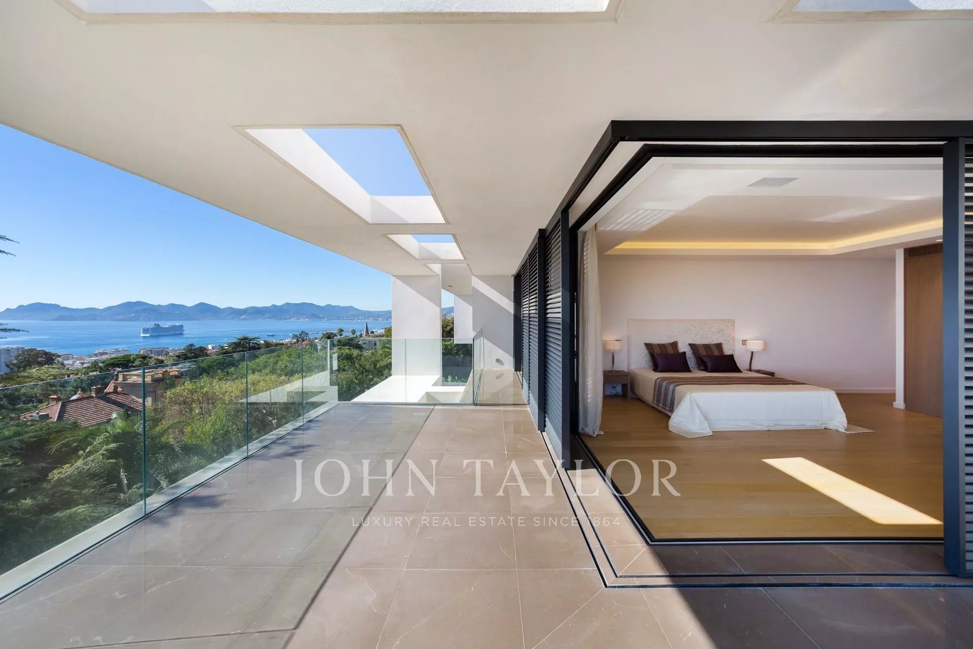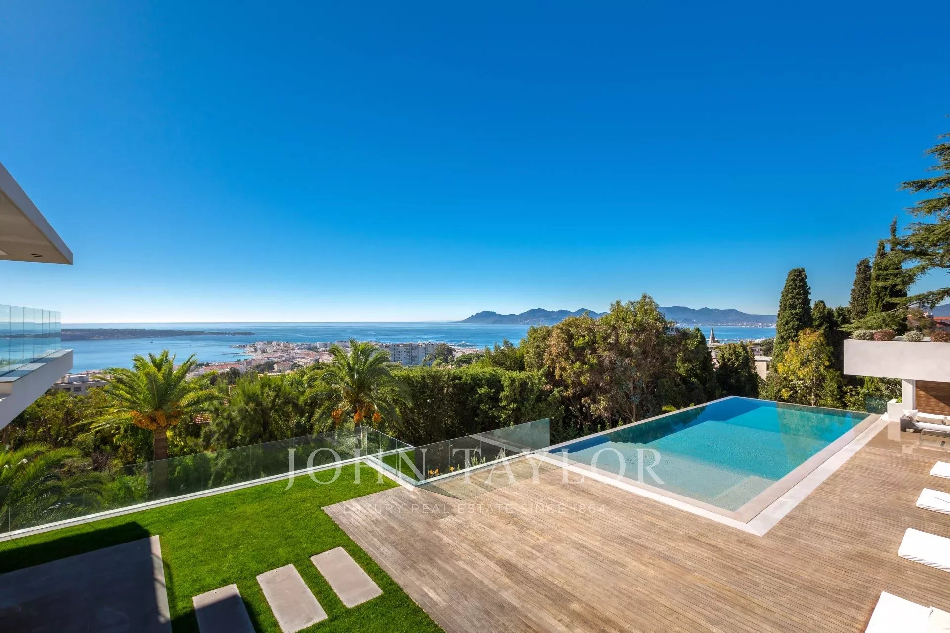 Située dans le quartier les plus prestigieux de la Californie, cette propriété neuve d'exception d'environ 1 400 m², sur un terrain d'environ 4 050 m², bénéficie une vue féerique sur la Baie de Cannes et les Iles de Lérins.