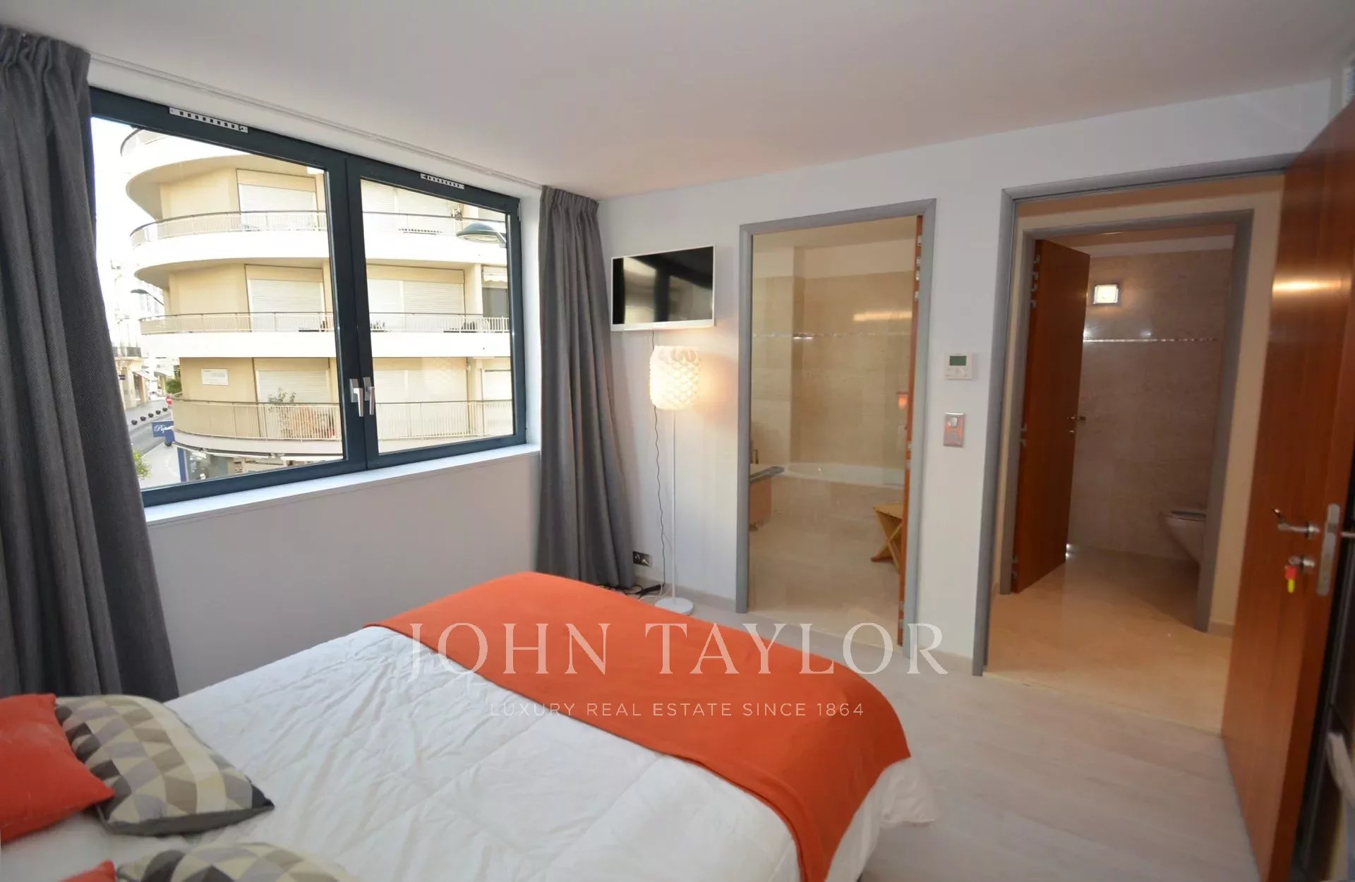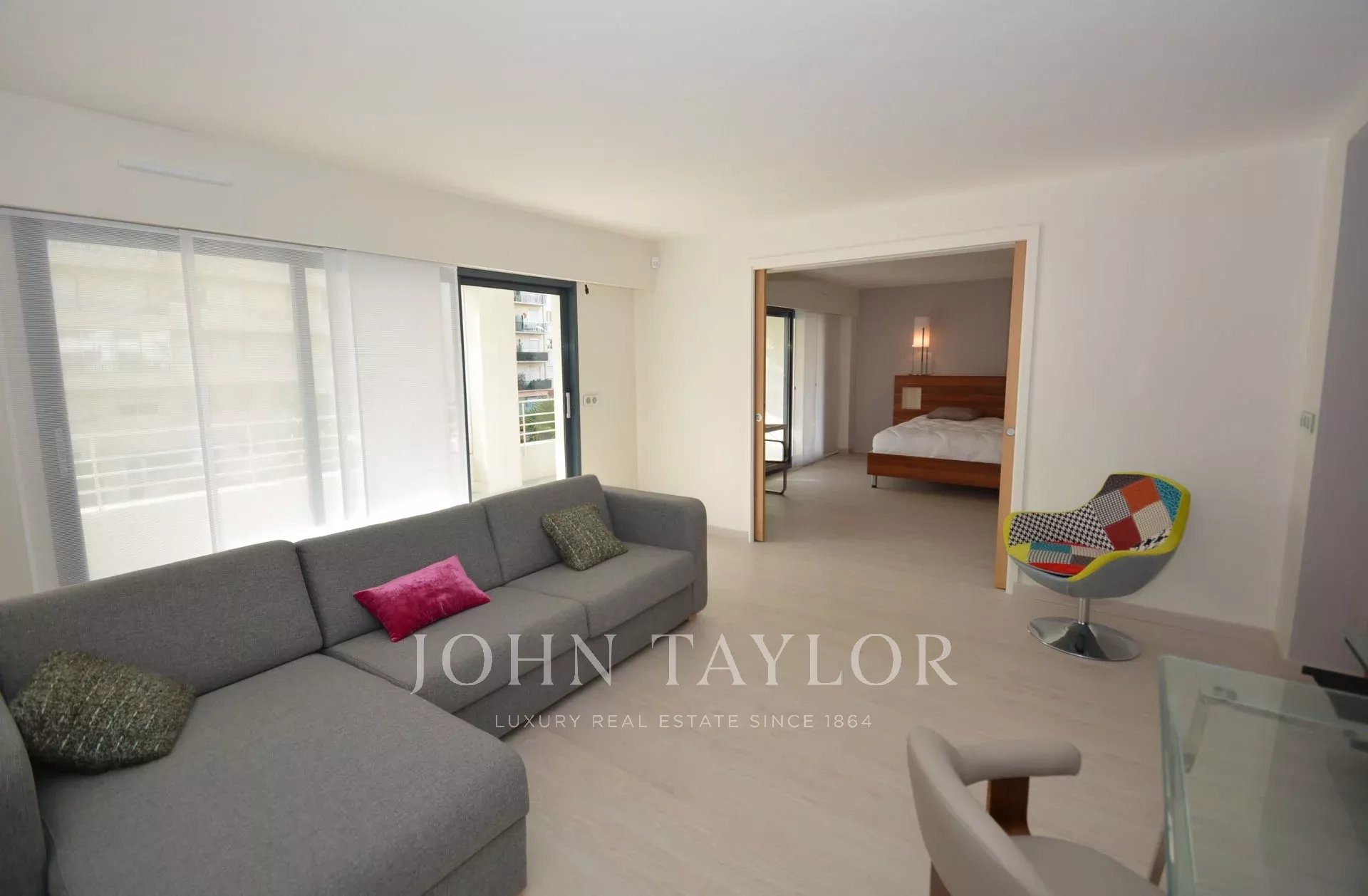 Bel appartement contemporain entièrement climatisé au 2ème étage d'une résidence centre Cannes, à proximité immédiate de la Croisette et de ses plages, proche Palais des Festivals.