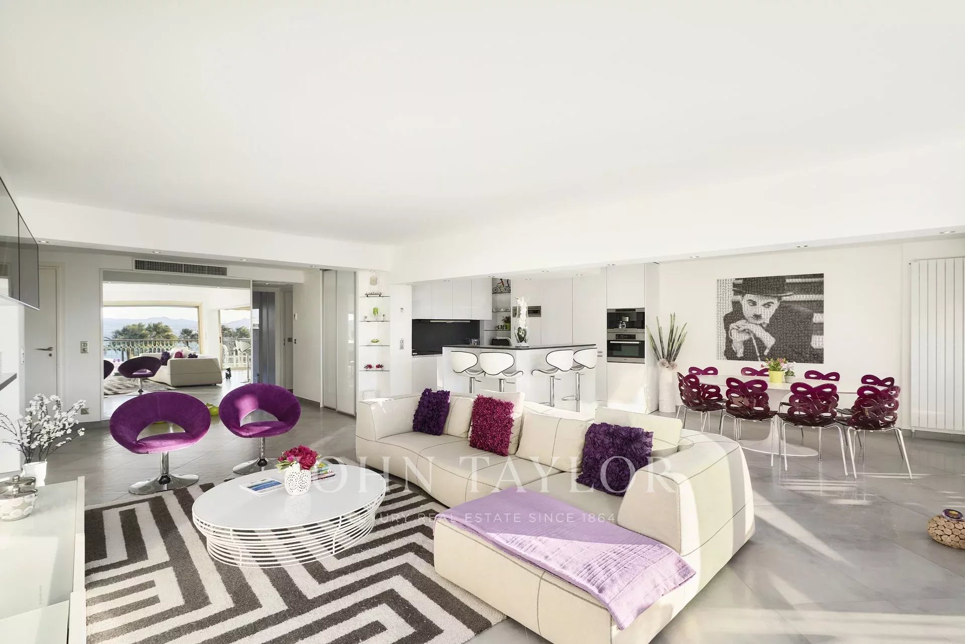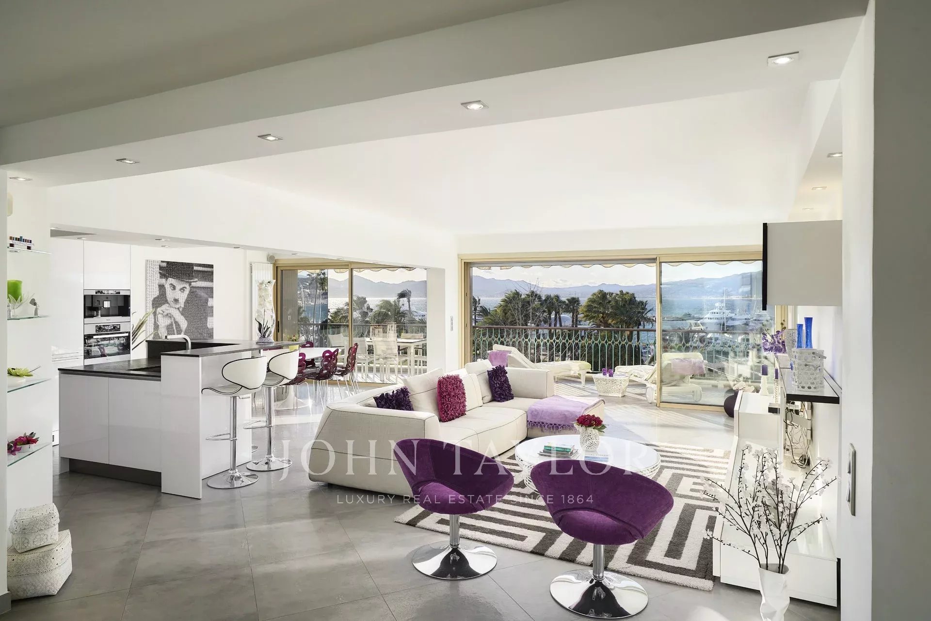Dans une des prestigieuses résidences de la Croisette, secteur Palm Beach – Pointe Croisette, bel appartement entièrement rénové d'environ 105 m2 habitables. Situé au 4ème étage, l'appartement séduit par sa décoration et ses prestations ainsi que par sa terrasse d'environ 20 m2.