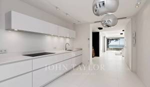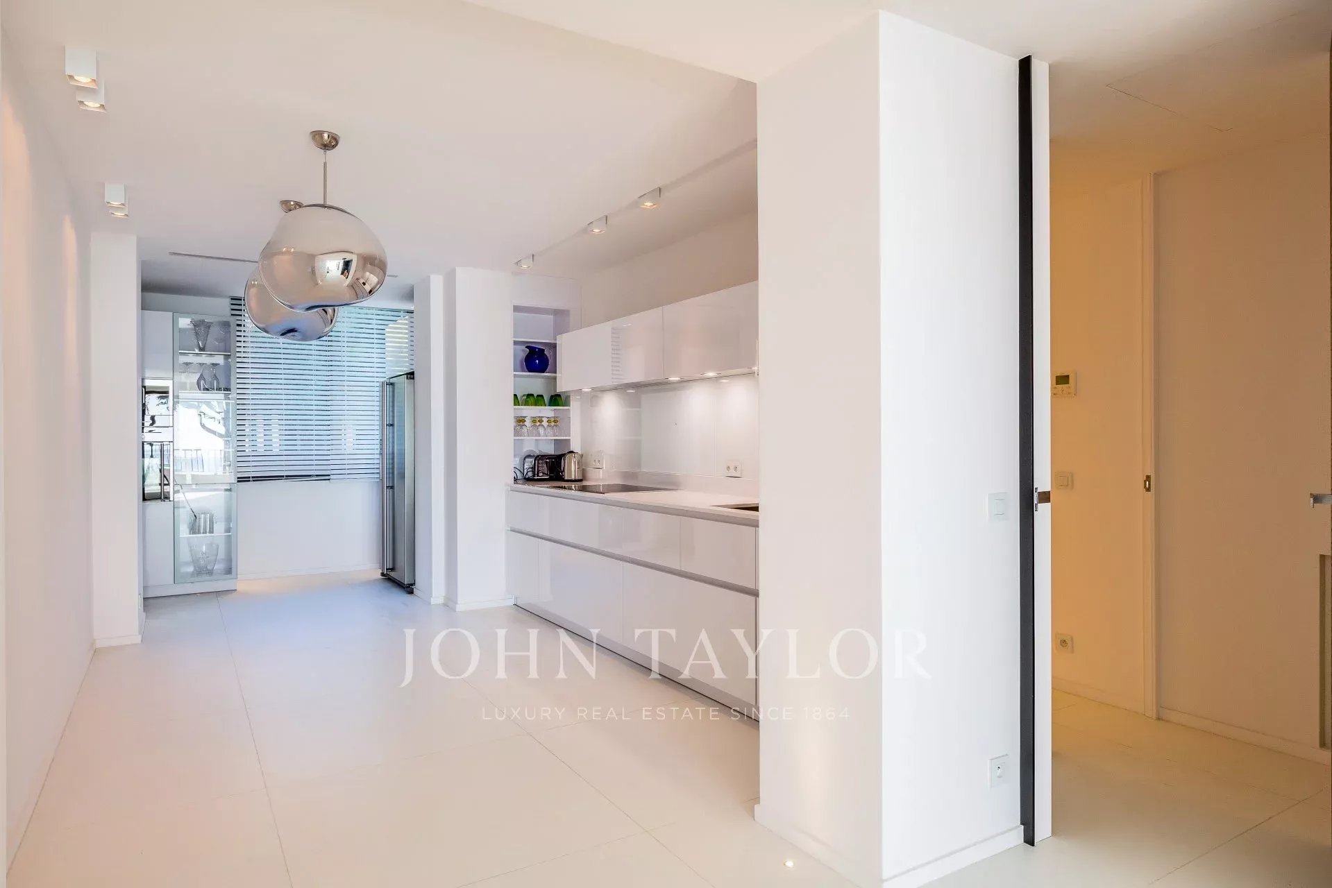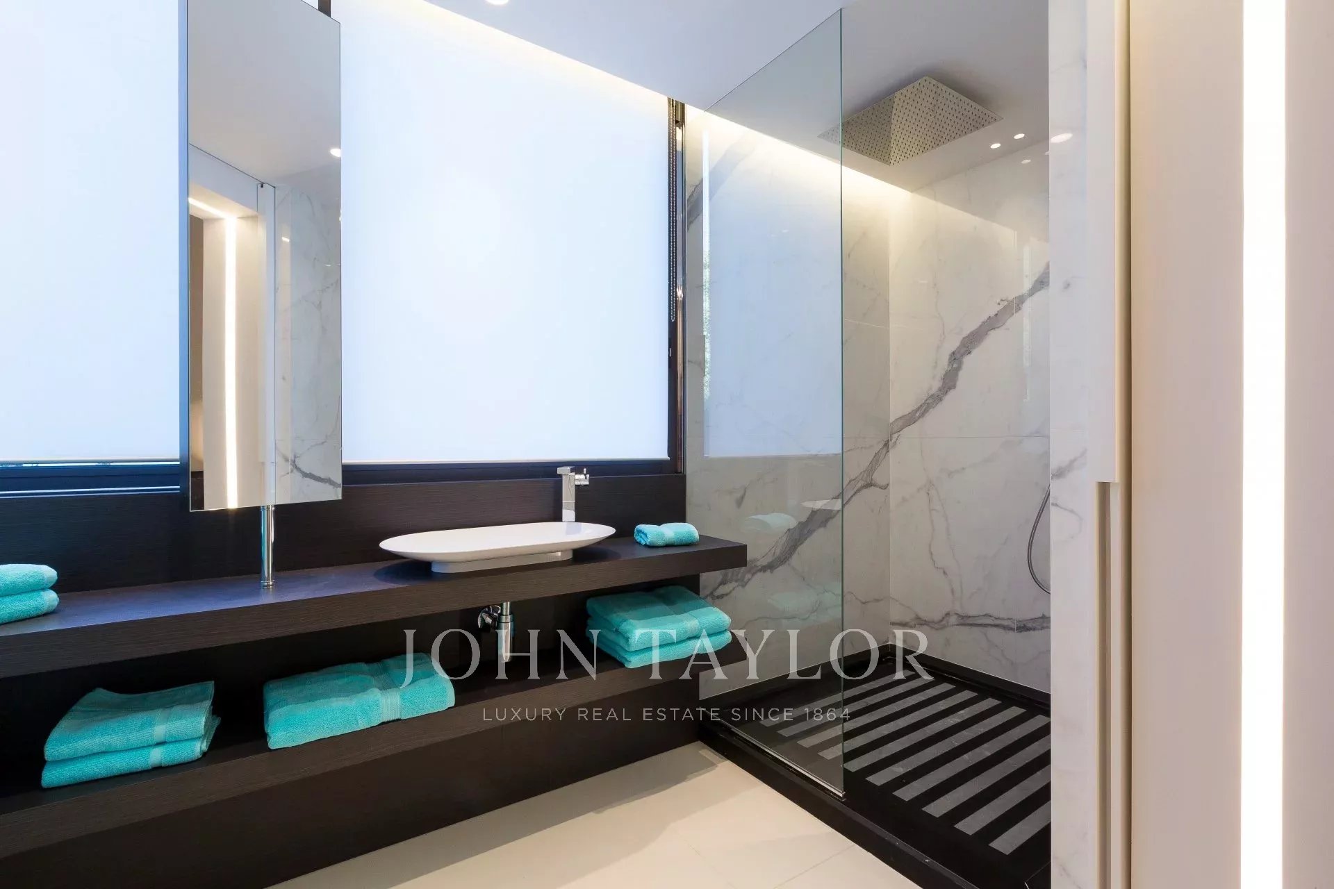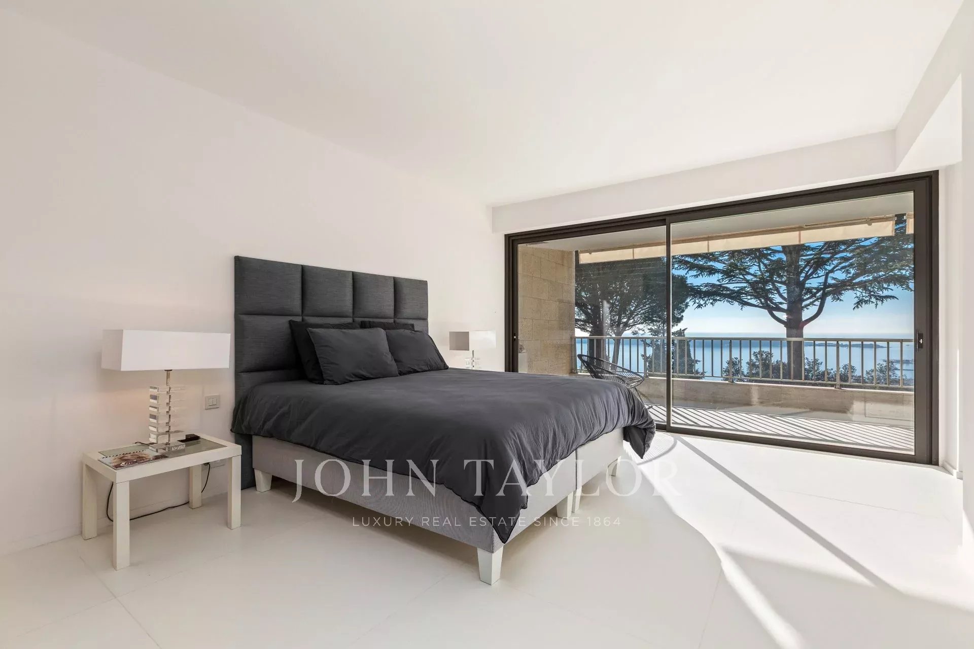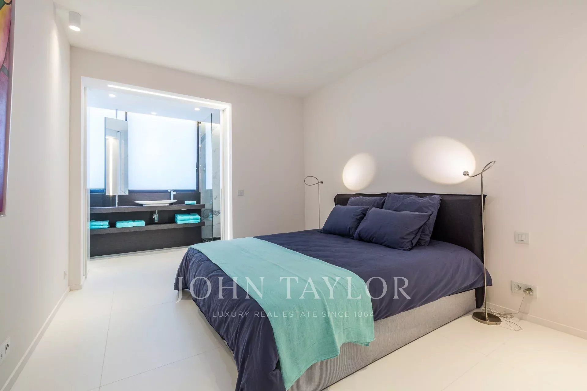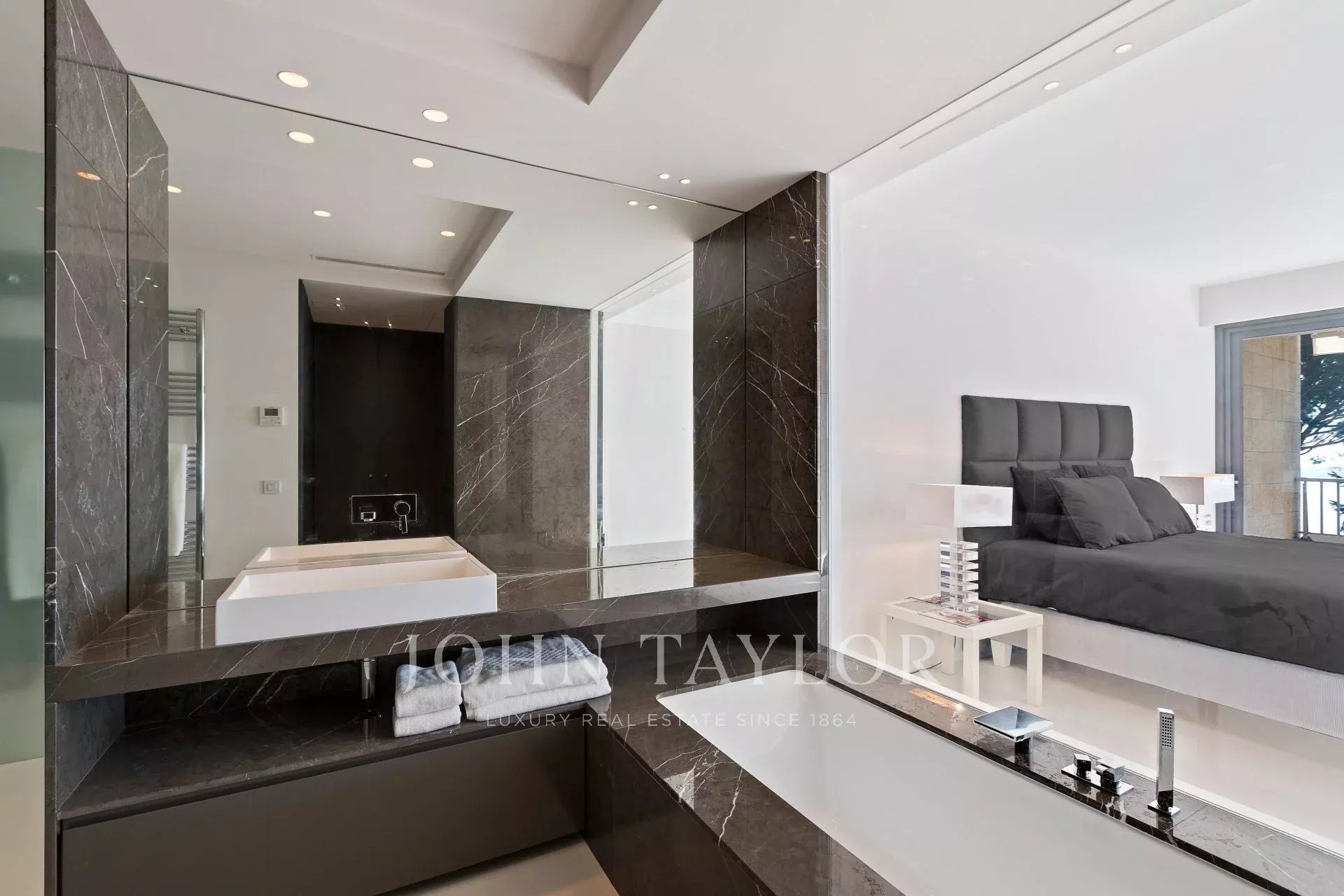 Dans une résidence de standing avec piscine, bel appartement climatisé entièrement rénové dans un style contemporain jouissant d'une vue sur la Baie de Cannes.