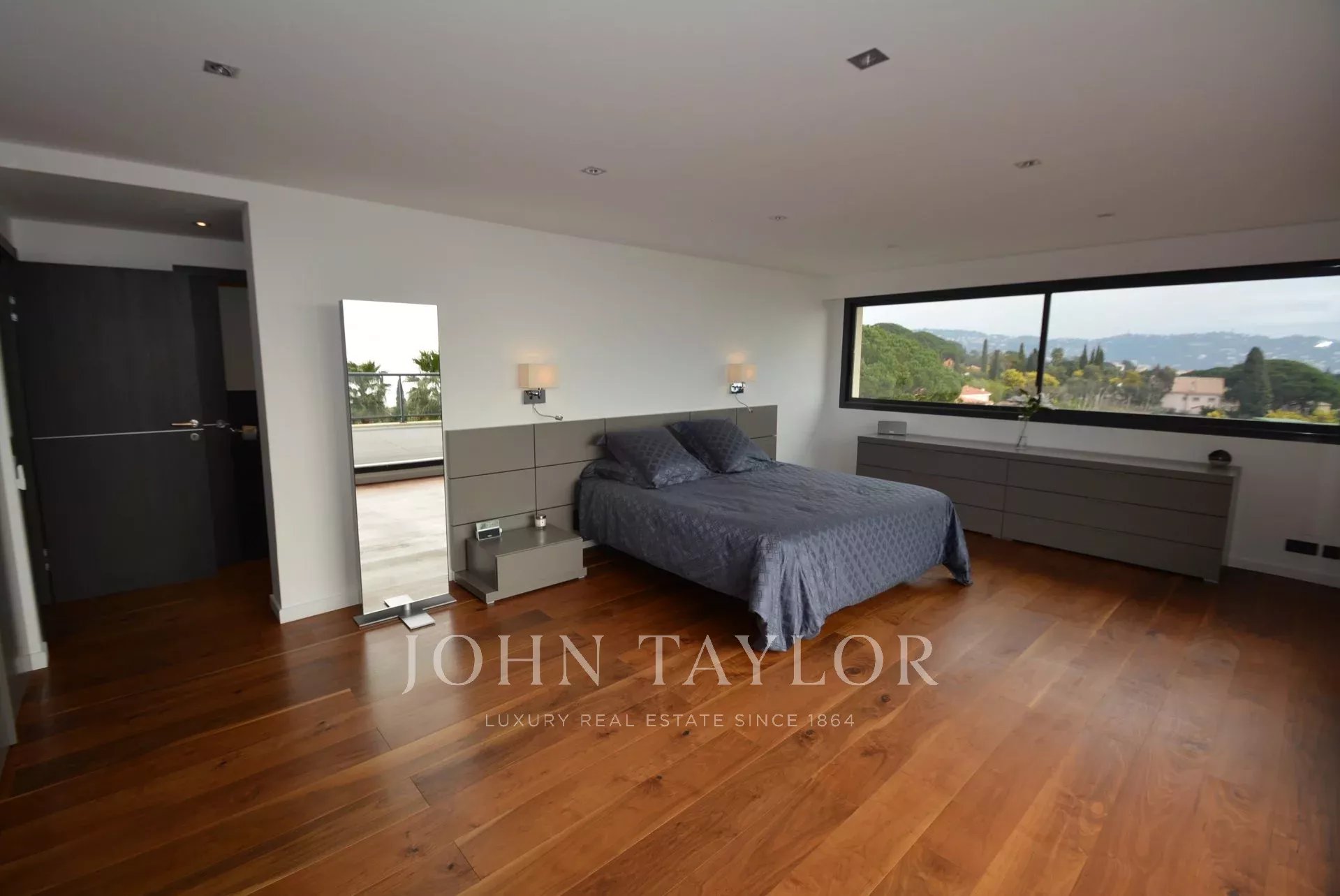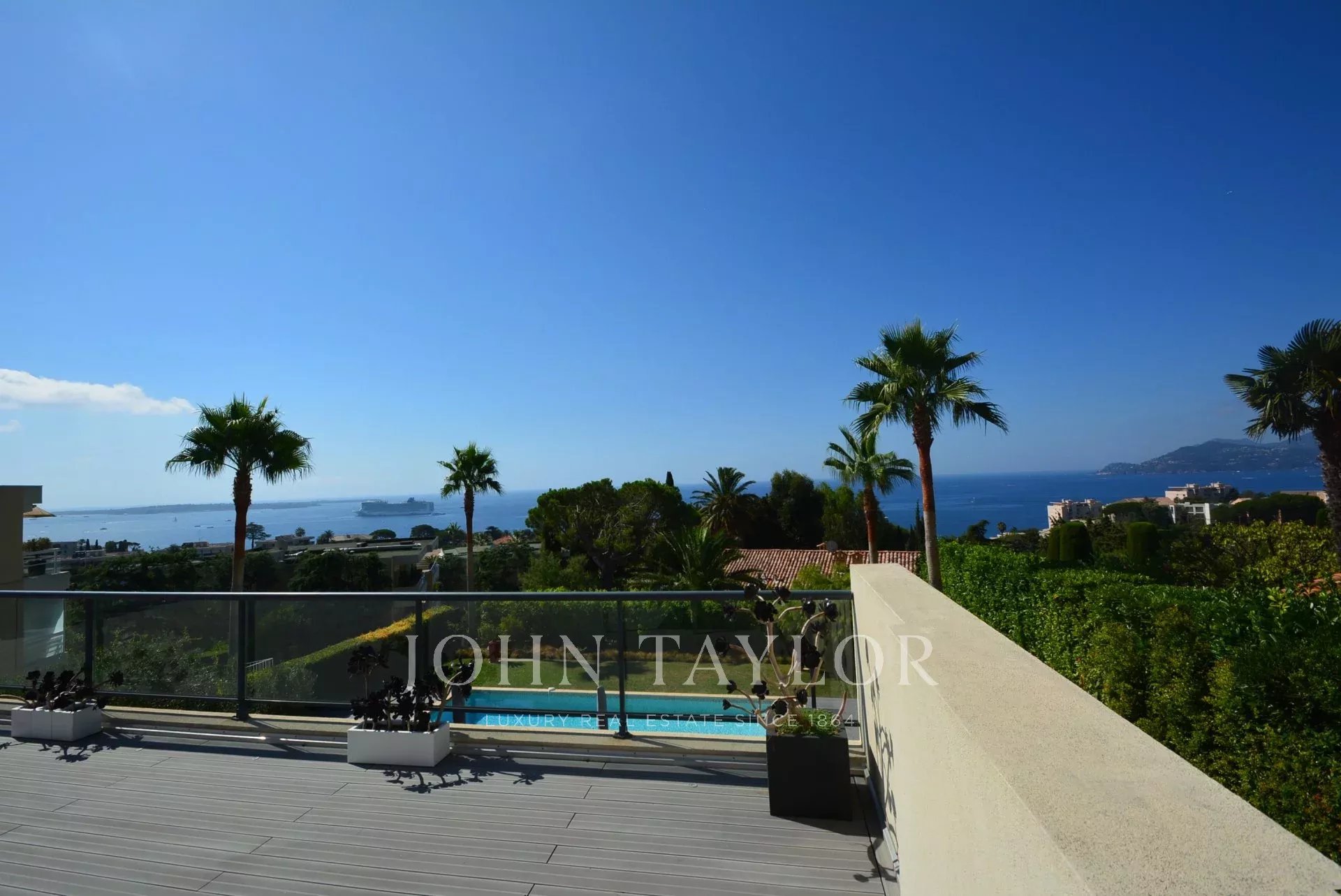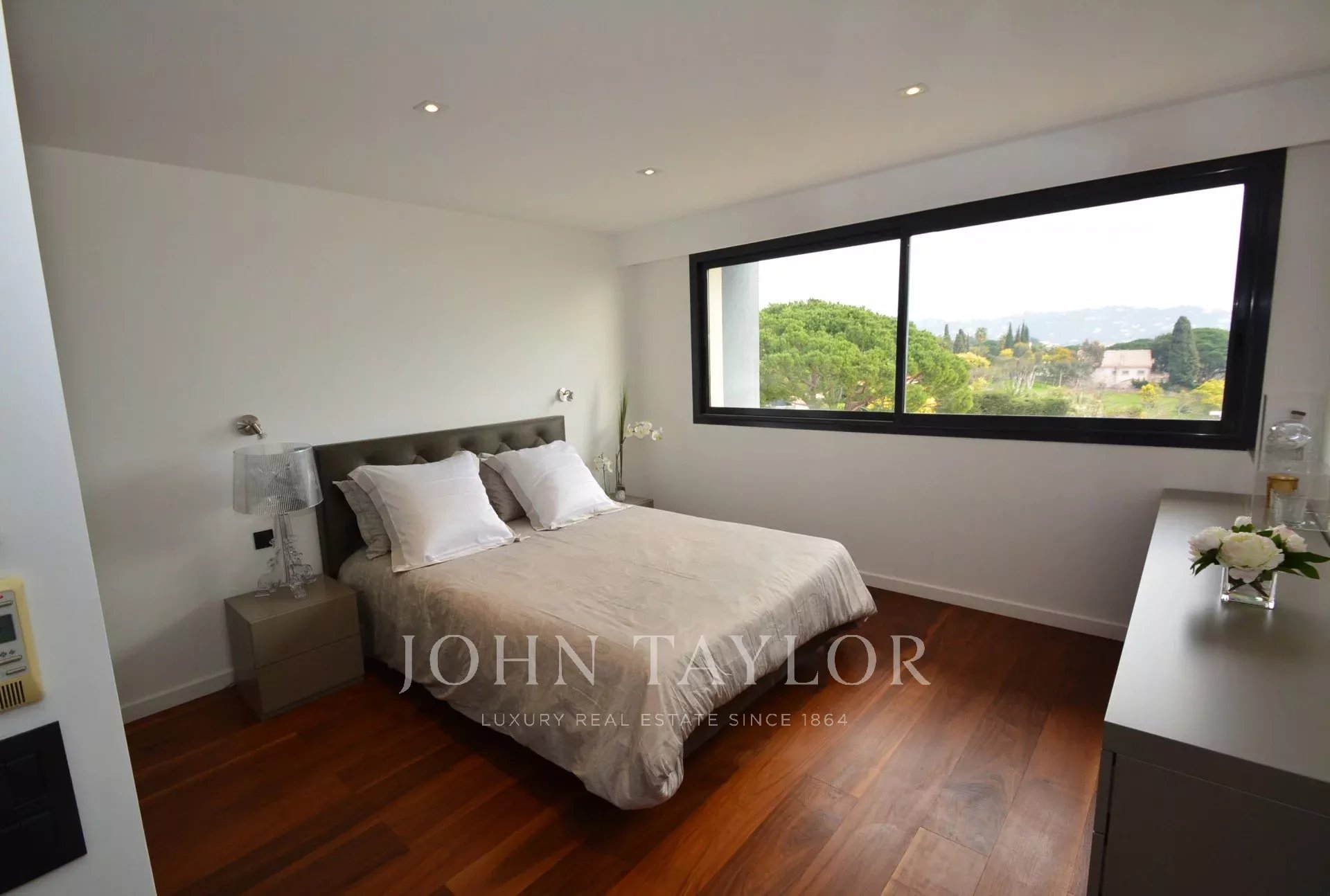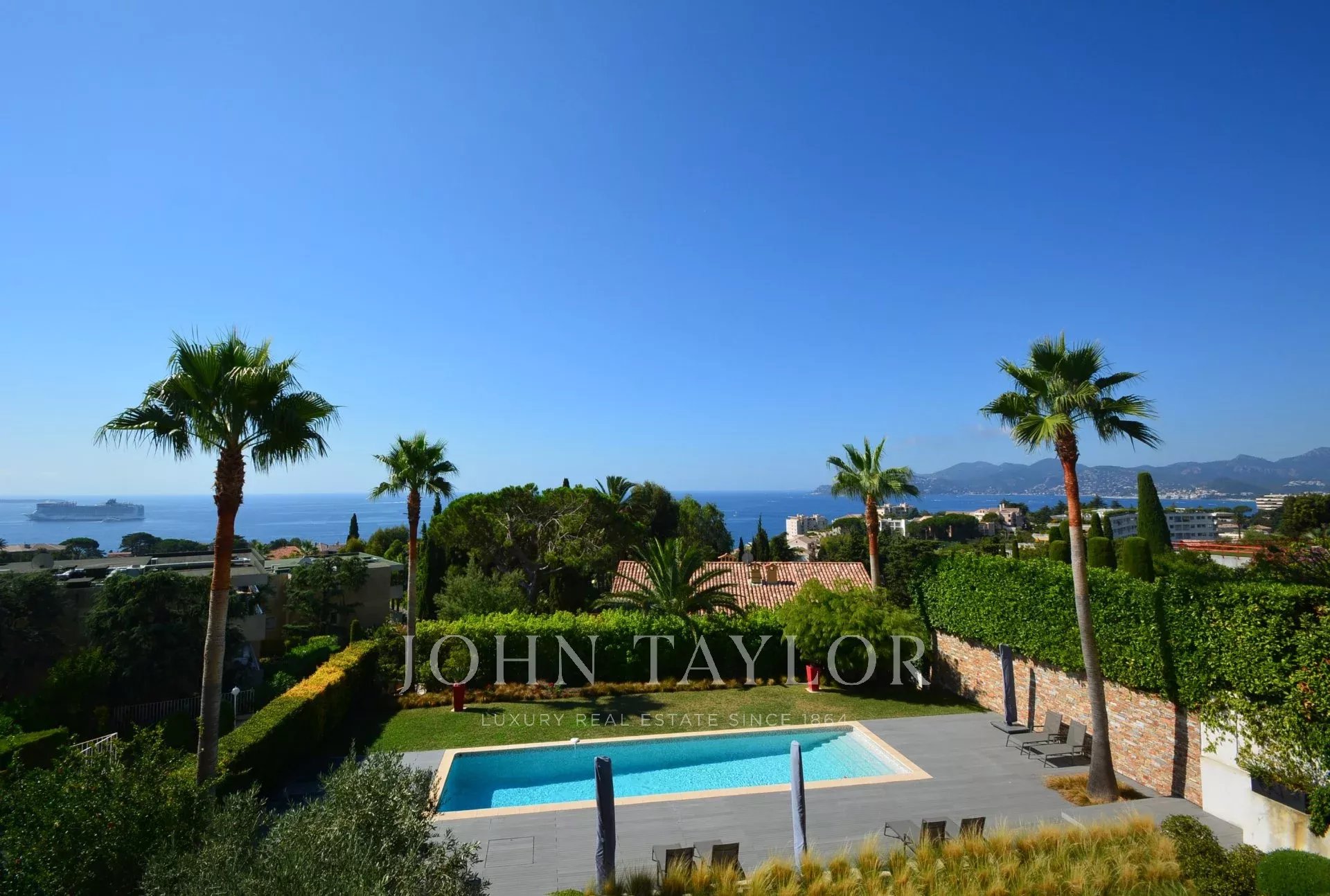 Quartier « CROIX DES GARDES », à dix minutes du centre-ville de Cannes et du Palais des Festivals, jouissant d'une magnifique vue sur la baie de Cannes, les Iles de Lérins et l'Estérel, appartement entièrement climatisé au dernier étage d’une résidence de 3 appartements avec jardin et piscine pouvant être chauffée.