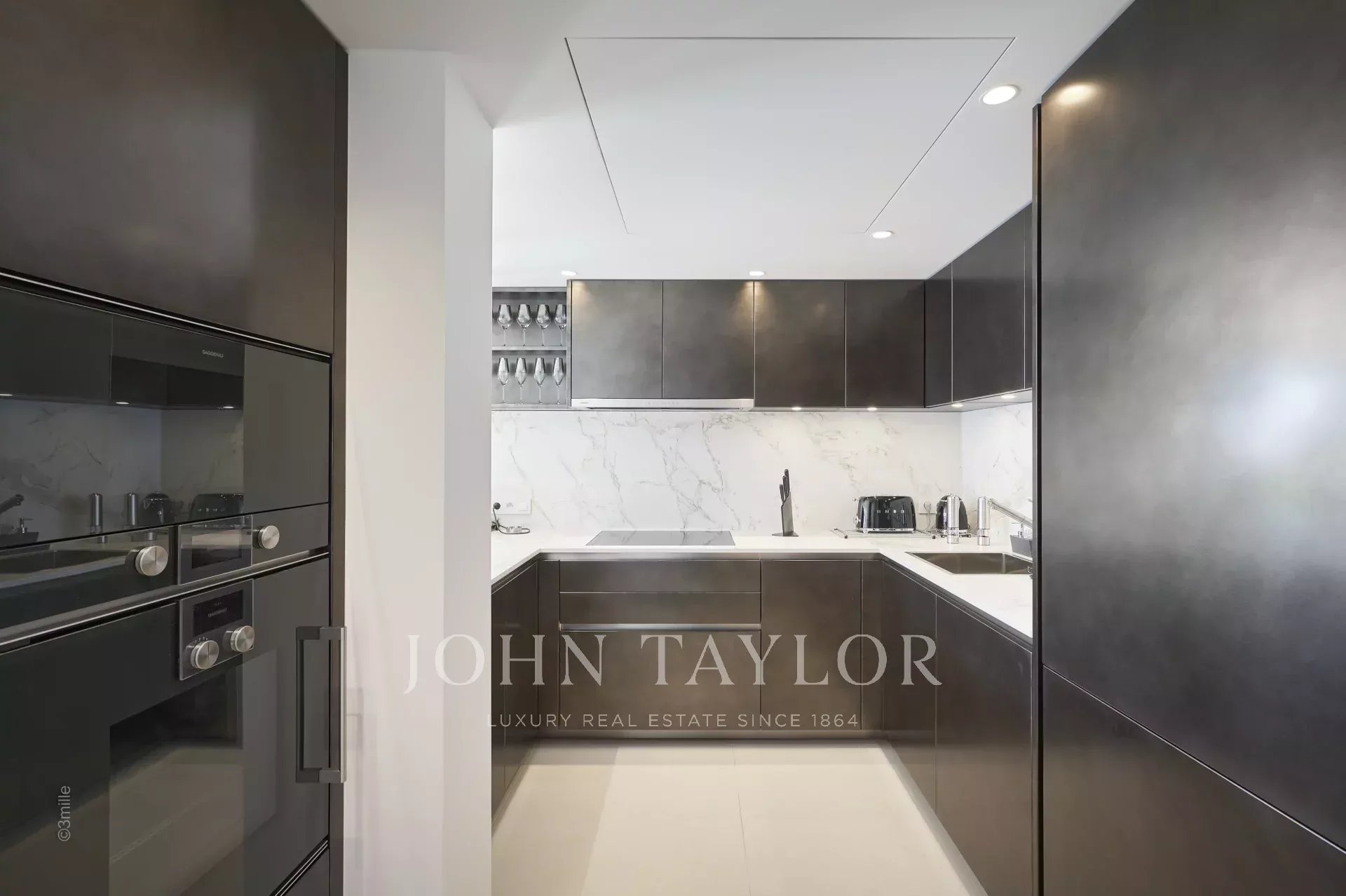 - une large et lumineuse pièce de réception avec cuisine ouverte entièrement équipée