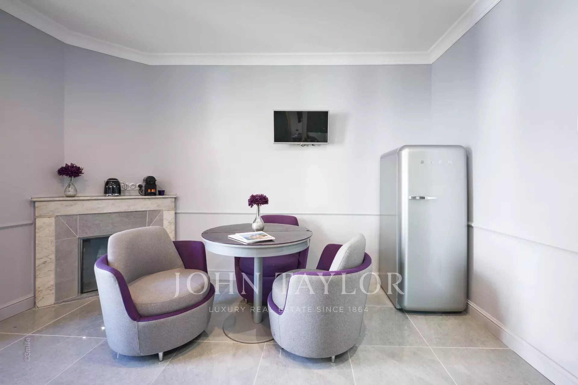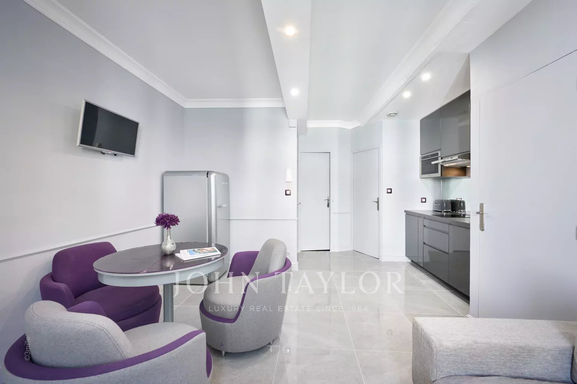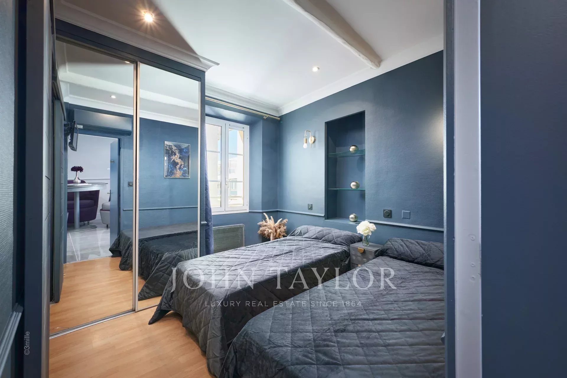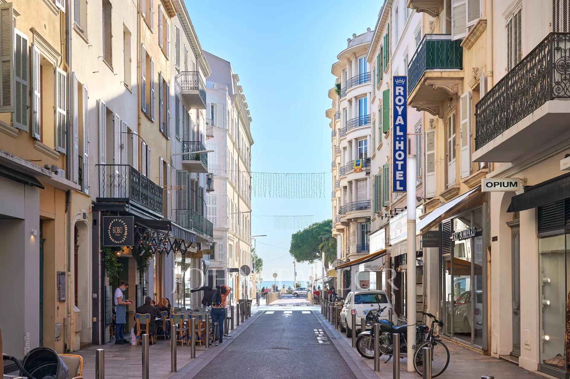 Au 3ème étage d’un immeuble bourgeois, idéalement situé, à deux pas du Boulevard de la Croisette, de ses plages et du Palais des Festivals, charmant appartement climatisé de 40 m2 entièrement et très joliment rénové.