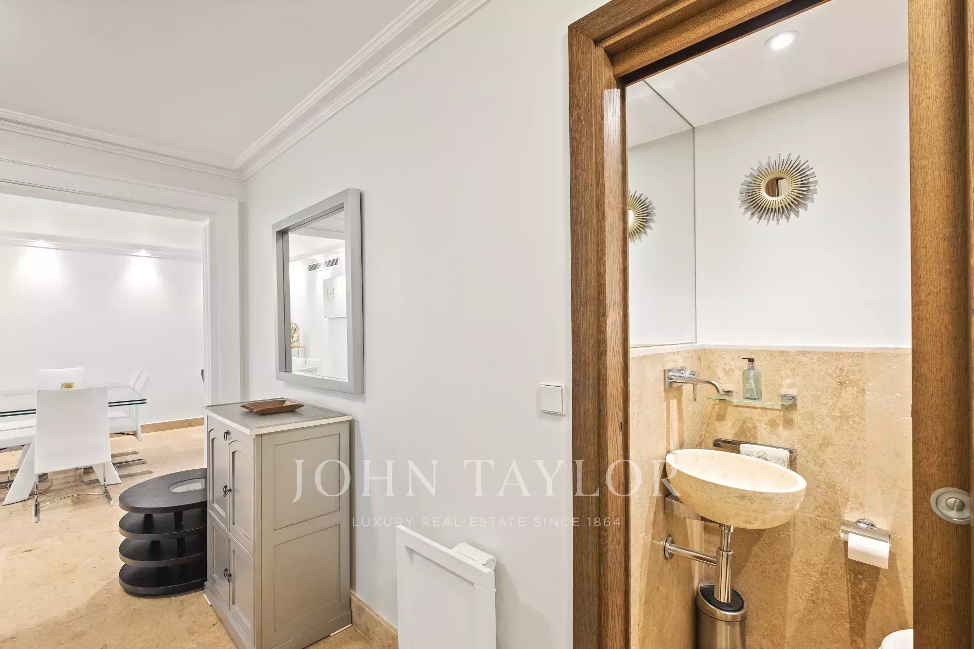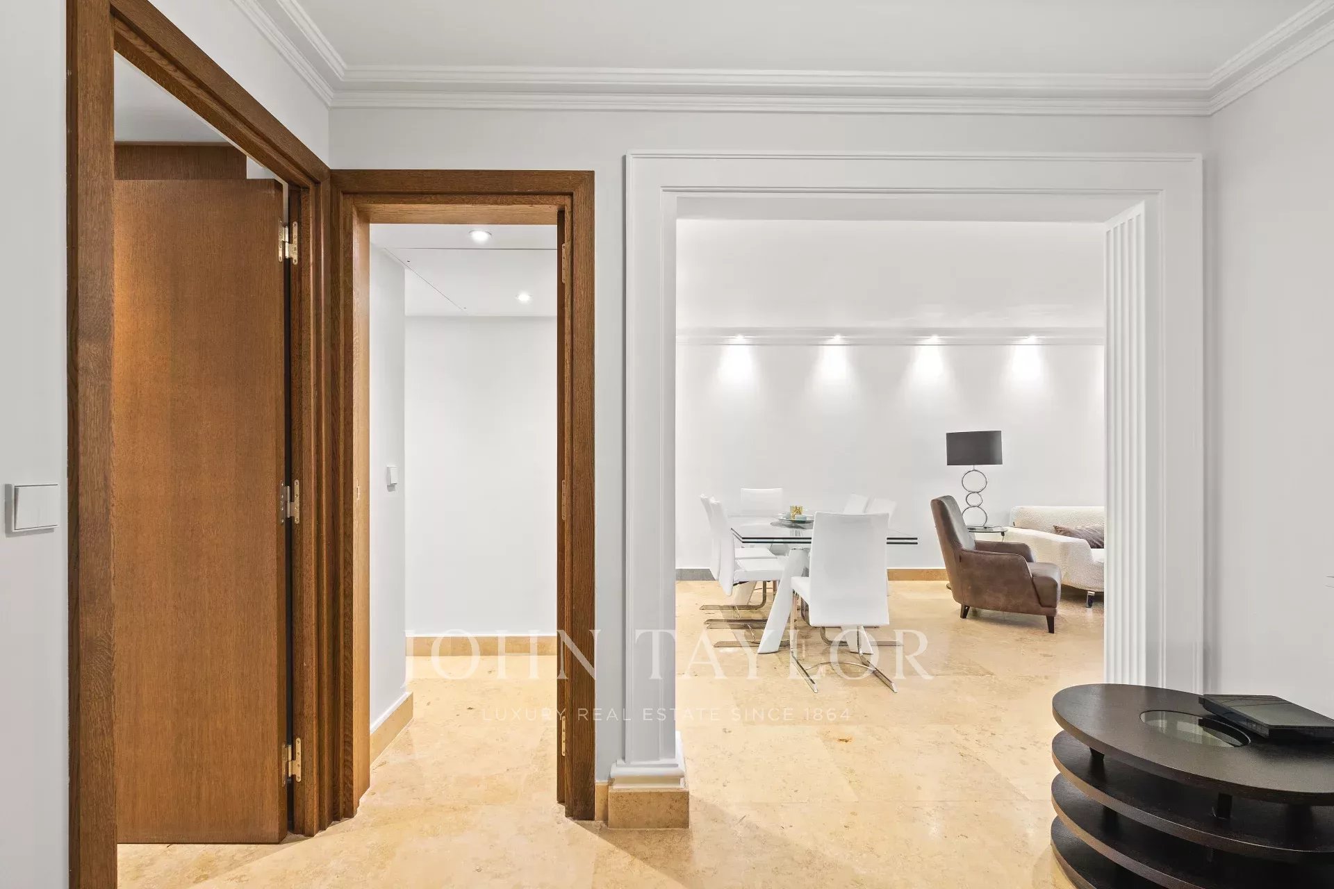 Idéalement situé au cœur du centre-ville, à deux pas de la Croisette et de la rue d’Antibes, bel appartement de 3 pièces principales entièrement climatisé au 4ème étage d’une résidence de standing sécurisée.