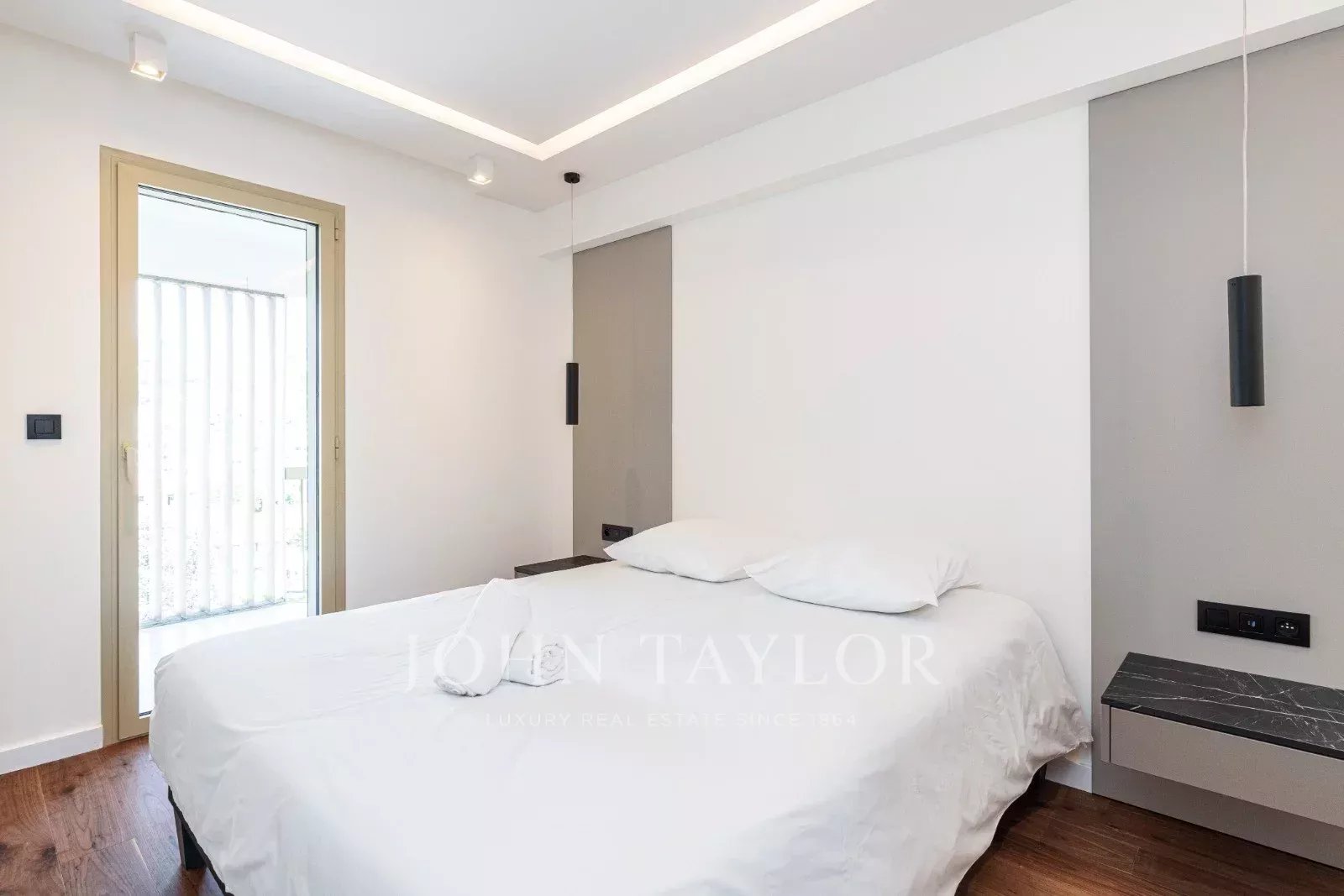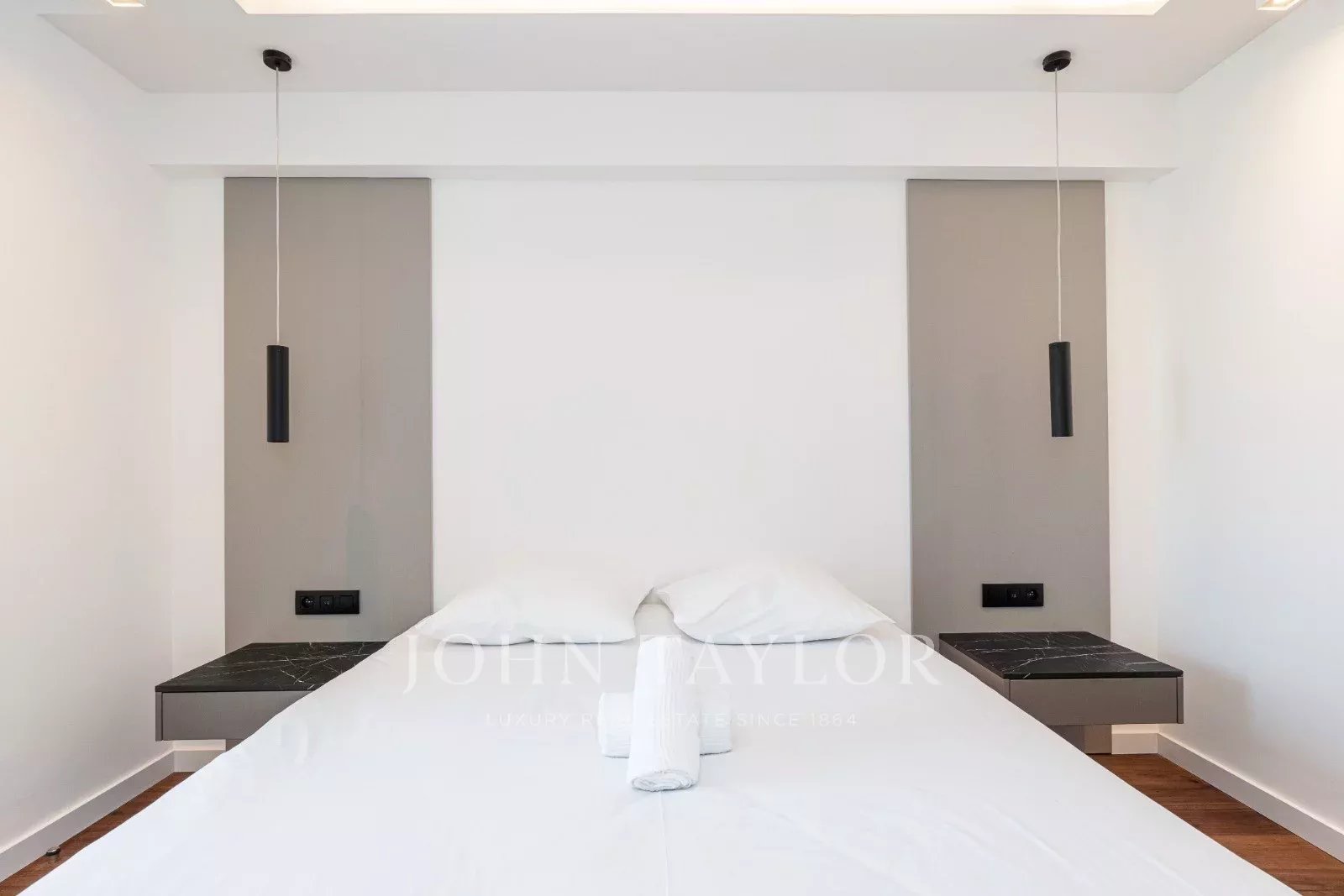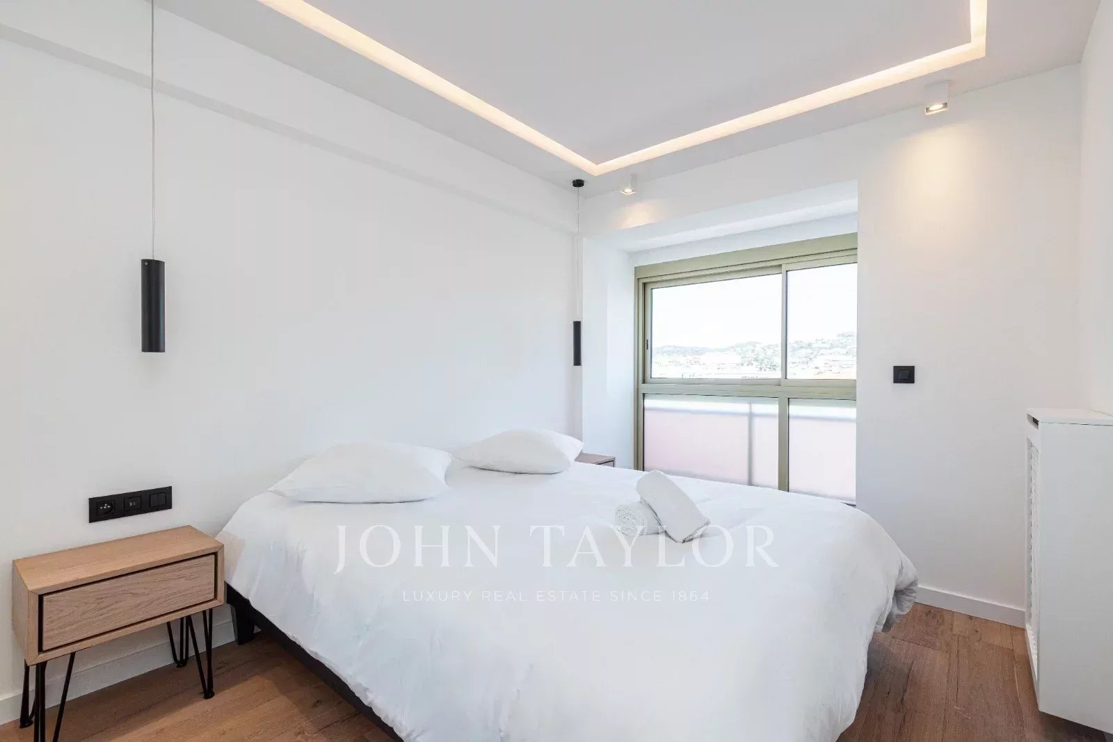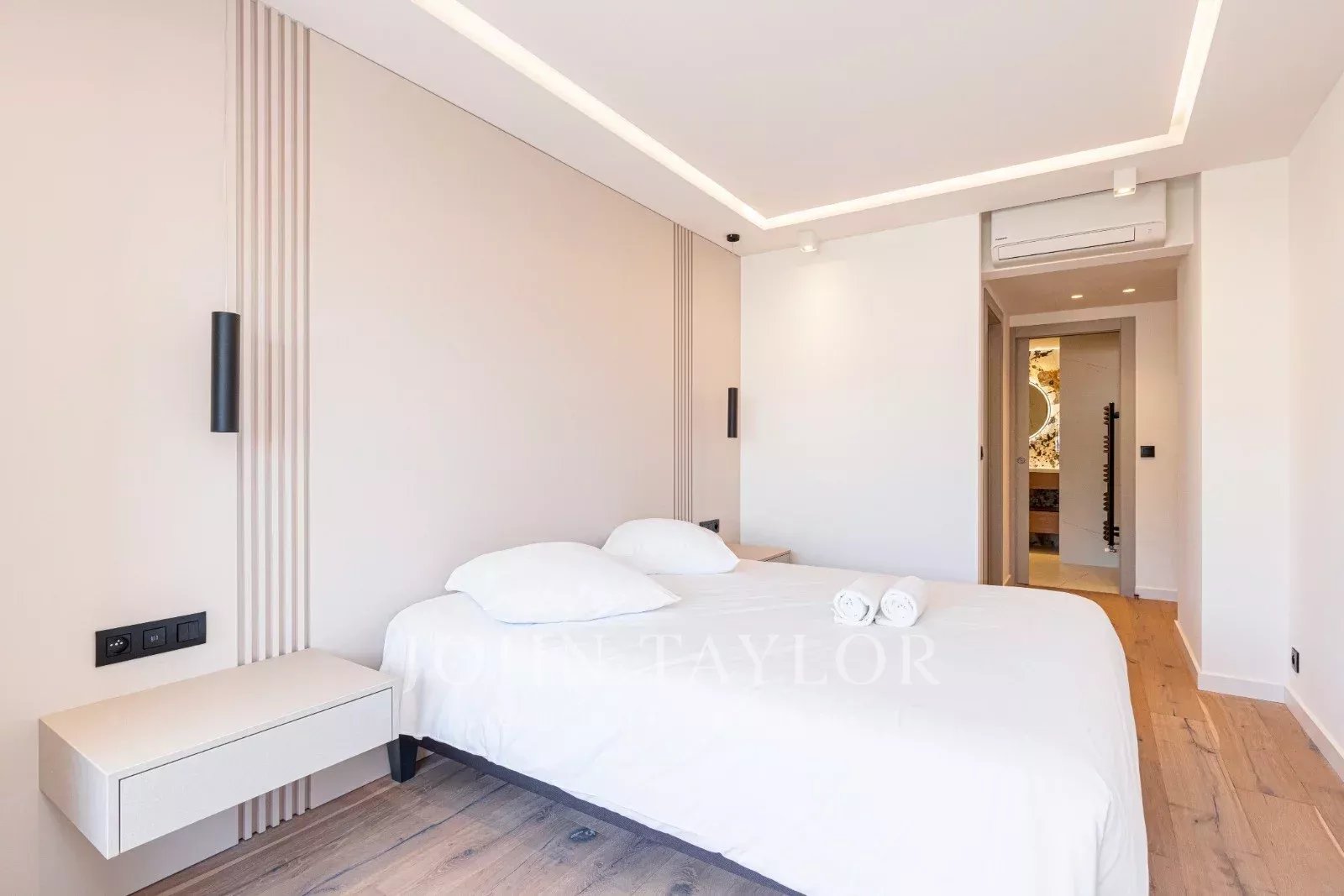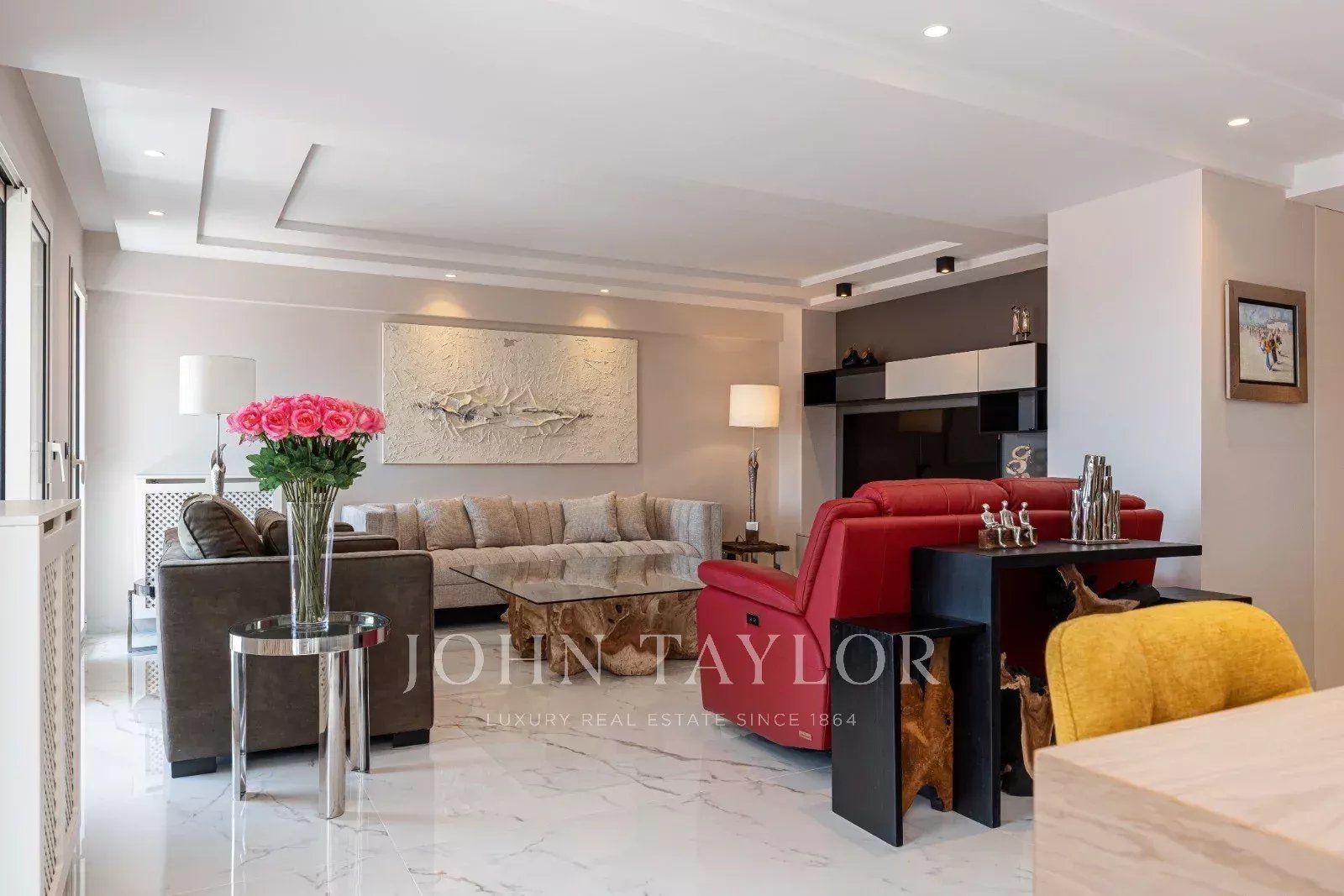 Idéalement situé au cœur du centre ville de Cannes, derrière la rue de d'Antibes et à quelques pas de la Croisette, vaste appartement de style contemporain de 4 chambres d'environ 150 m² entièrement rénové et meublé avec soins et terrasse.