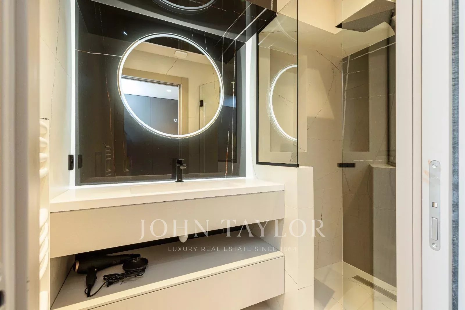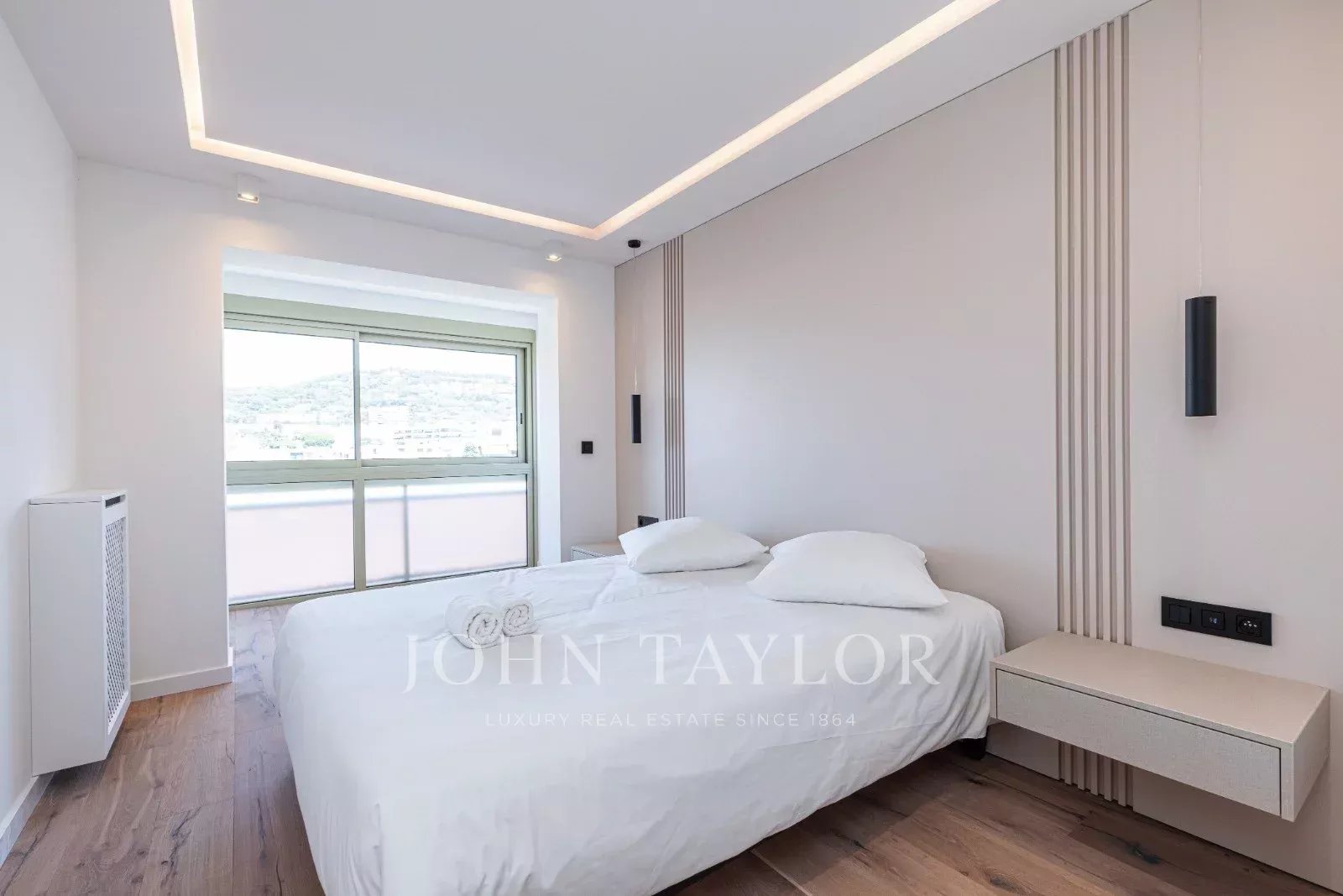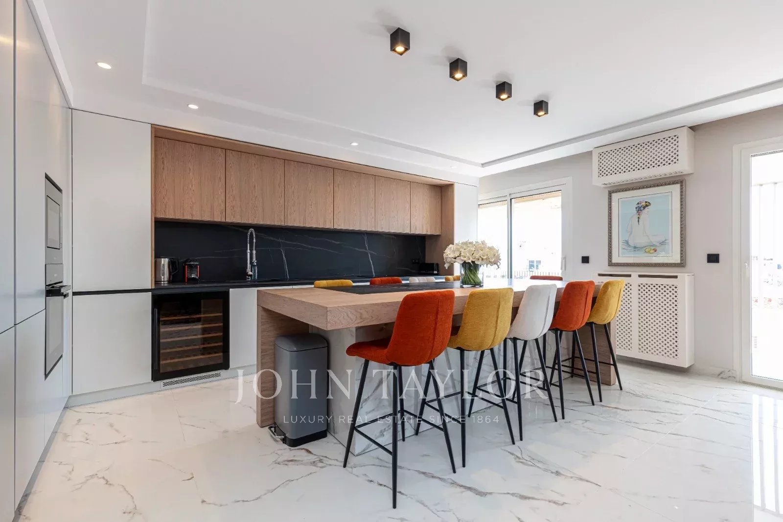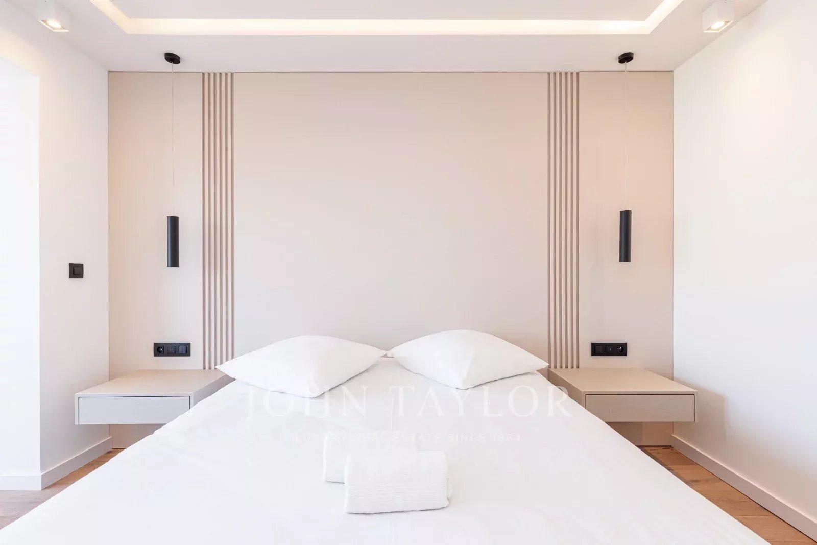 Idéalement situé au cœur du centre ville de Cannes, derrière la rue de d'Antibes et à quelques pas de la Croisette, vaste appartement de style contemporain de 4 chambres d'environ 150 m² entièrement rénové et meublé avec soins et terrasse.