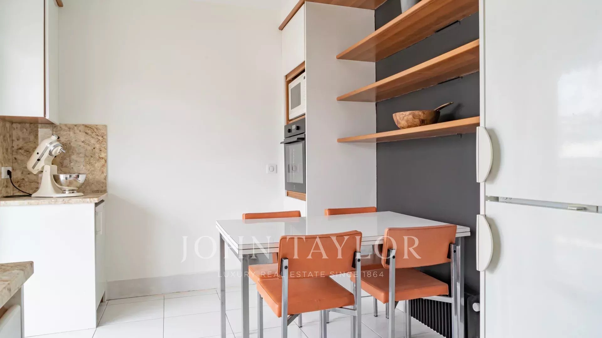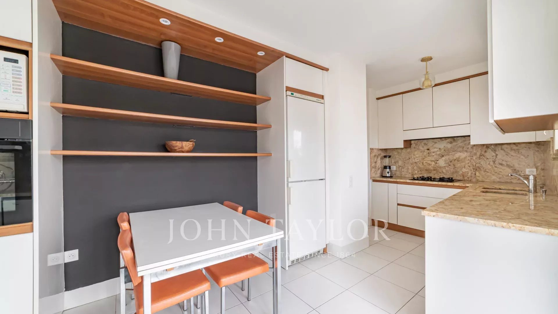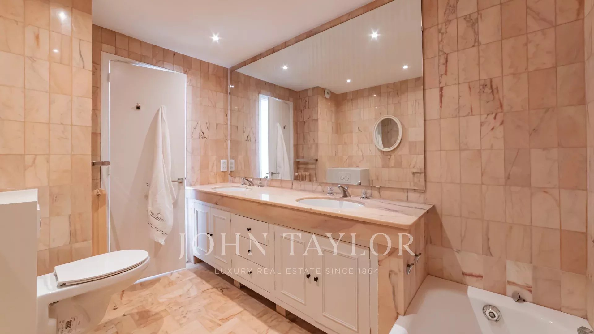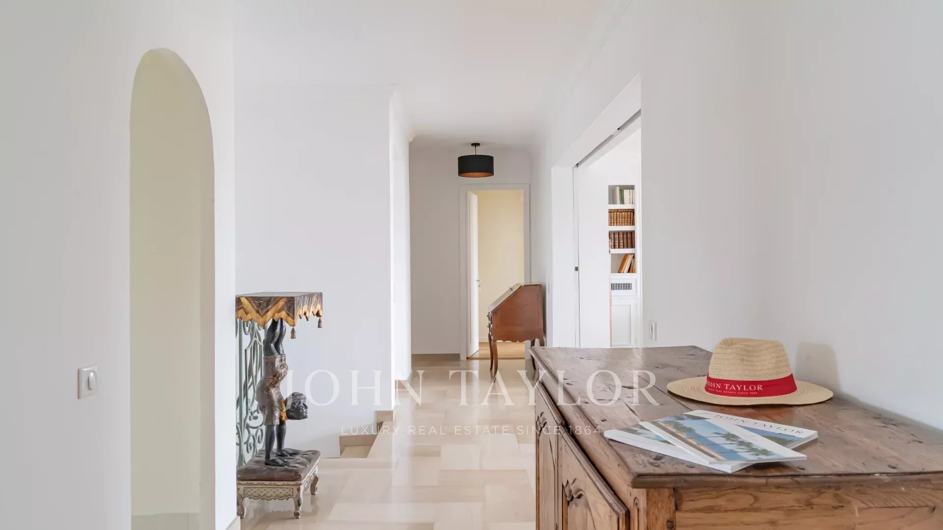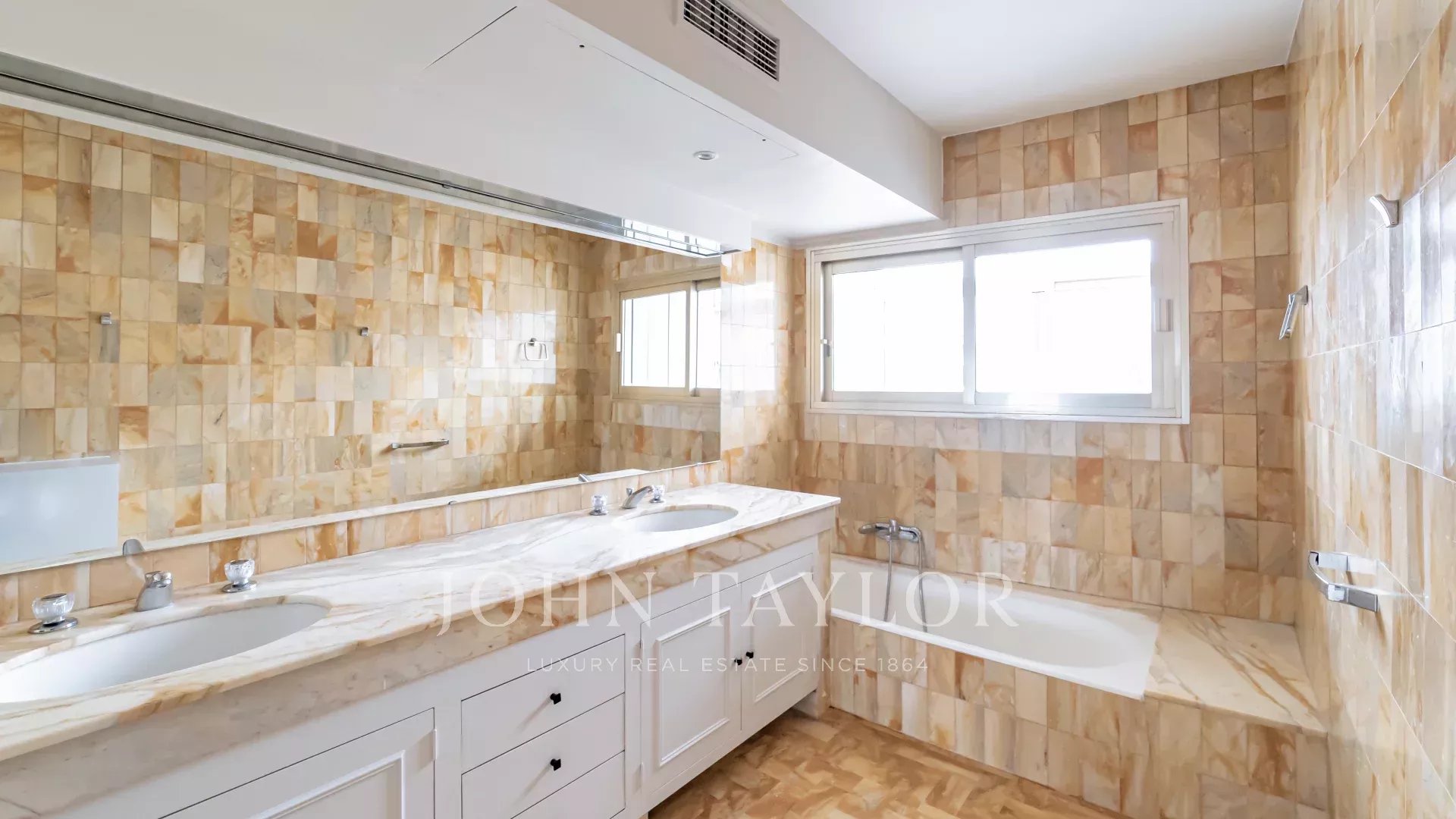 Exposé plein sud, appartement entièrement climatisé de 140 m2 habitables au dernier étage (8ème) d’une résidence centre ville, à quelques minutes à pied des plages et du Palais des Festivals.