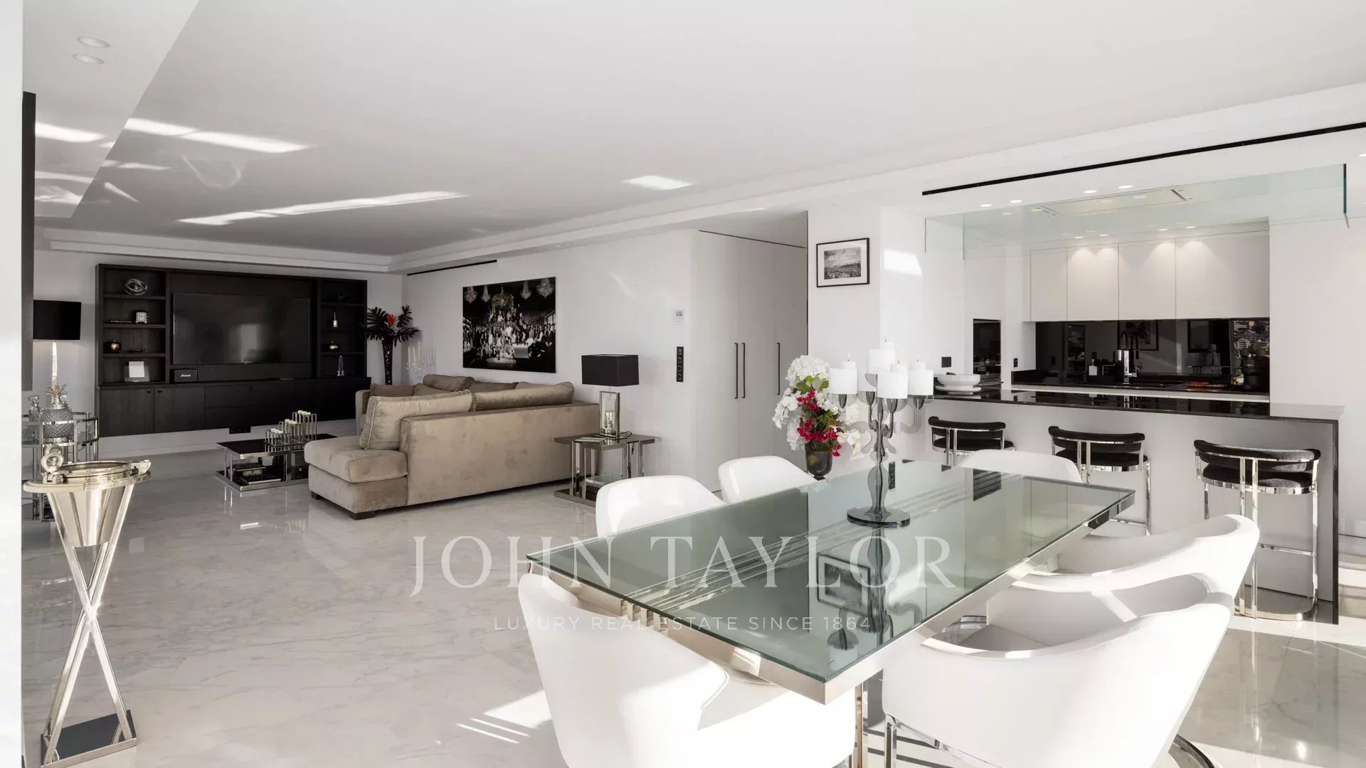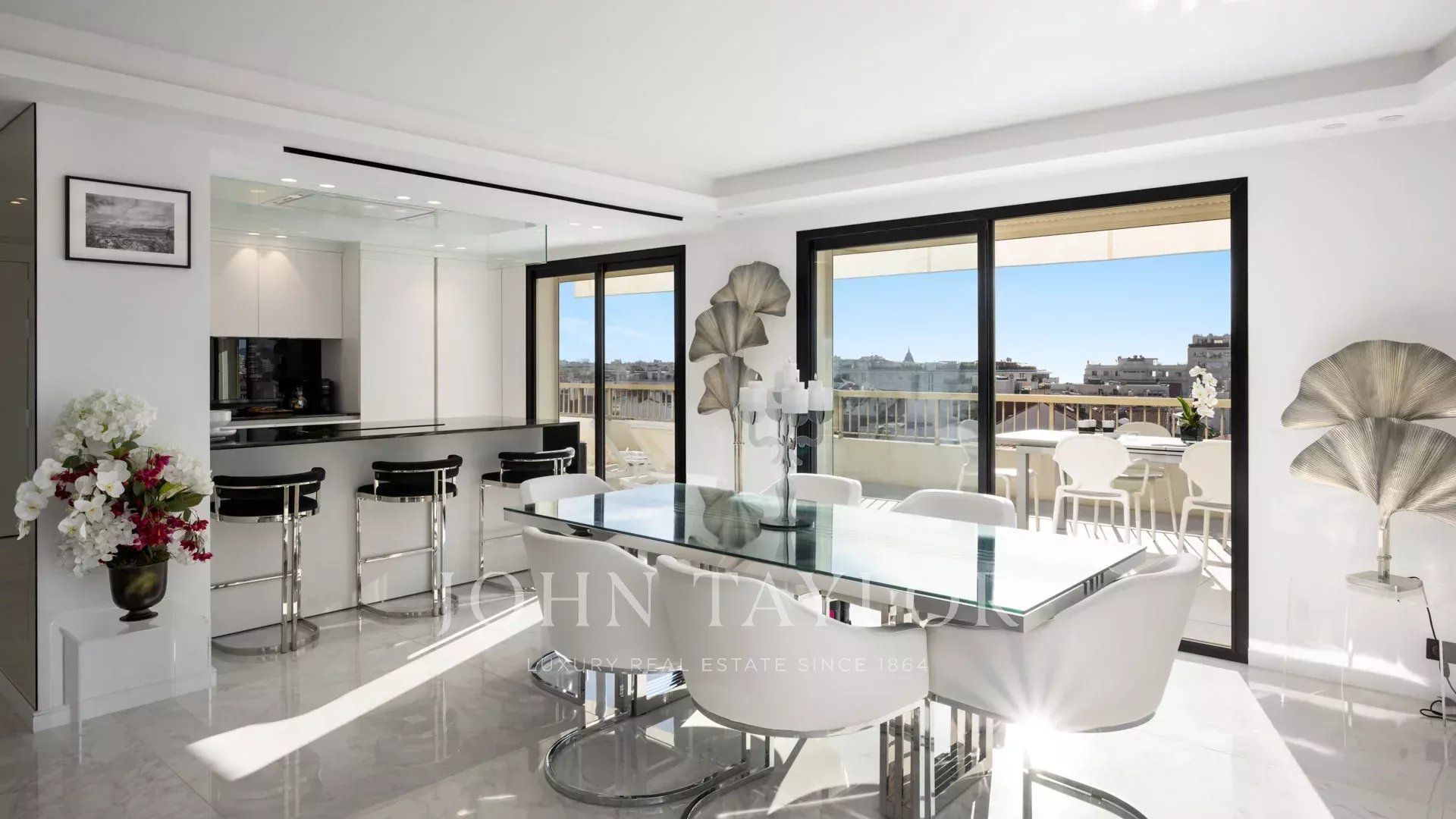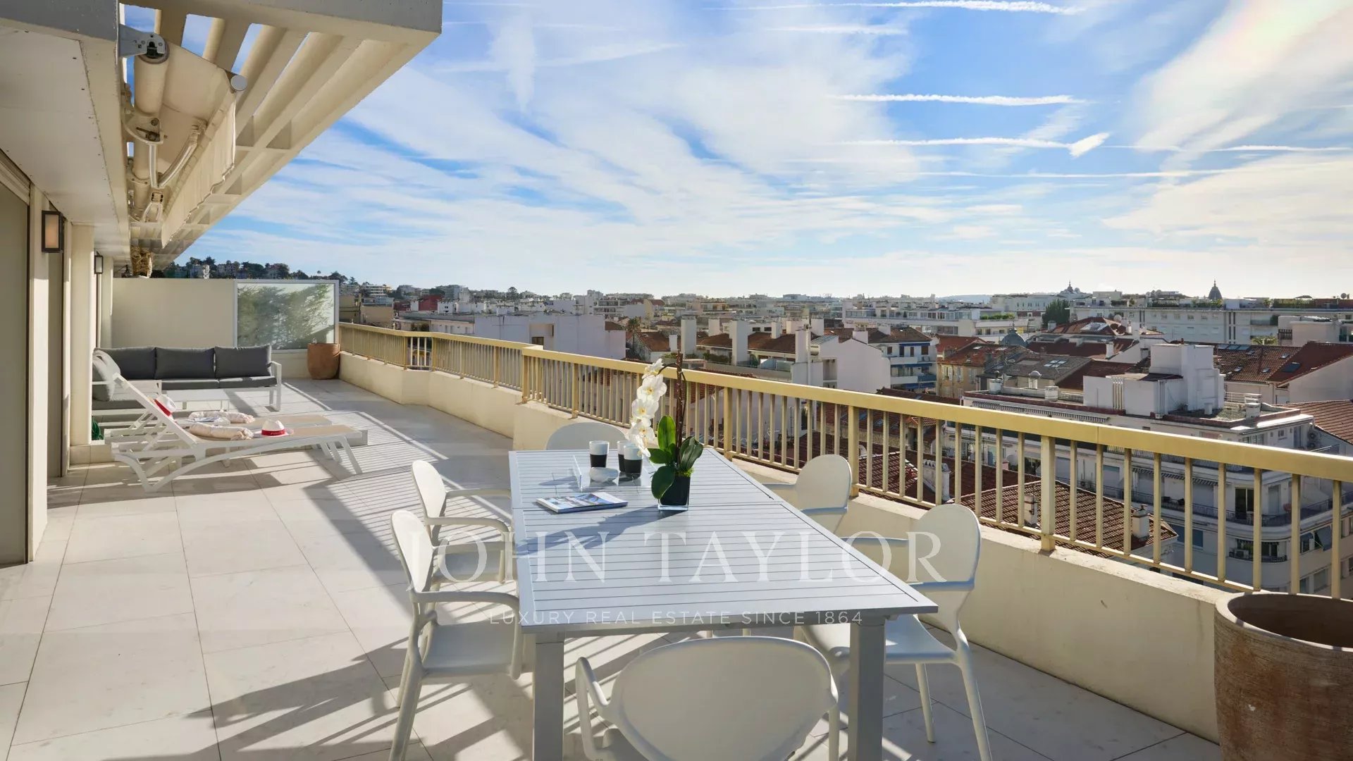 Dans une résidence au centre de Cannes, à quelques minutes à pied des plages et du Palais des Festivals, ce magnifique appartement vous séduira par sa décoration, ses prestations et sa terrasse panoramique de 180 m2 avec vue mer.