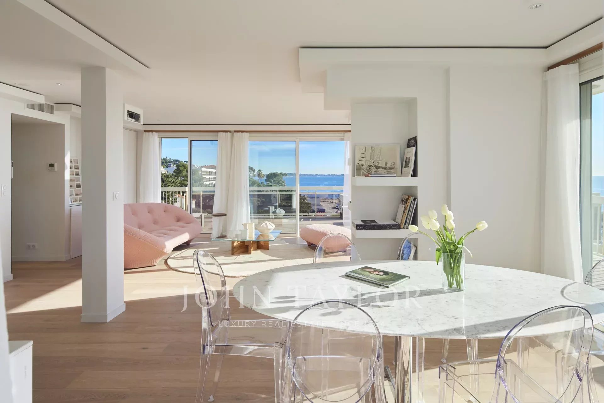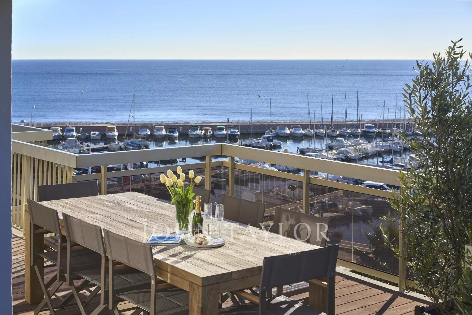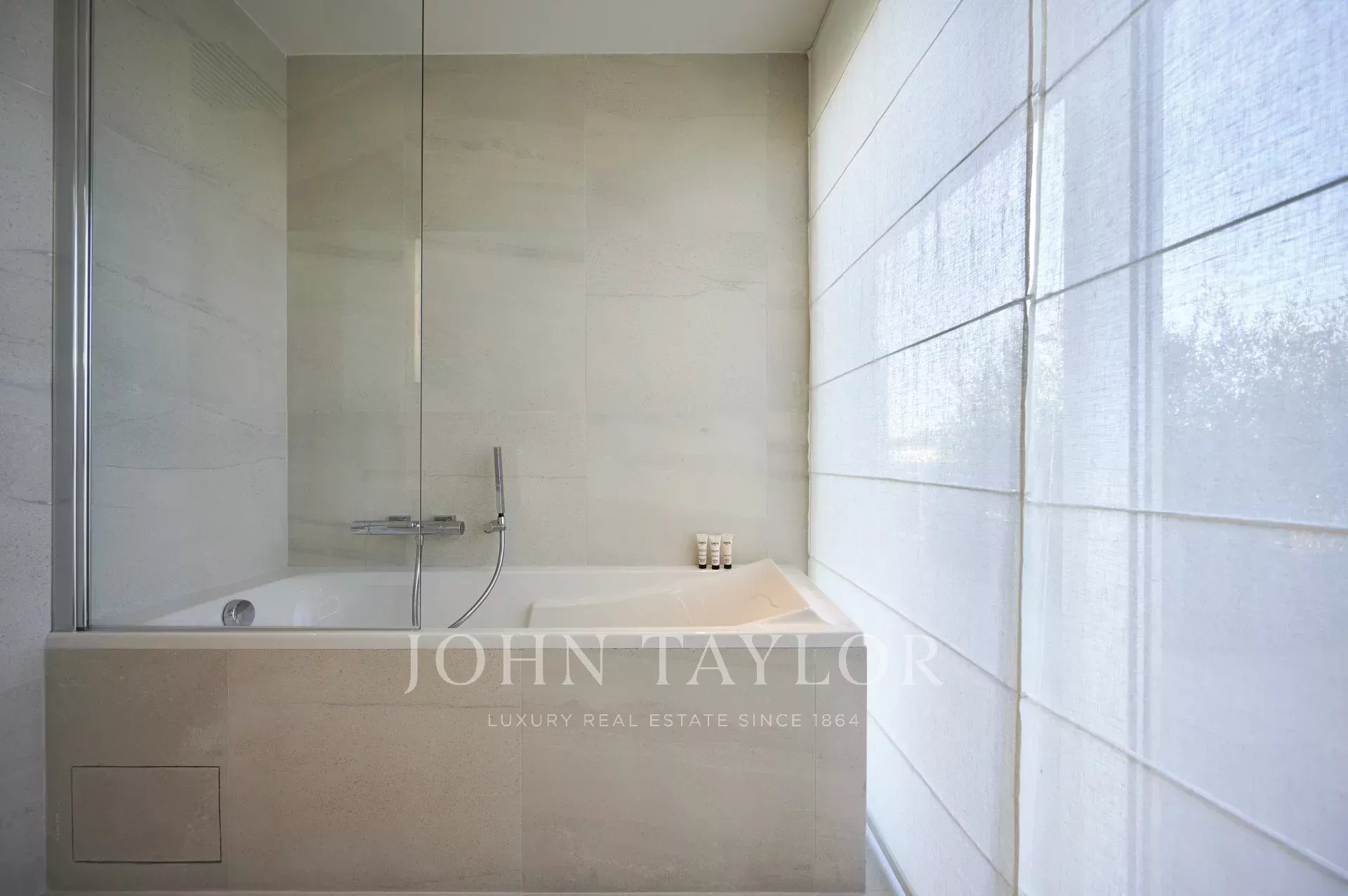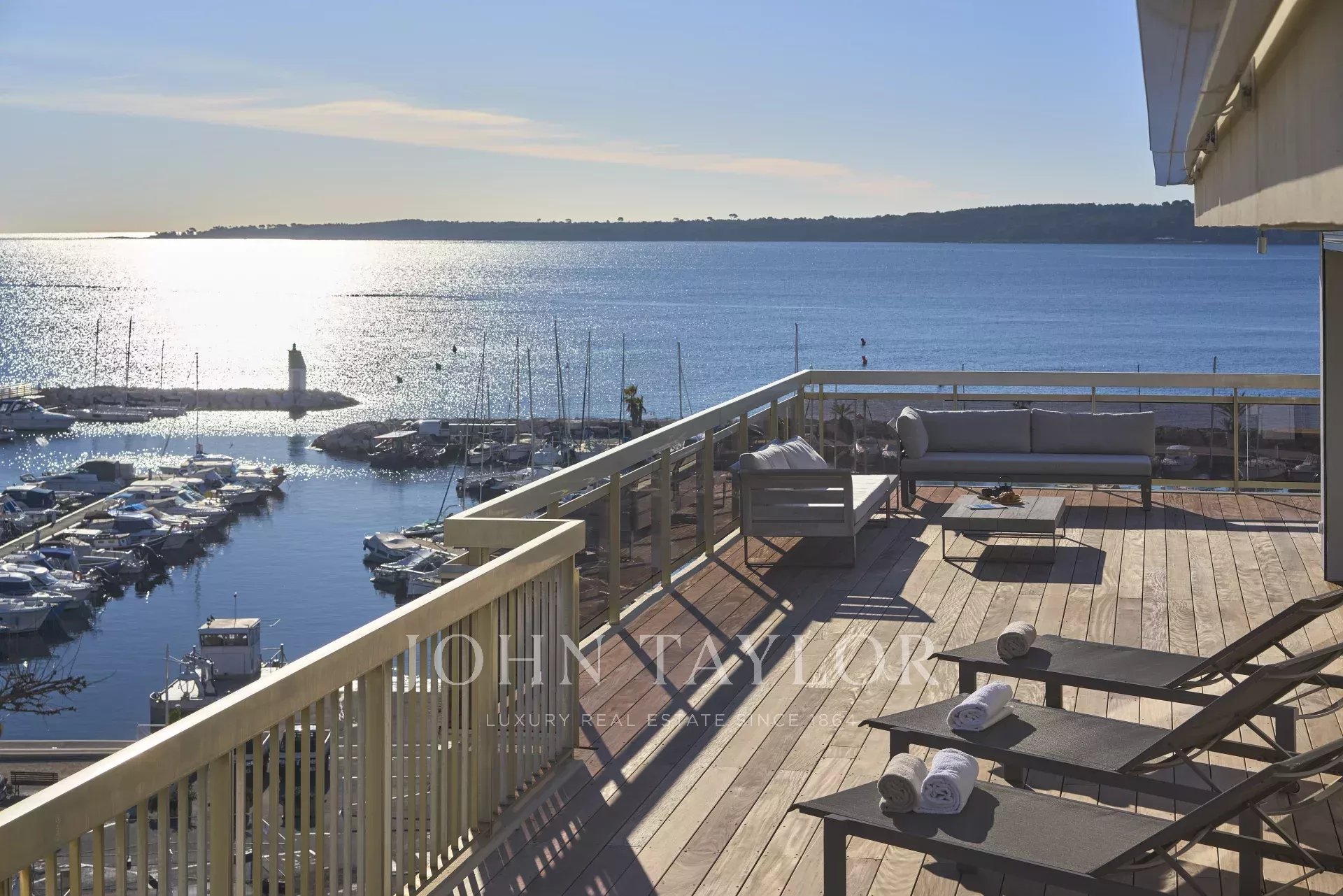 Dans le quartier du Palm Beach proche du port du « Mouré Rouge » et de ses plages, au 5ème et dernier étage d’une résidence, bel appartement d'une superficie habitable de 91m² environ, agrémenté d’une terrasse de 154 m2 offrant de superbes vues sur les îles de Lérins et le Cap d'Antibes.