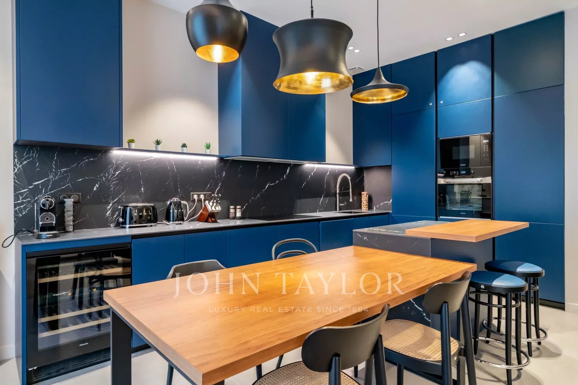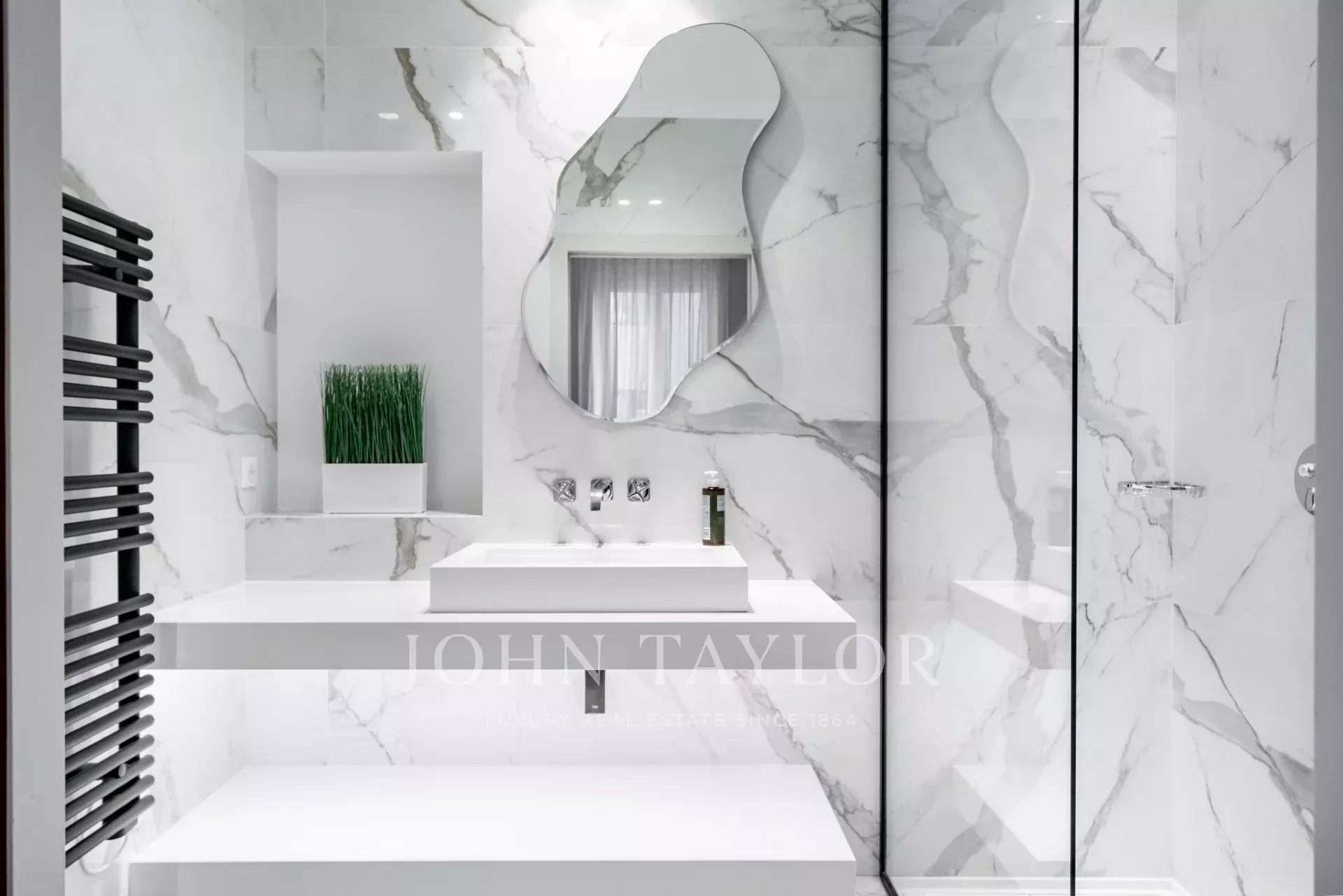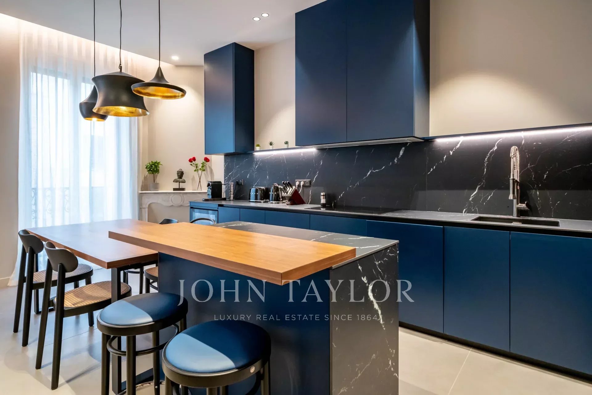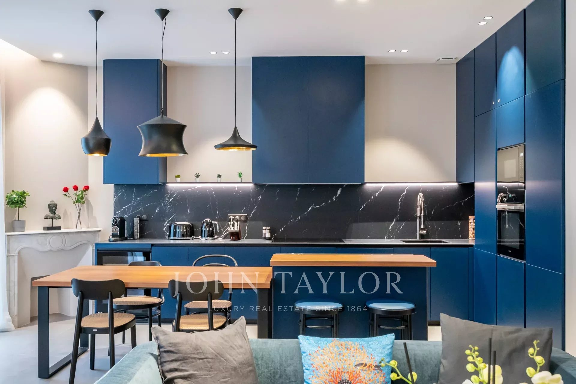 appartement de 3 pièces de 100 m2 entièrement rénovée avec salon, salle à manger ouvert sur cuisine et 2 chambres avec 2 salle de douches.