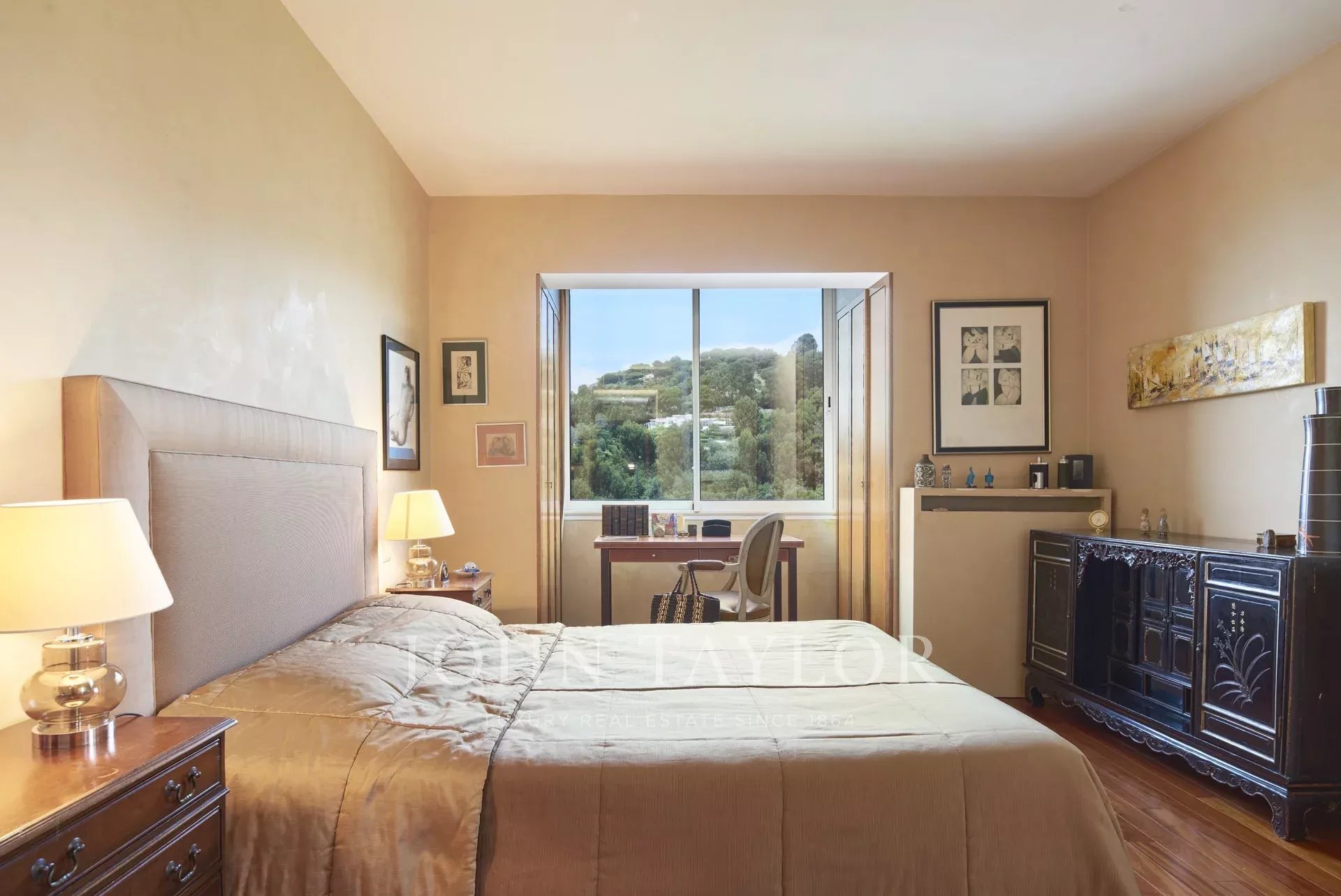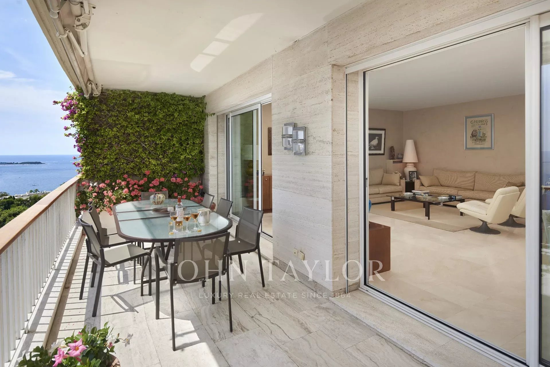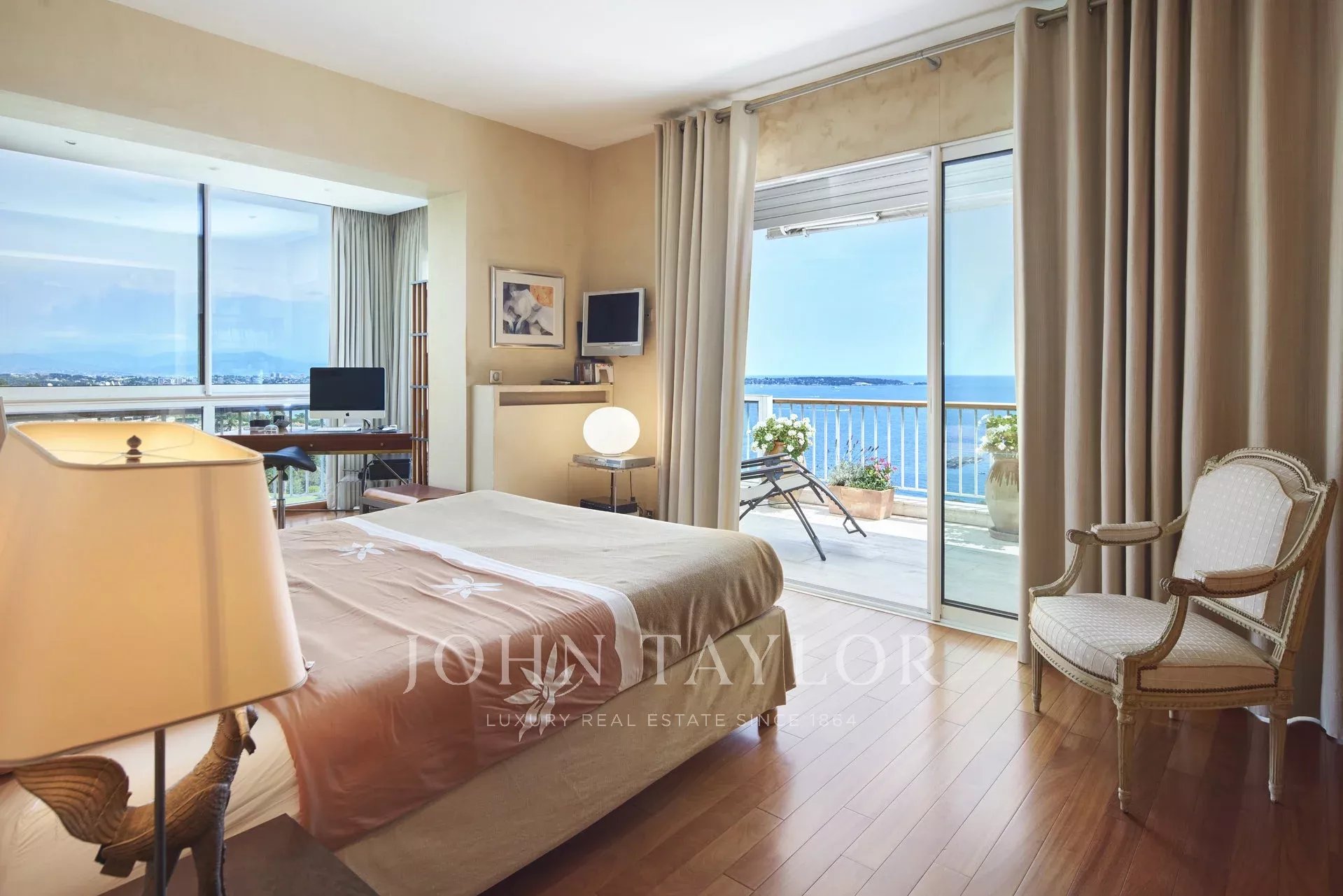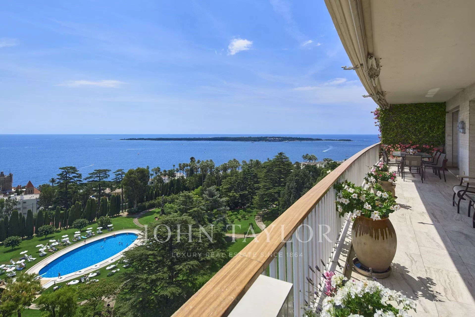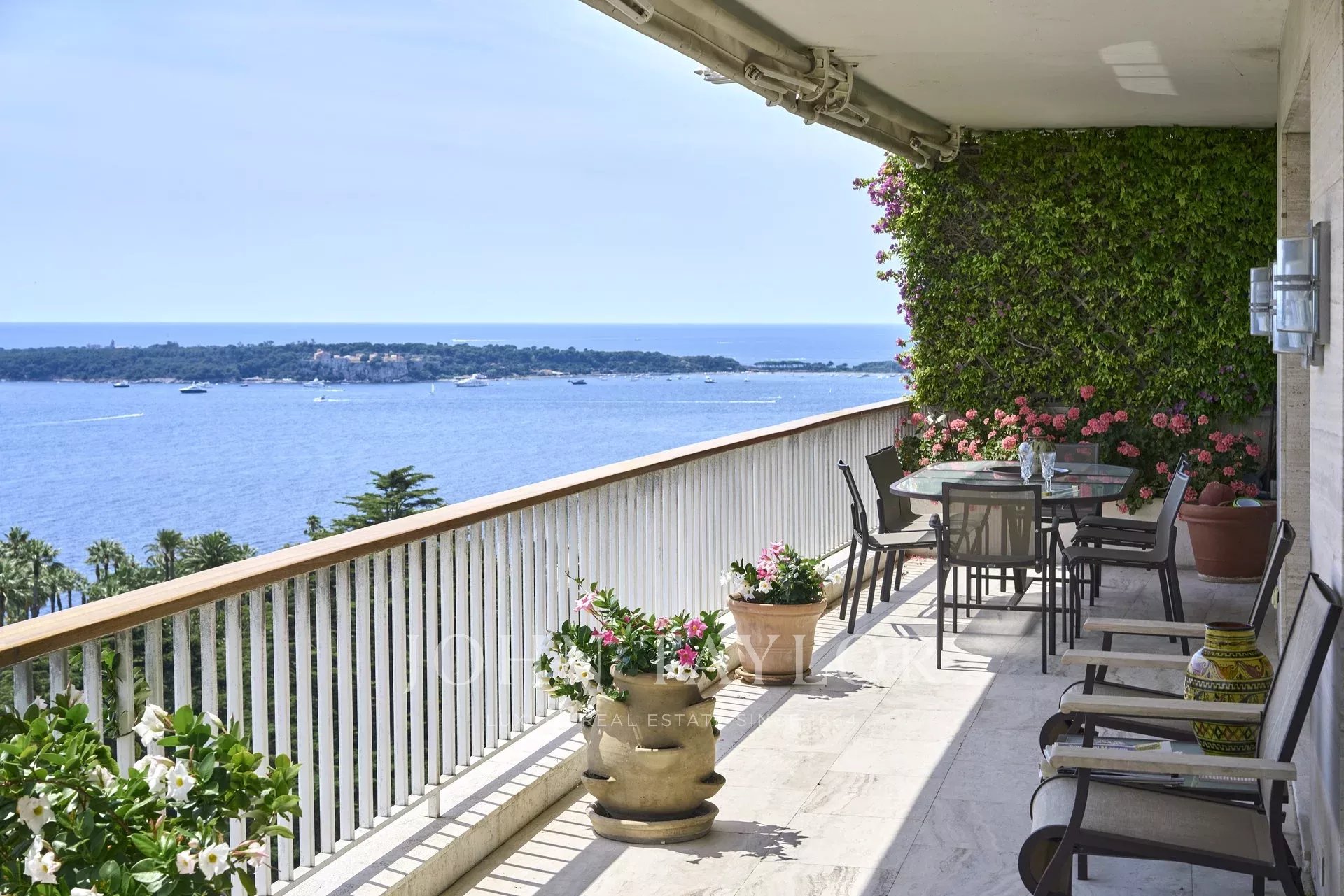 Sur les hauteurs de Cannes, dans une résidence de standing au coeur d'un parc de 11 hectares, appartement climatisé jouissant d'une superbe vue mer sur les Iles de Lérins et le Cap d’Antibes.