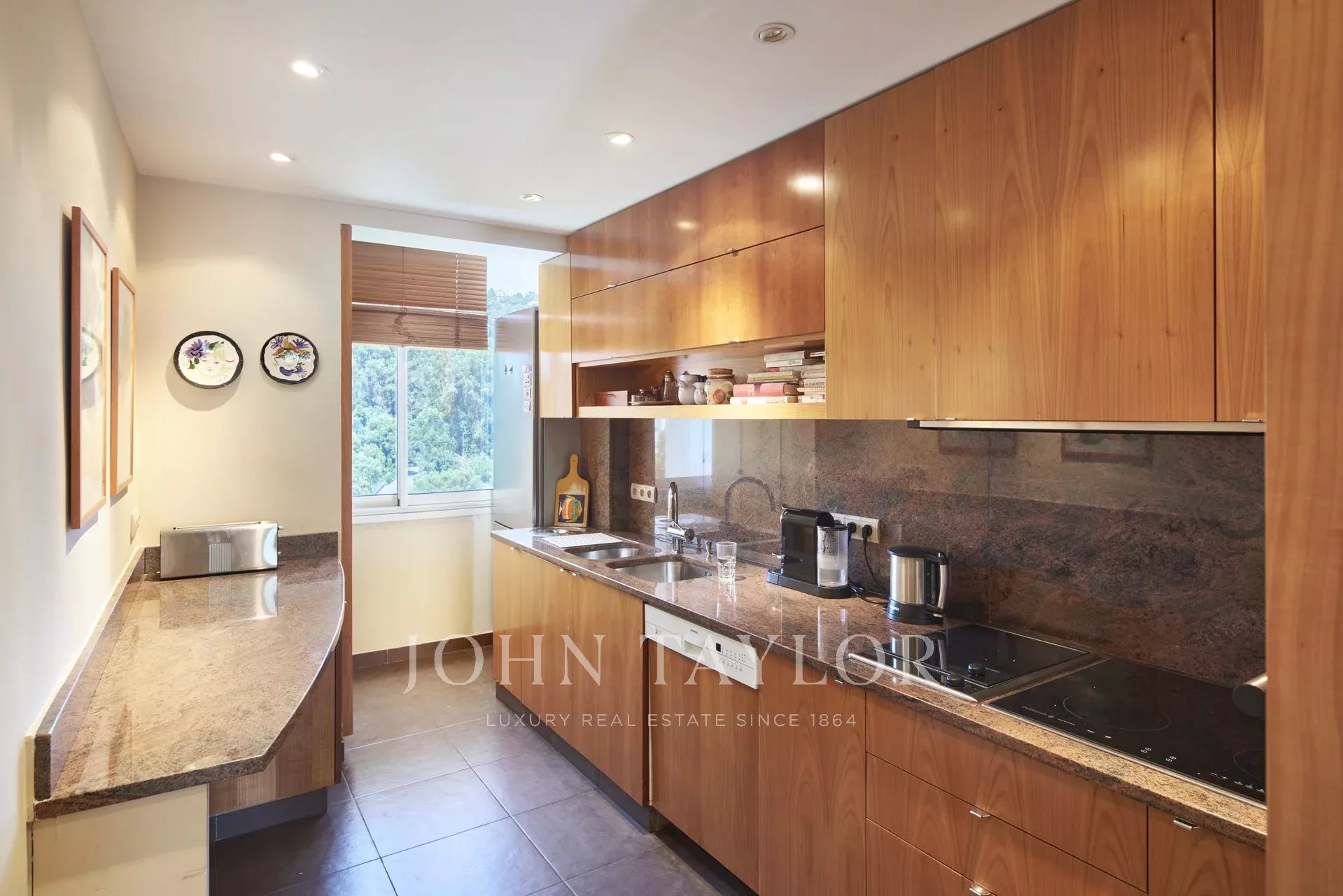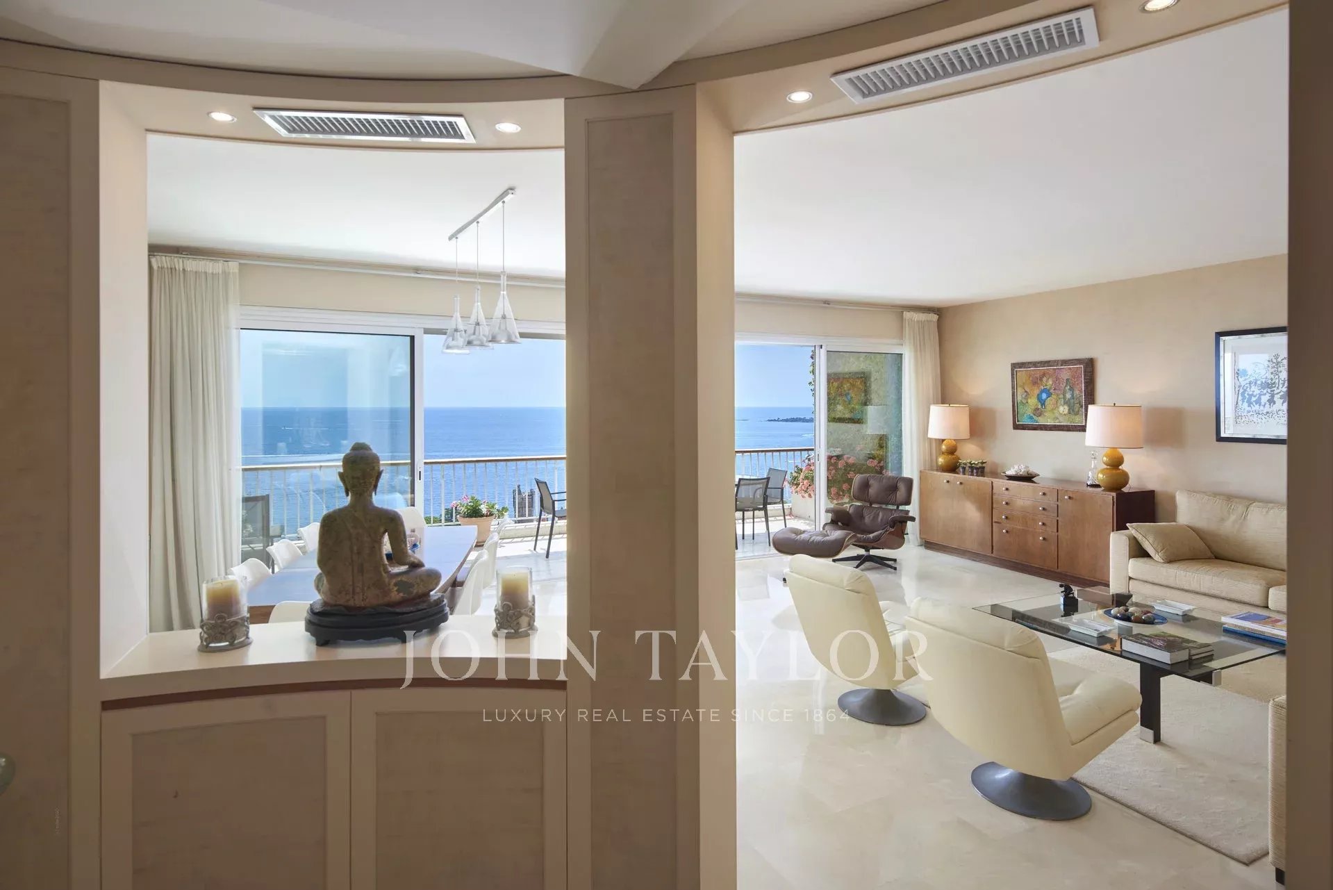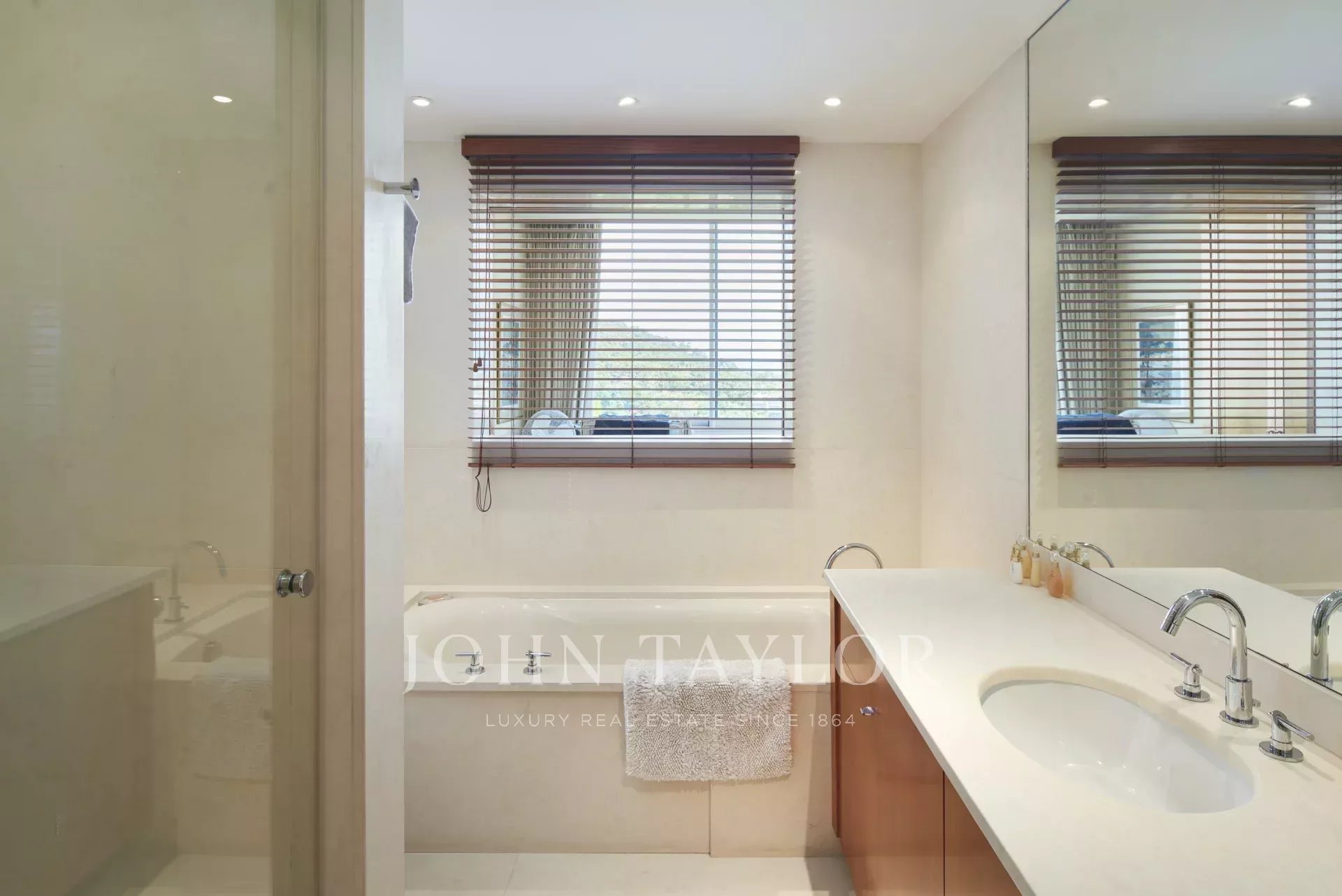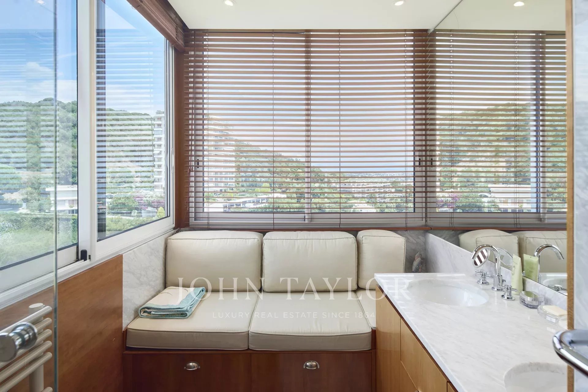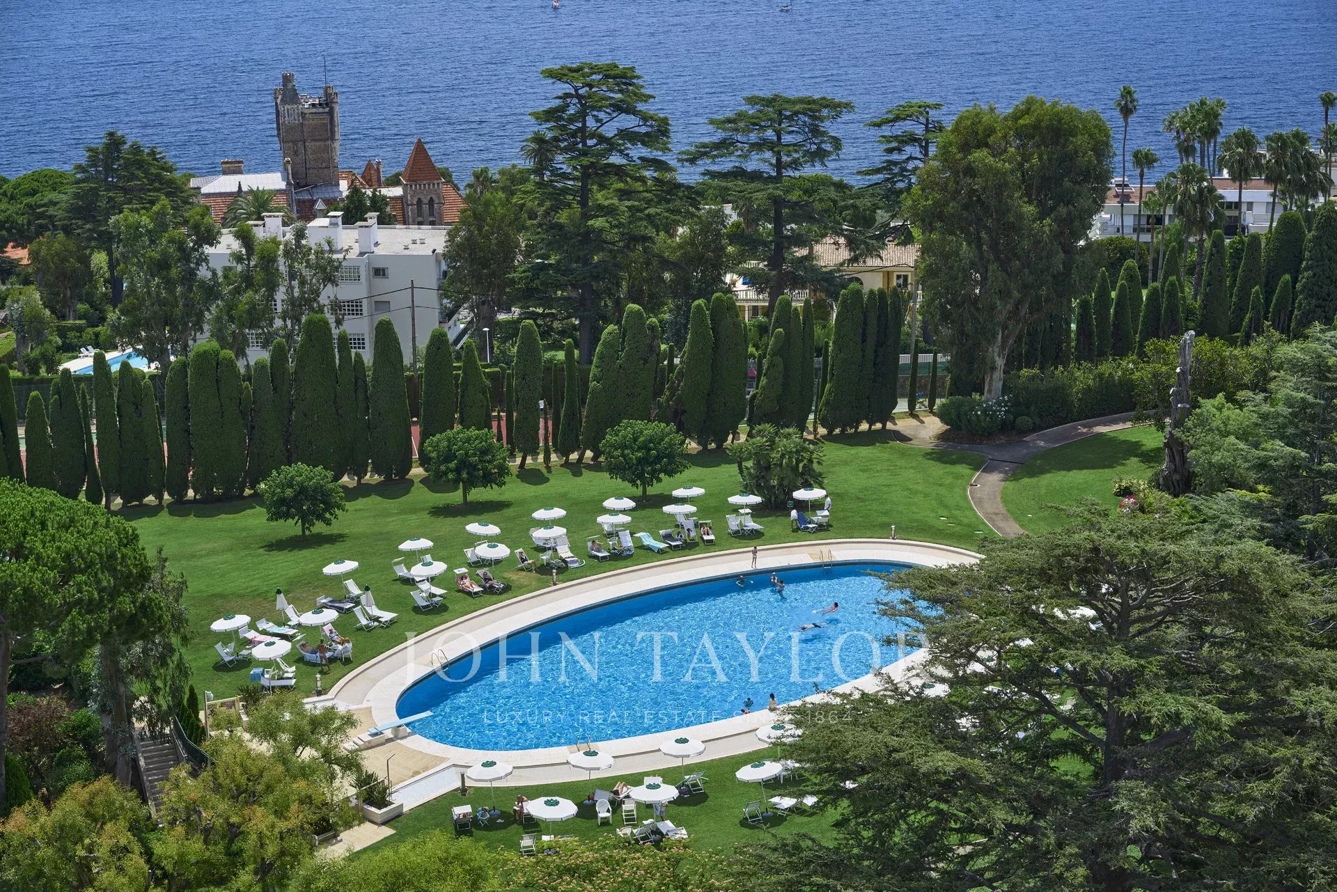 Sur les hauteurs de Cannes, dans une résidence de standing au coeur d'un parc de 11 hectares, appartement climatisé jouissant d'une superbe vue mer sur les Iles de Lérins et le Cap d’Antibes.