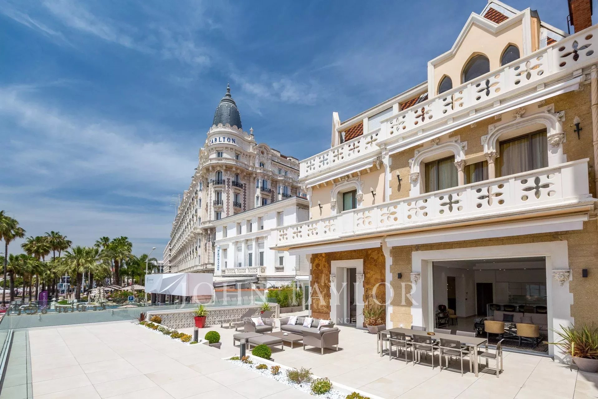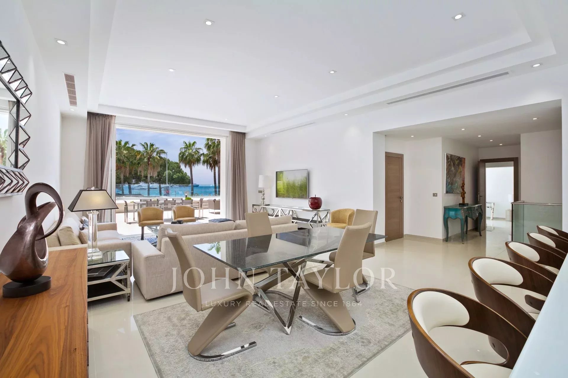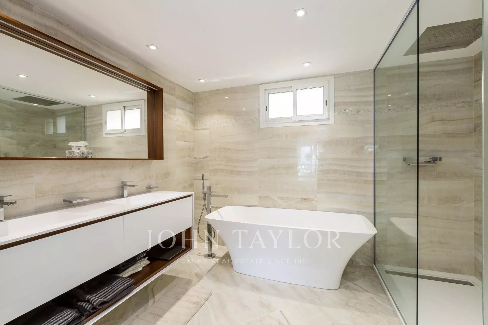 Sur Croisette, à côté de l’Hôtel Carlton, dans une petite résidence classée, magnifique appartement contemporain d'environ 215 m2 habitables.