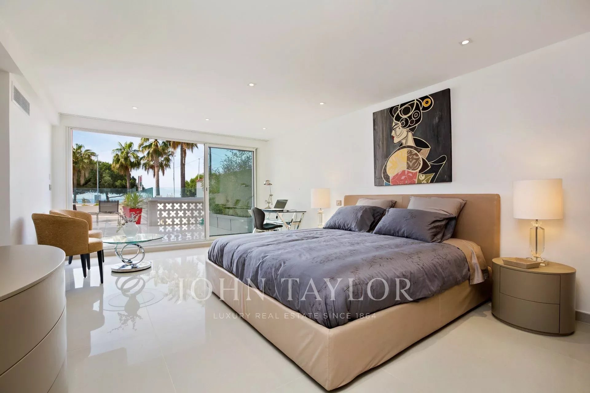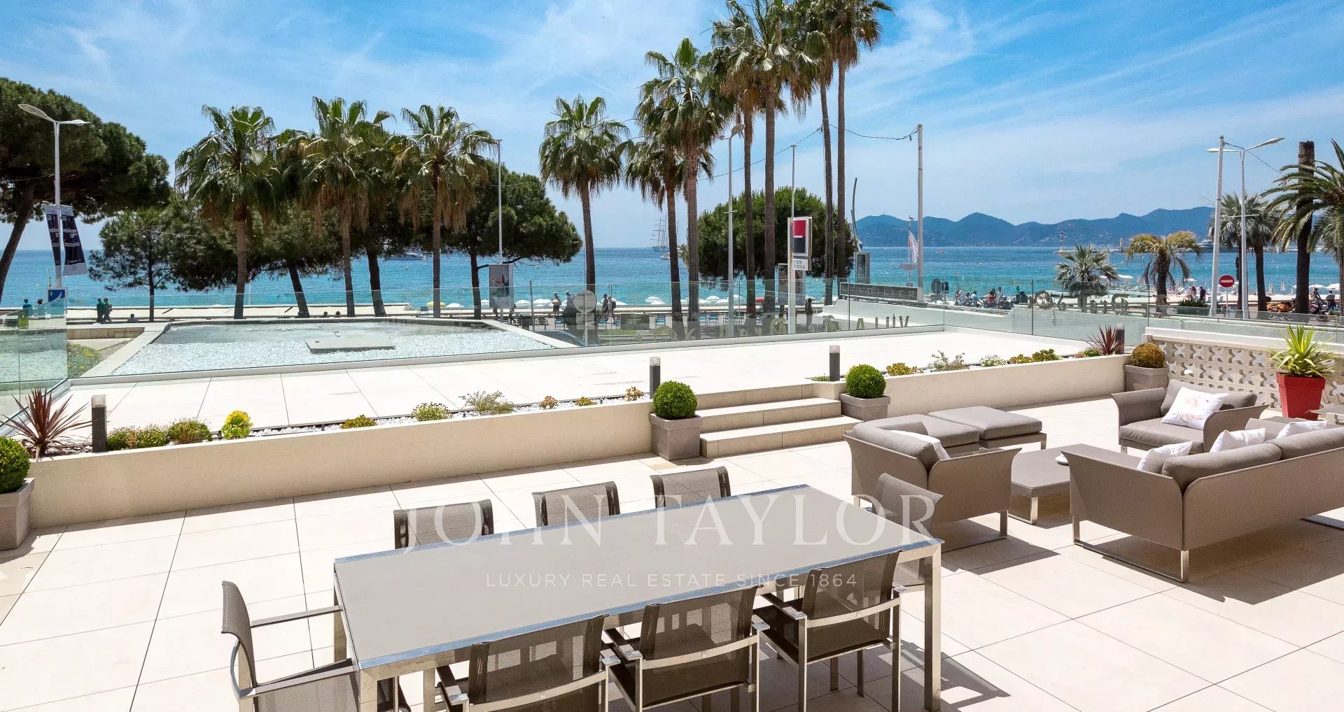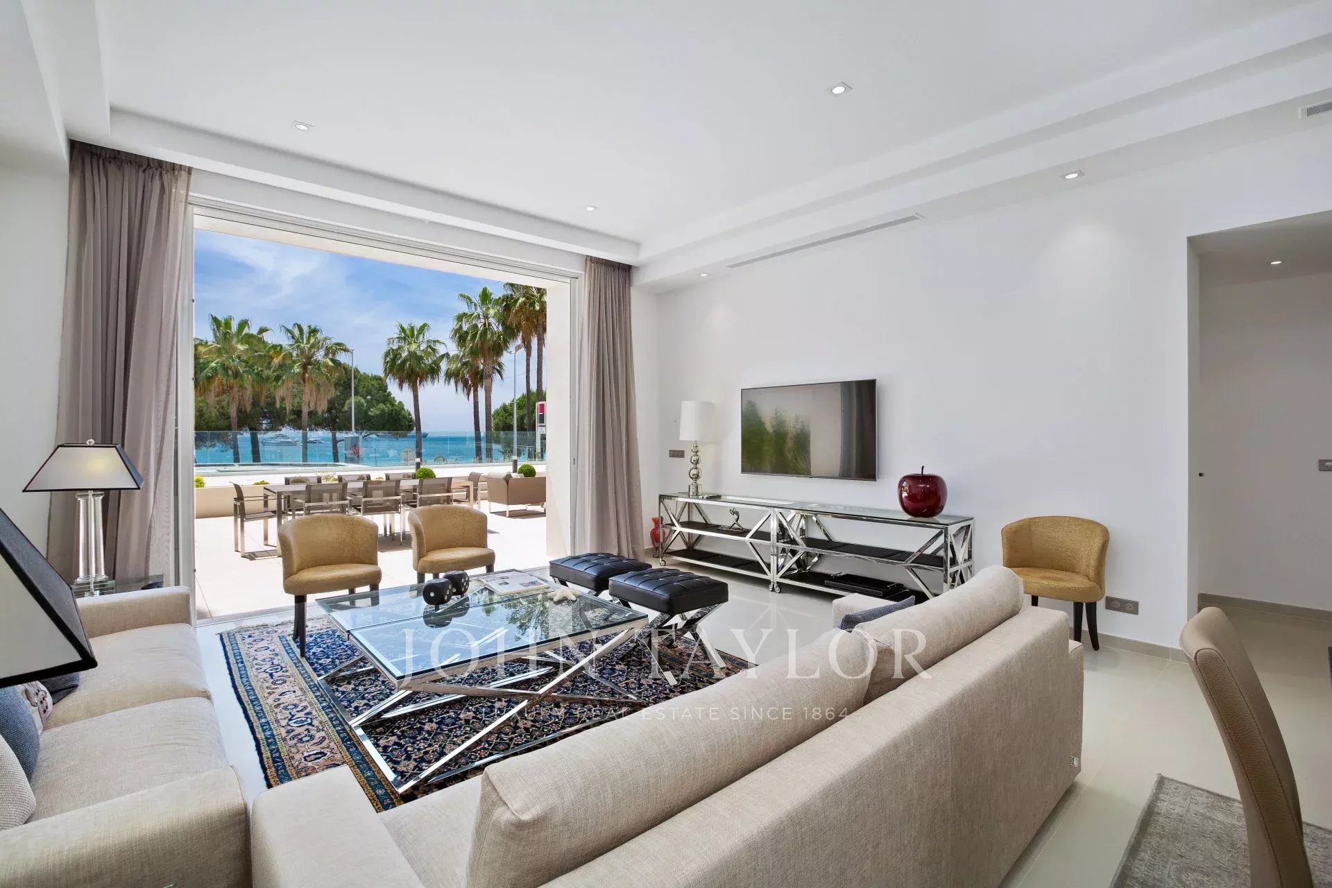 Sur Croisette, à côté de l’Hôtel Carlton, dans une petite résidence classée, magnifique appartement contemporain d'environ 215 m2 habitables.