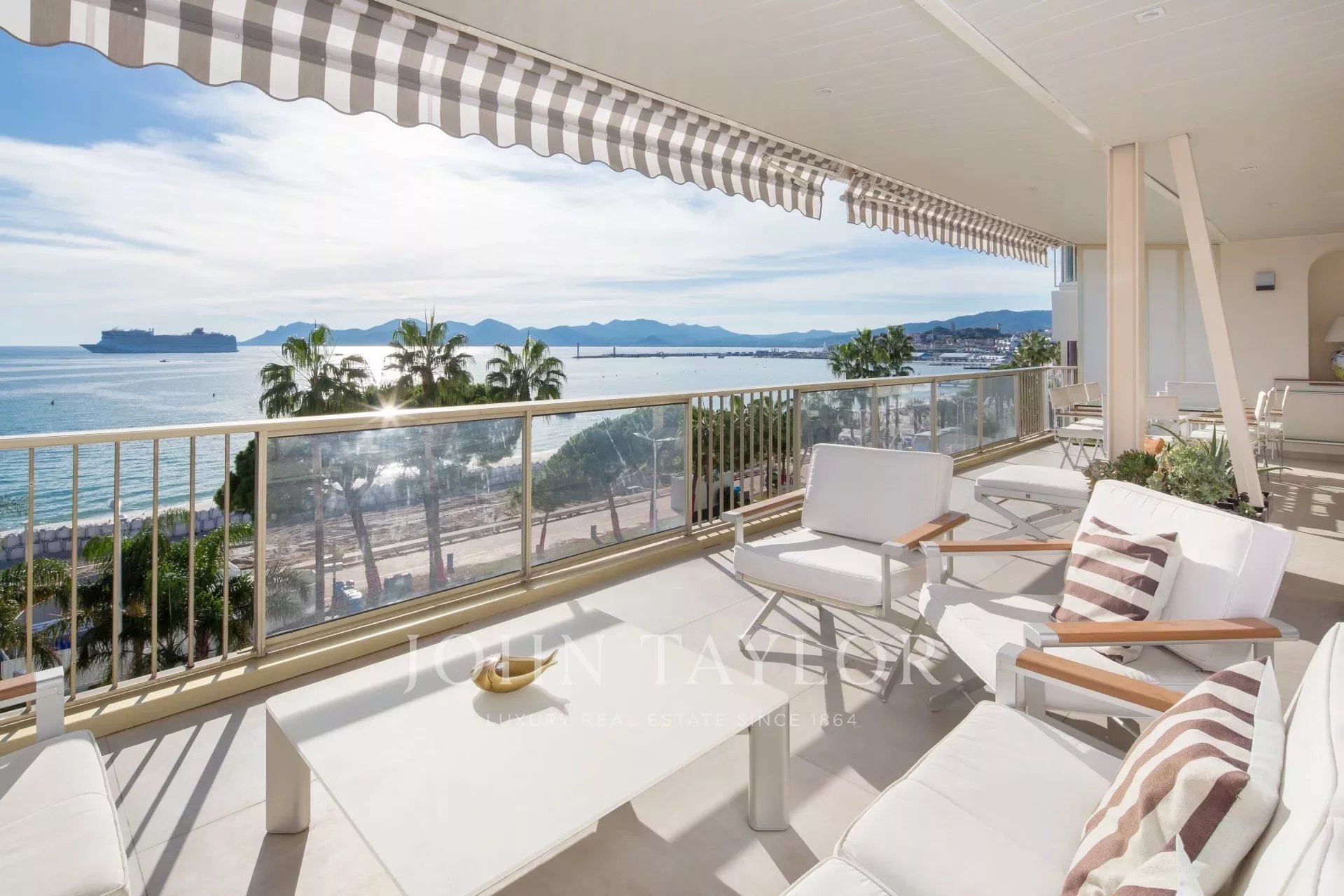 L'appartement séduit par sa décoration, ses belles prestations et ses superbes vues sur la Baie de Cannes.
