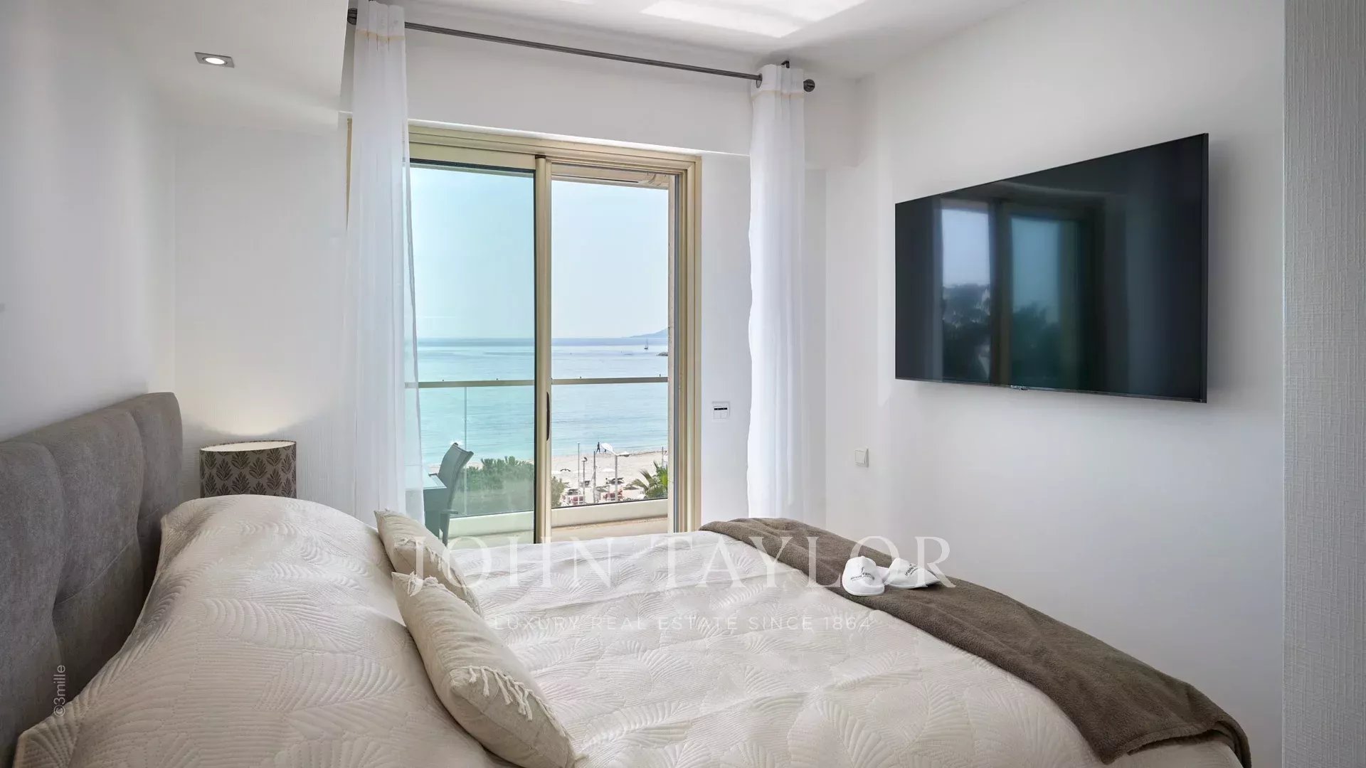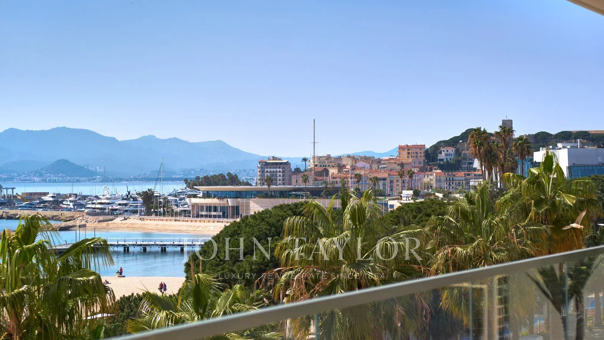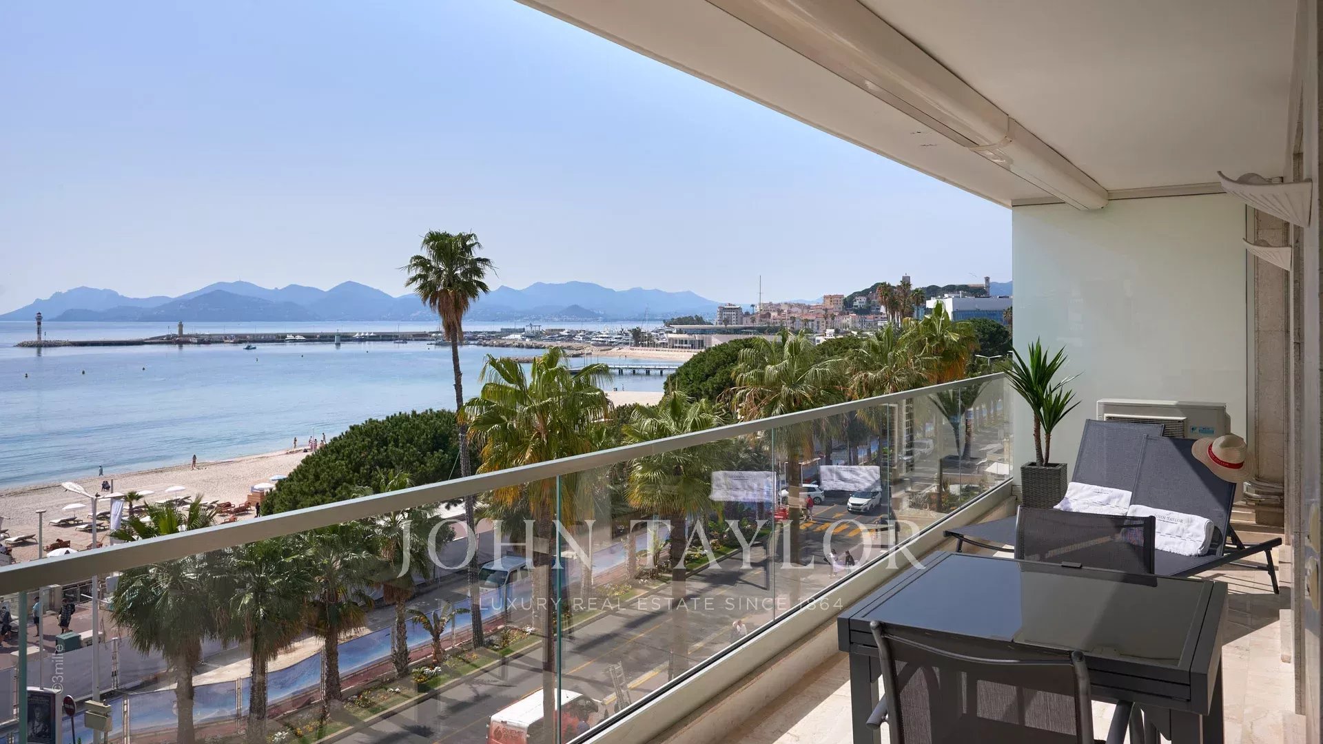Bel appartement climatisé situé en plein cœur de la Croisette au 4ème étage d'une résidence de standing, jouissant d'une vue panoramique sur la Baie de Cannes, ses plages, le Palais des Festivals, et l'Estérel.